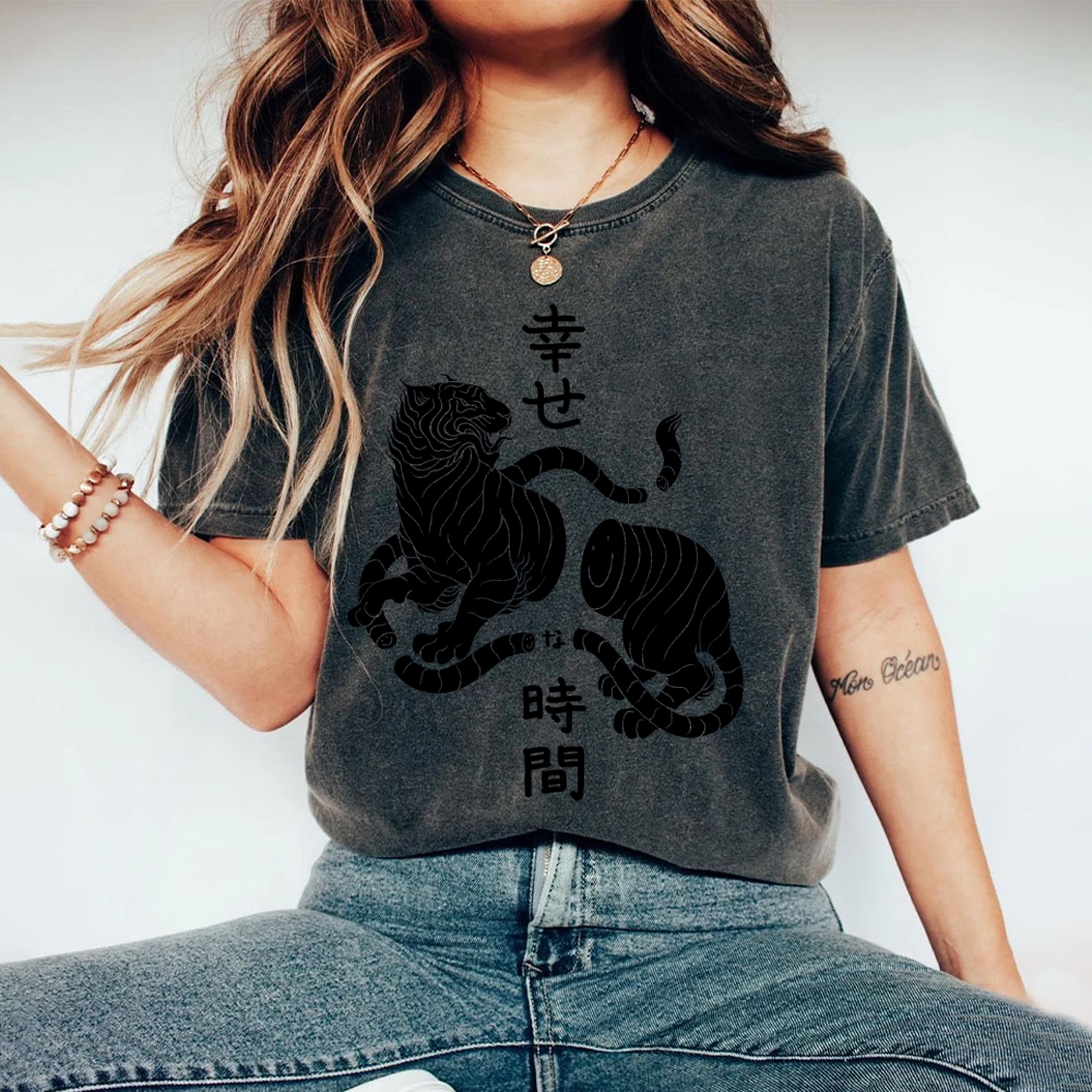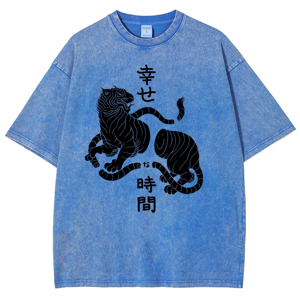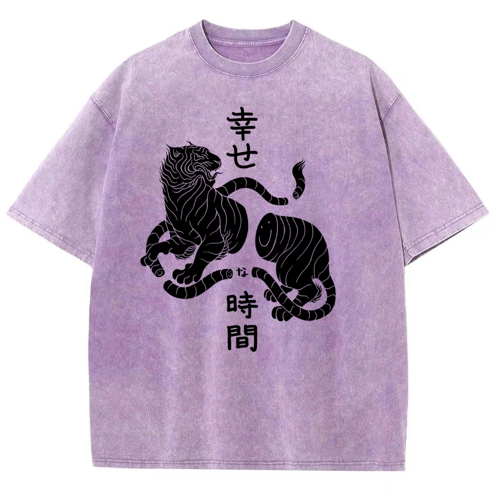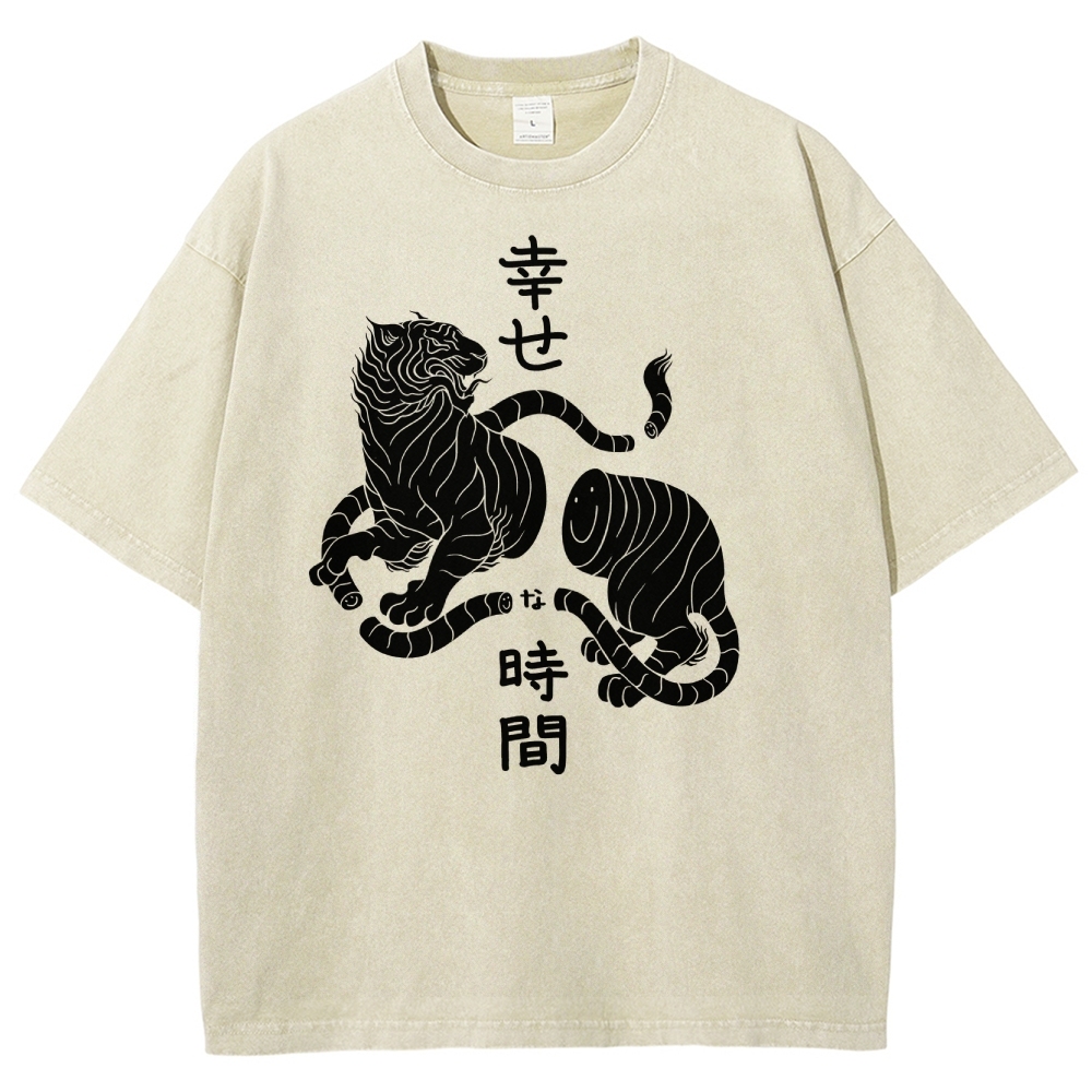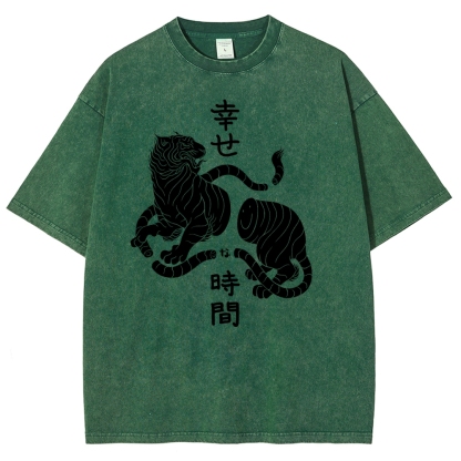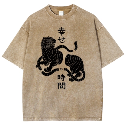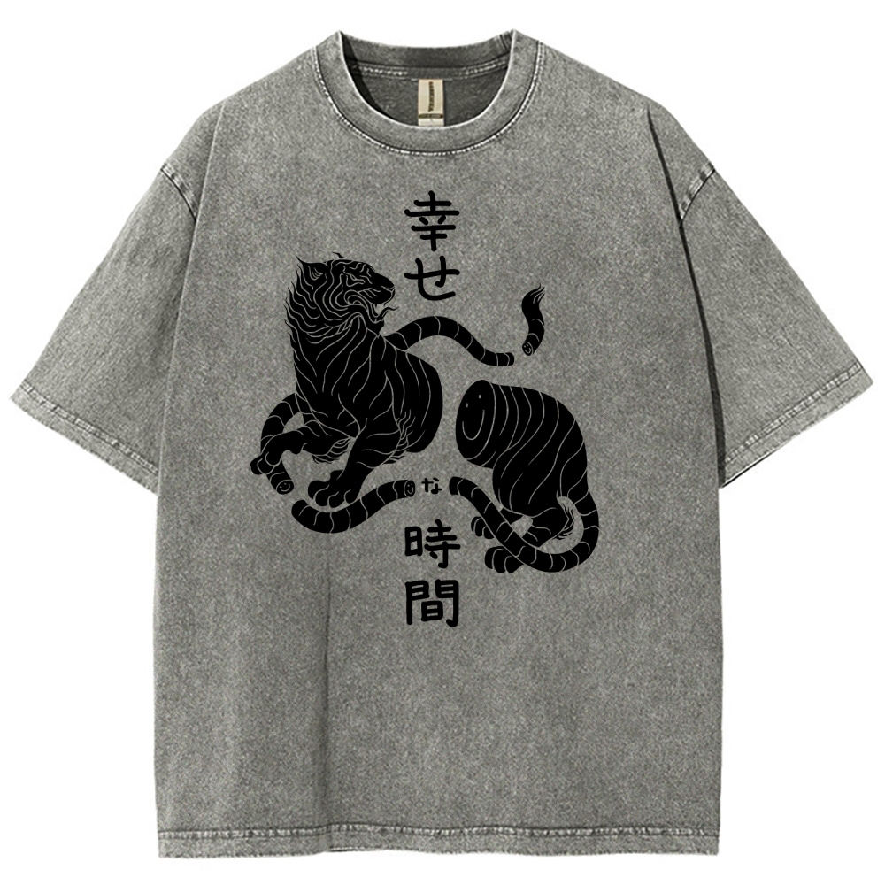 Cutting Tiger Pattern Washed Vintage Short Sleeves T-Shirt