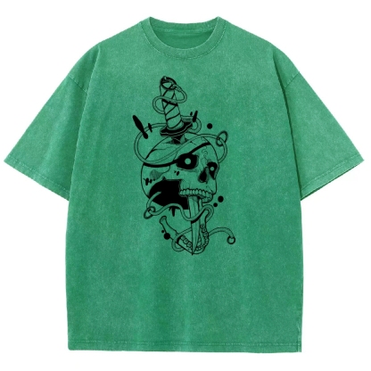 Damaged Skull Washed Vintage Short Sleeves T-Shirt