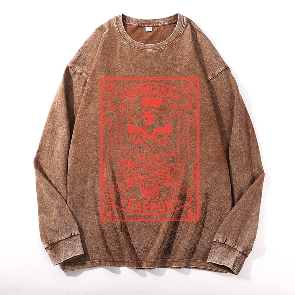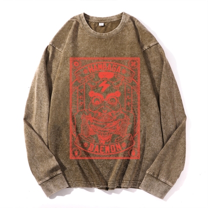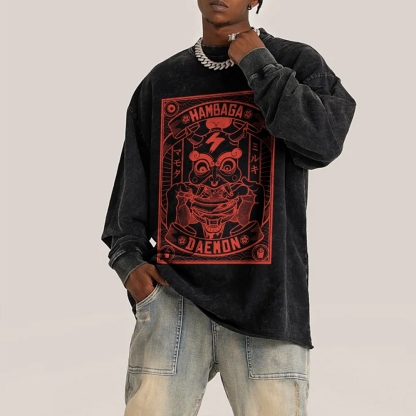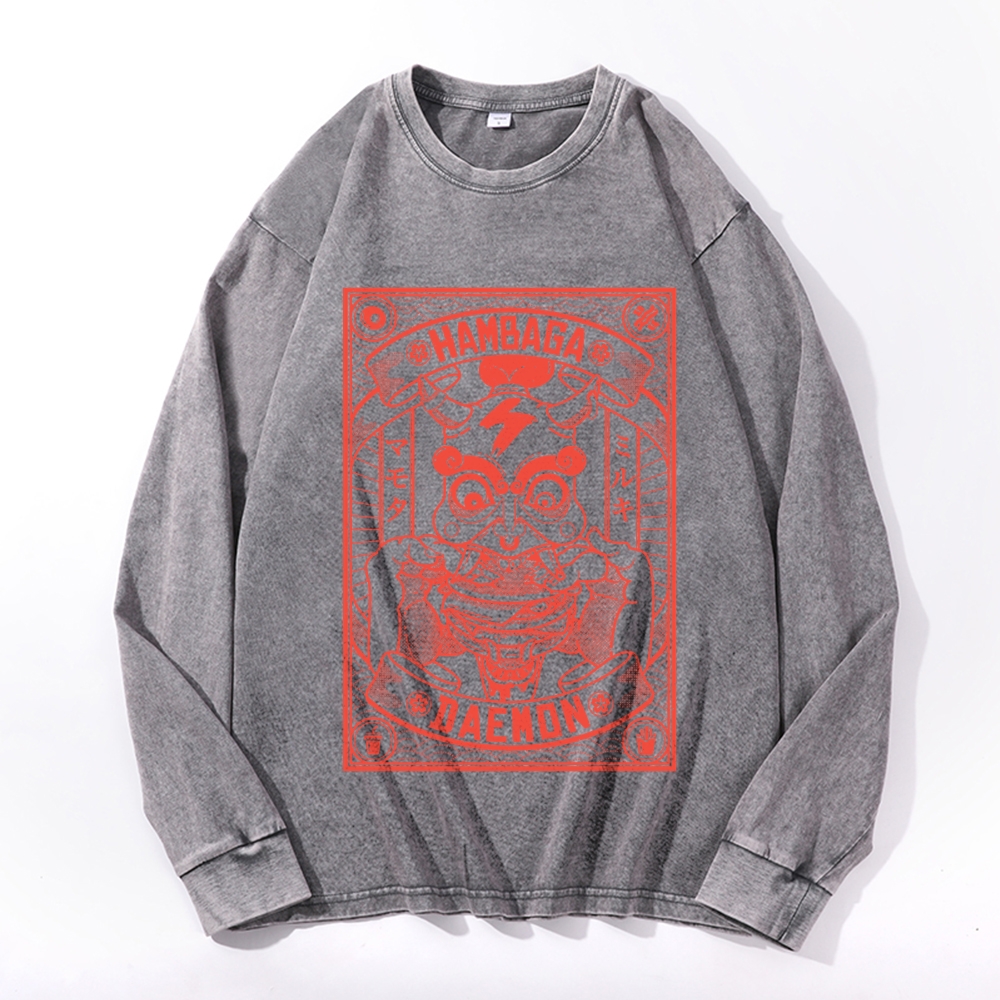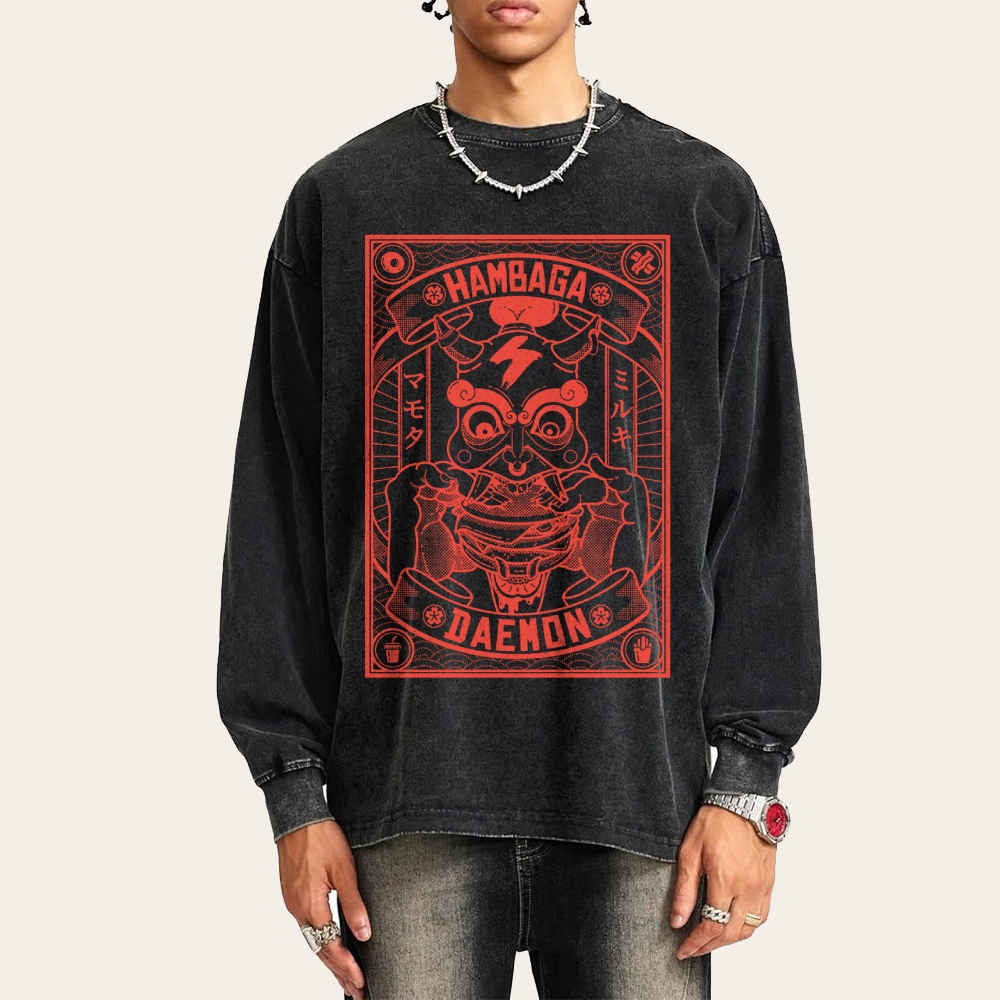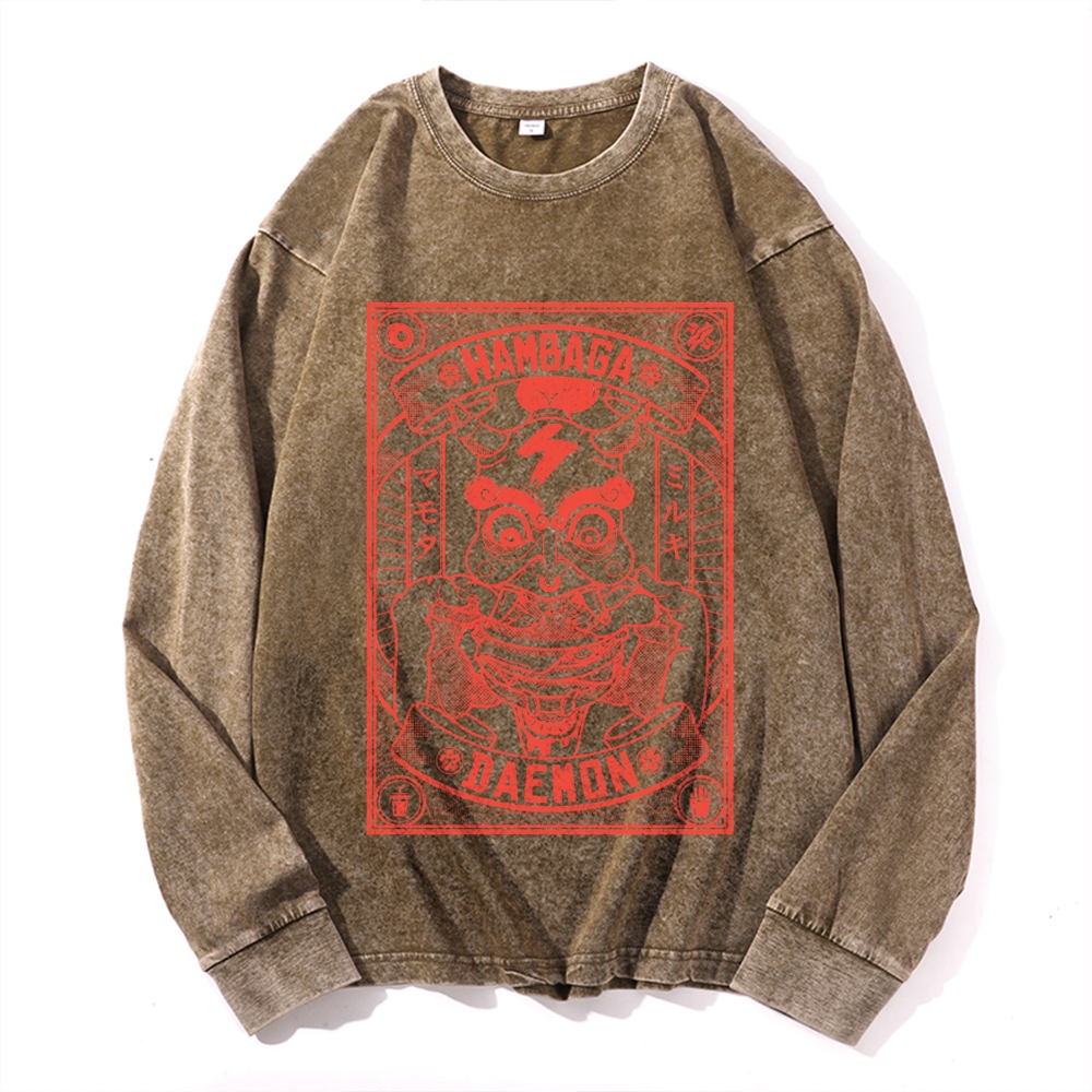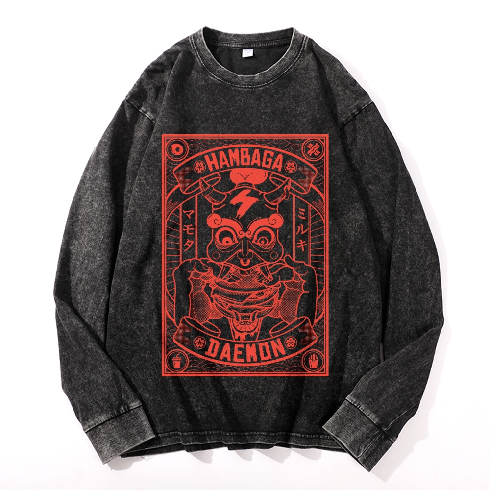 Demon Burger Printed Deep Washed Vintage Long Sleeves T-Shirt