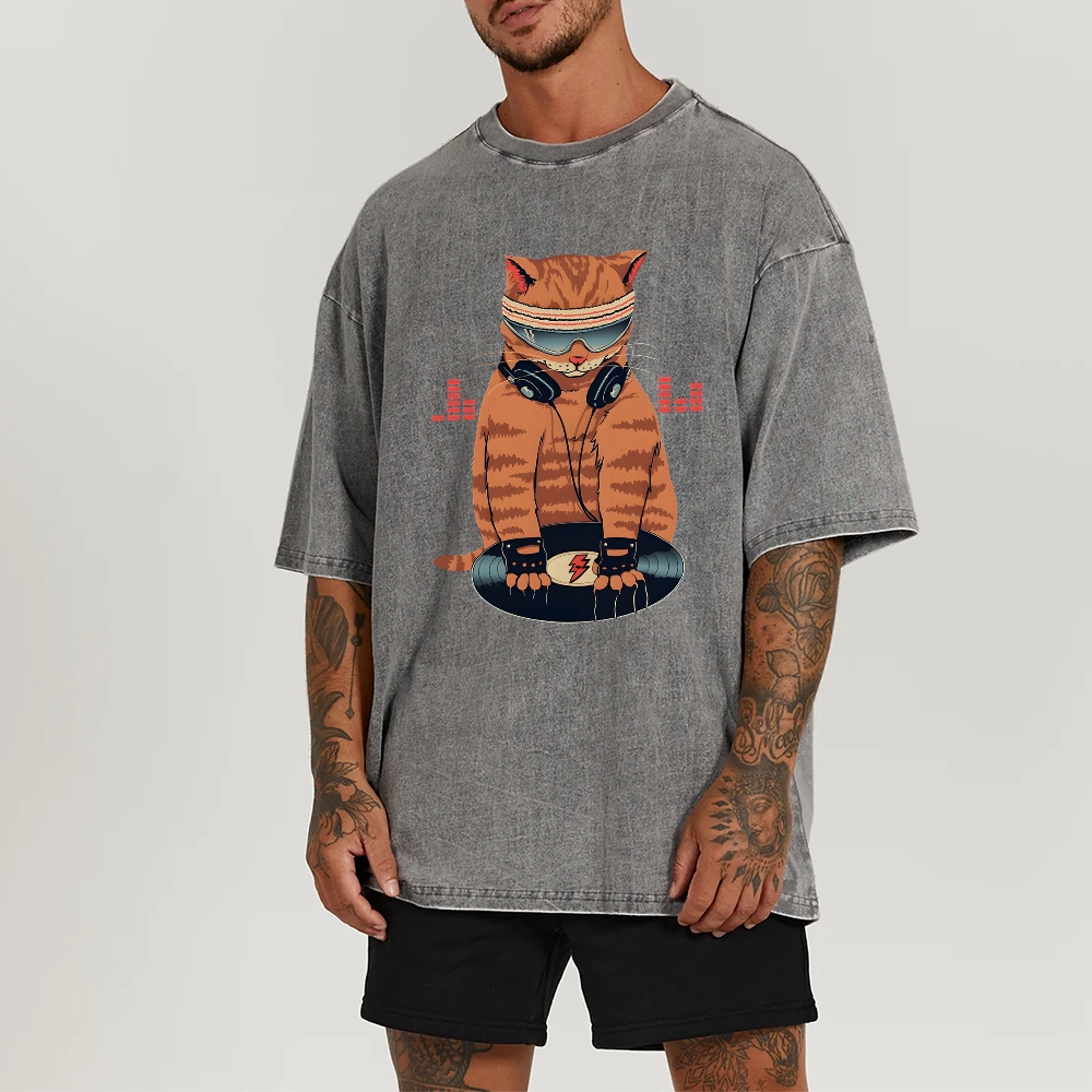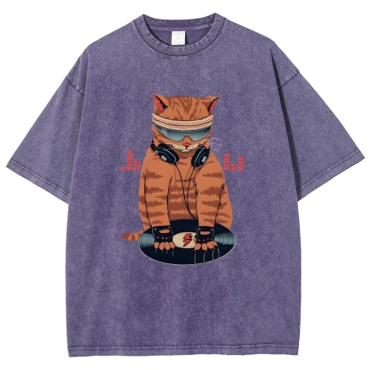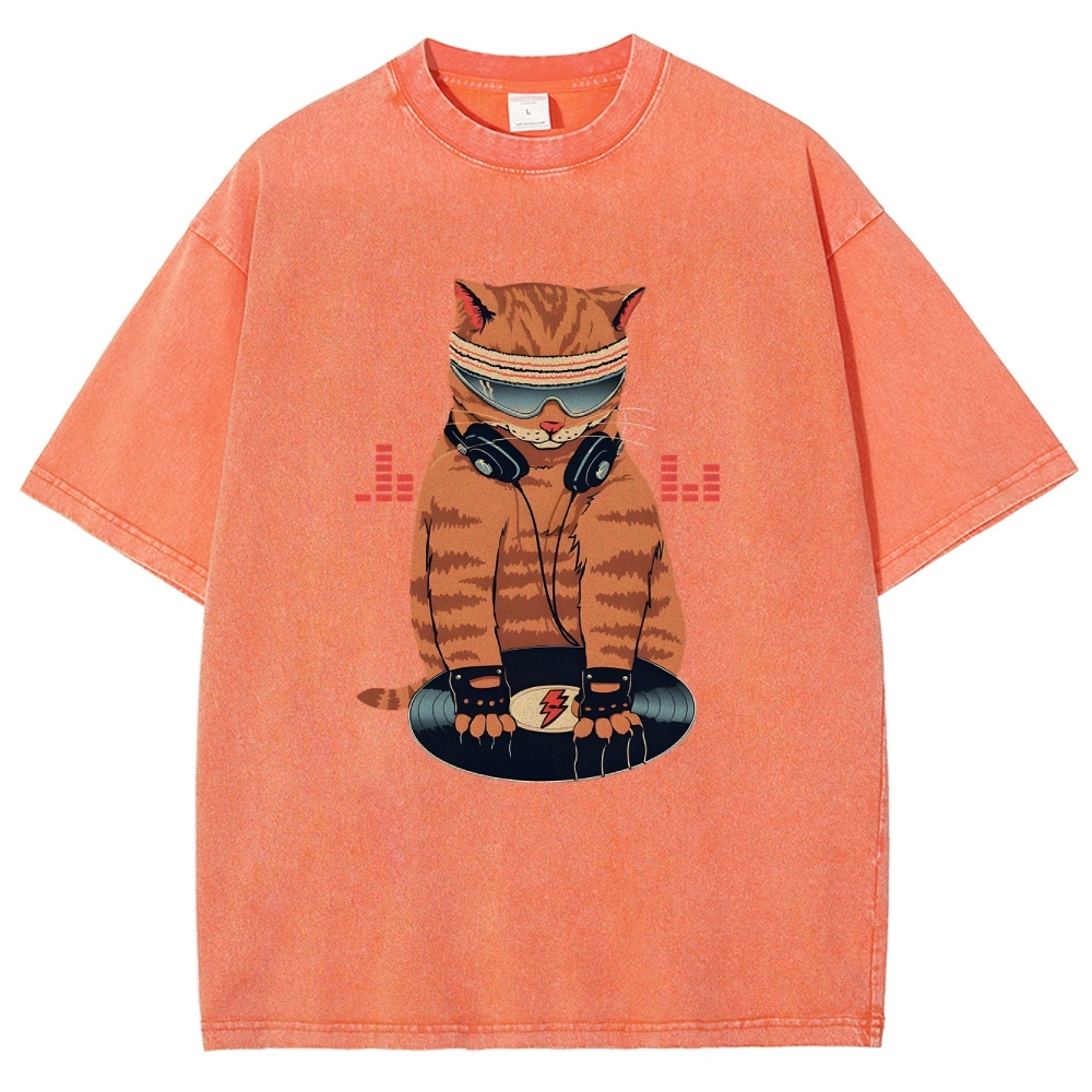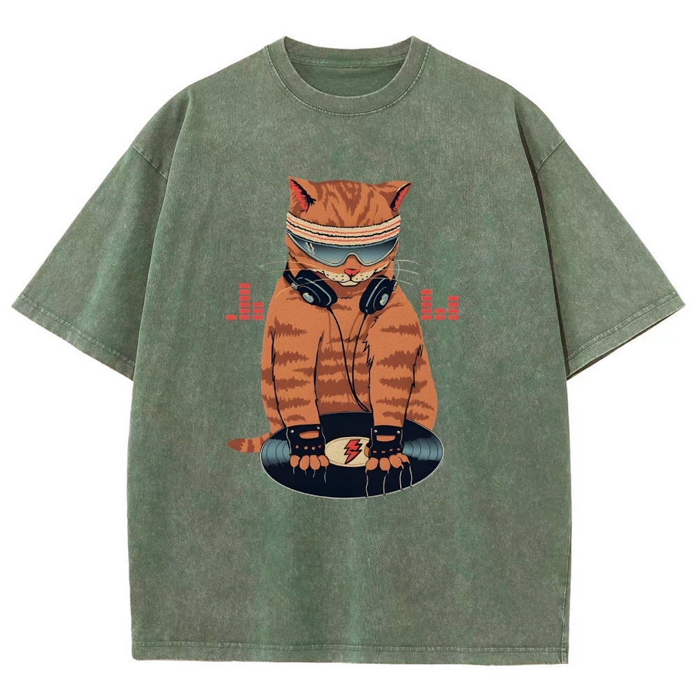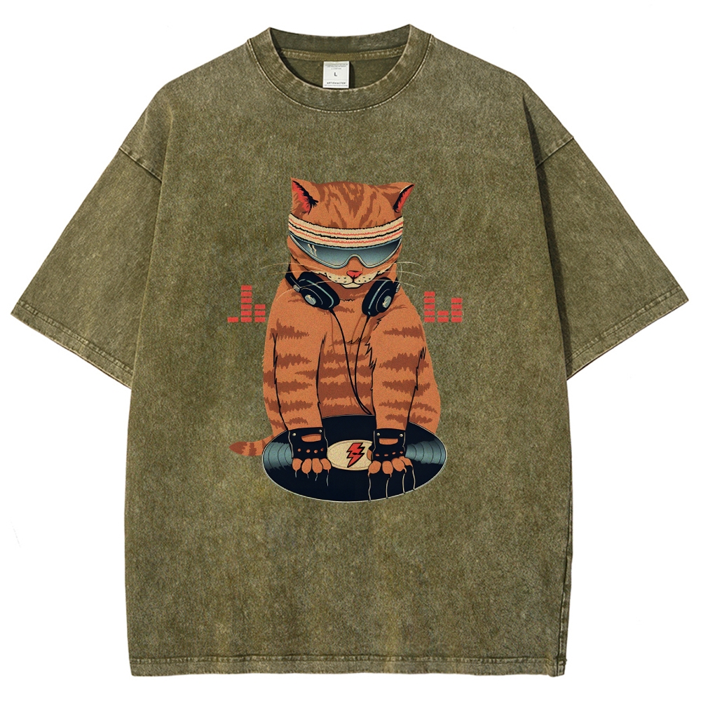 DJ Cat Unisex Fit Washed T-Shirt