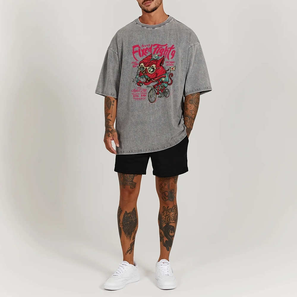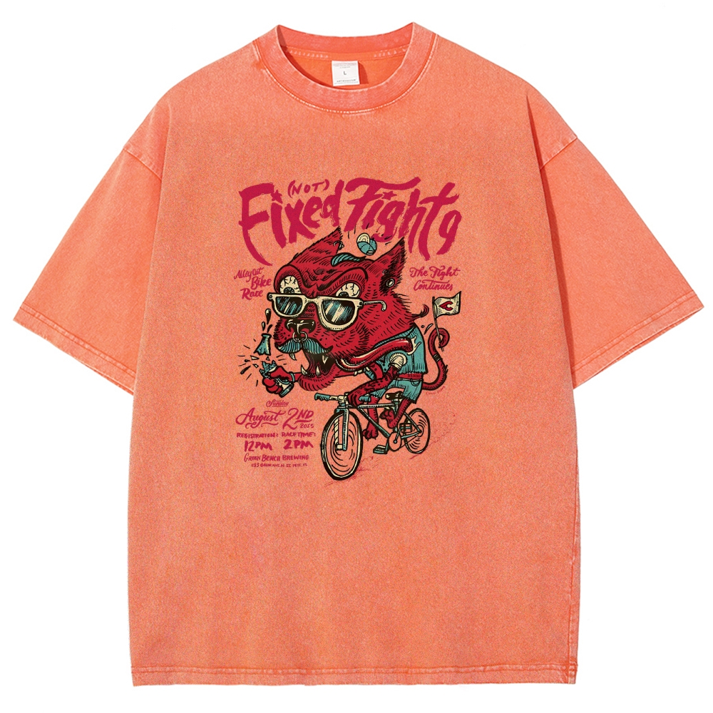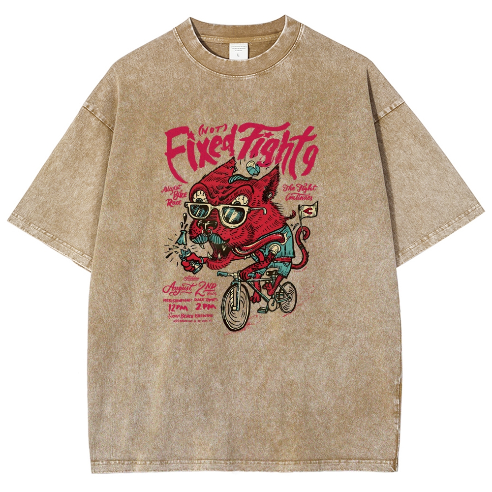 Dog With Bike Washed Vintage Short Sleeves T-Shirt