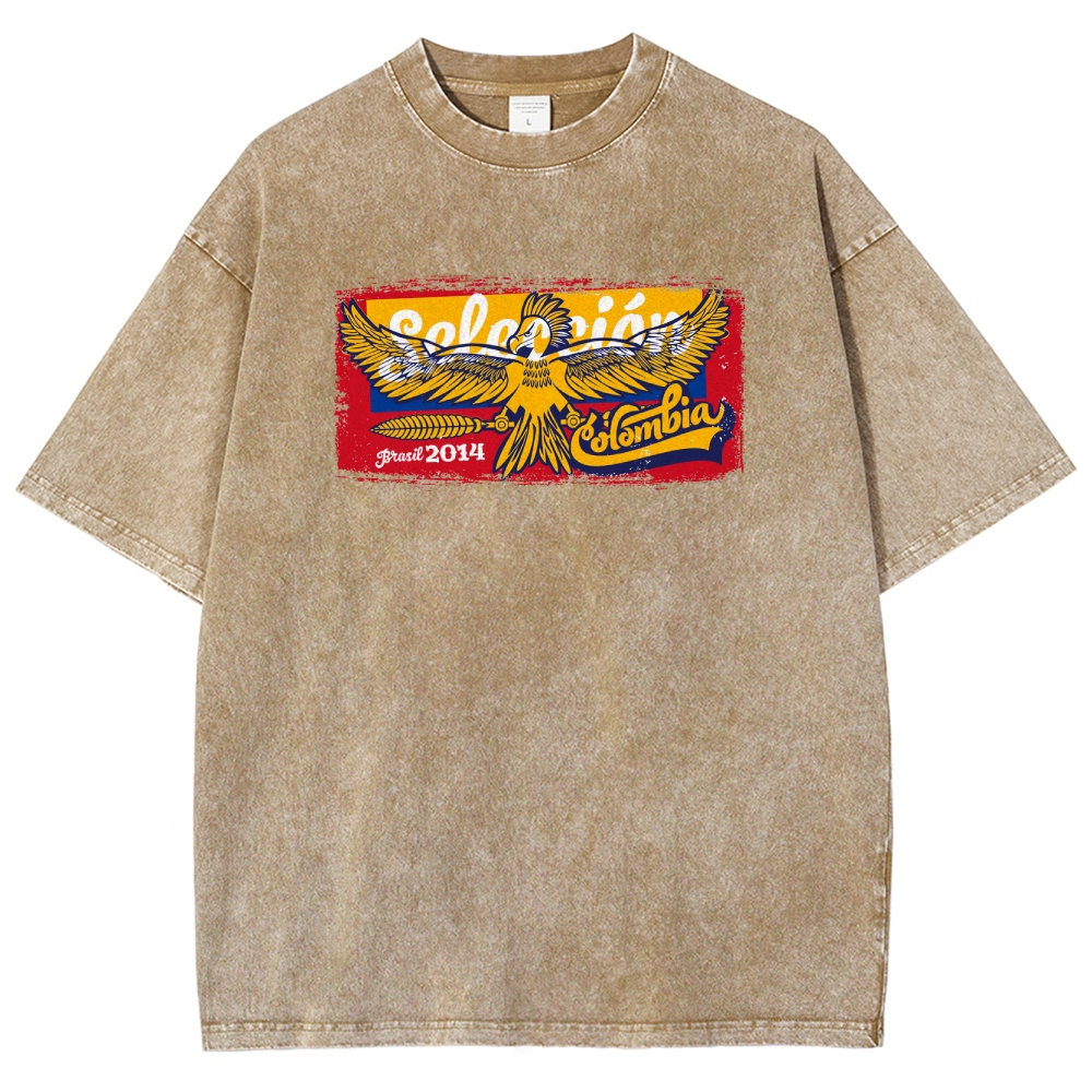 Eagle Pattern Washed Vintage Short Sleeves T-Shirt