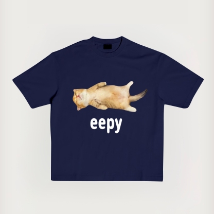 Eepy Cat Printed Short-Sleeved T-Shirt