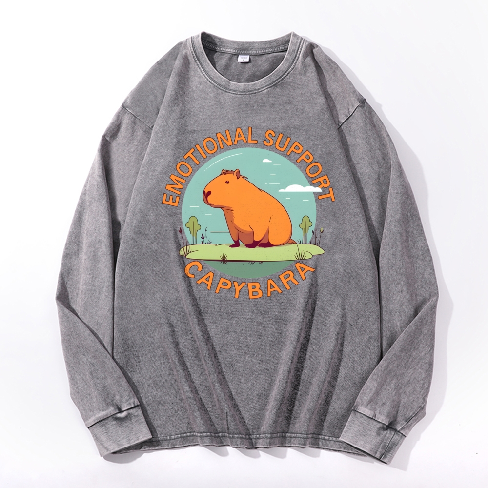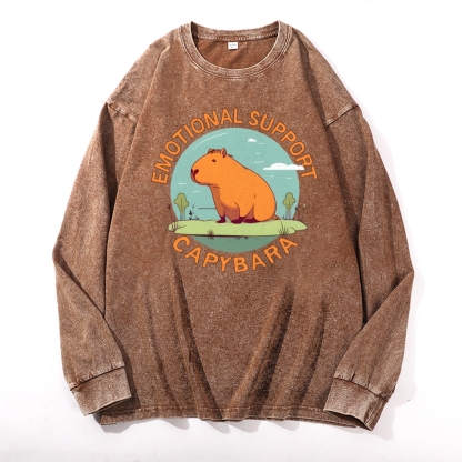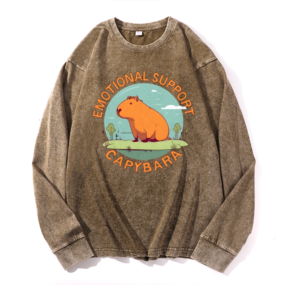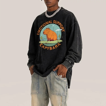 Emotional Support Capybara Deep Washed Vintage Long Sleeves T-Shirt