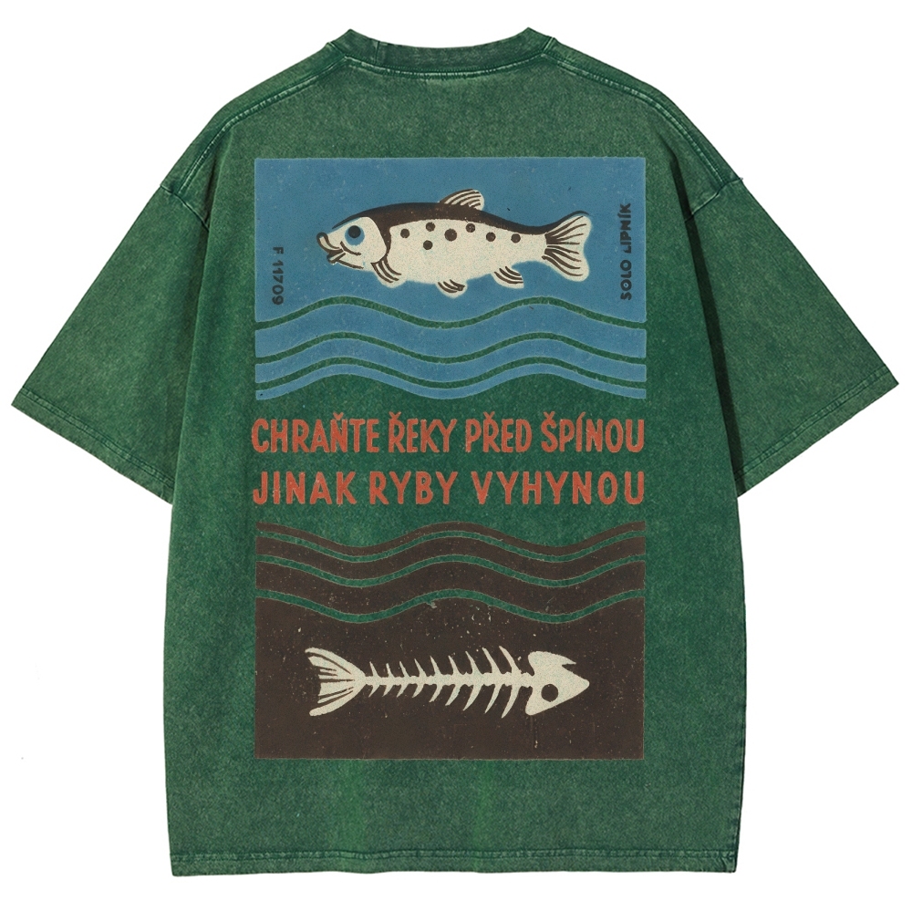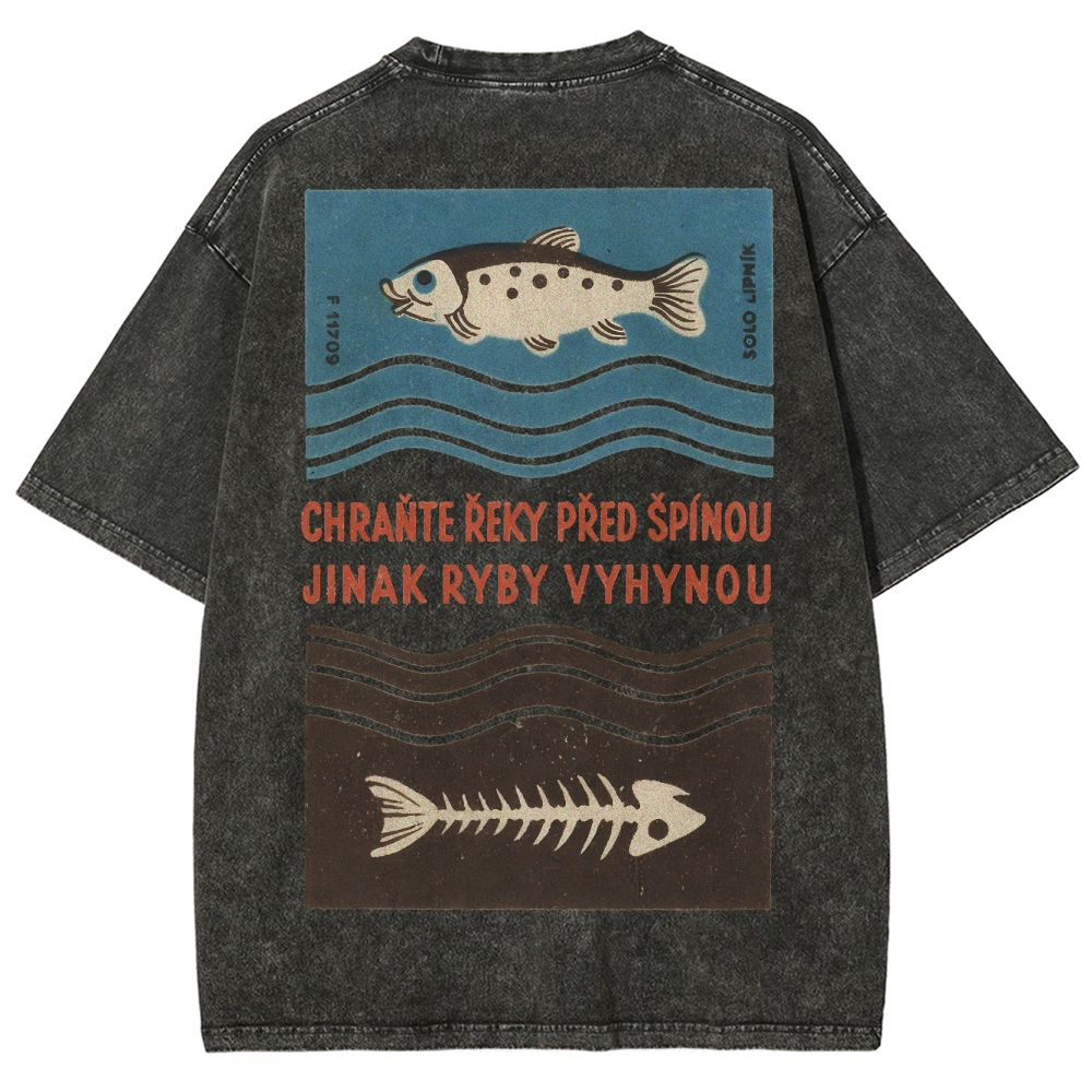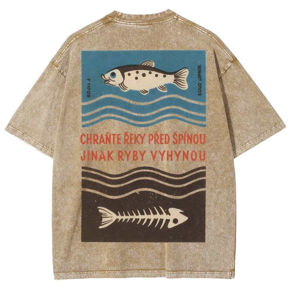 Fish And Fish Bone Washed Vintage Short Sleeves T-Shirt