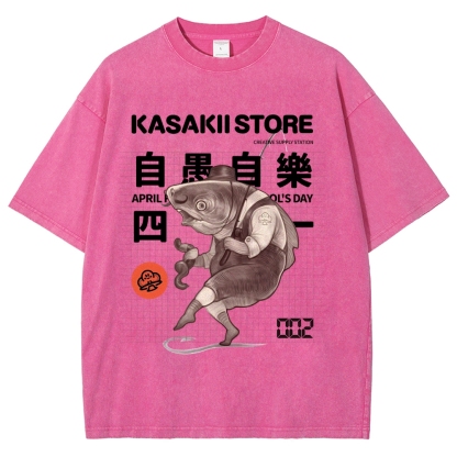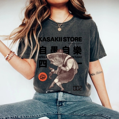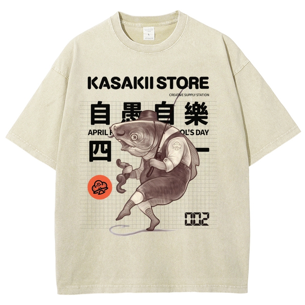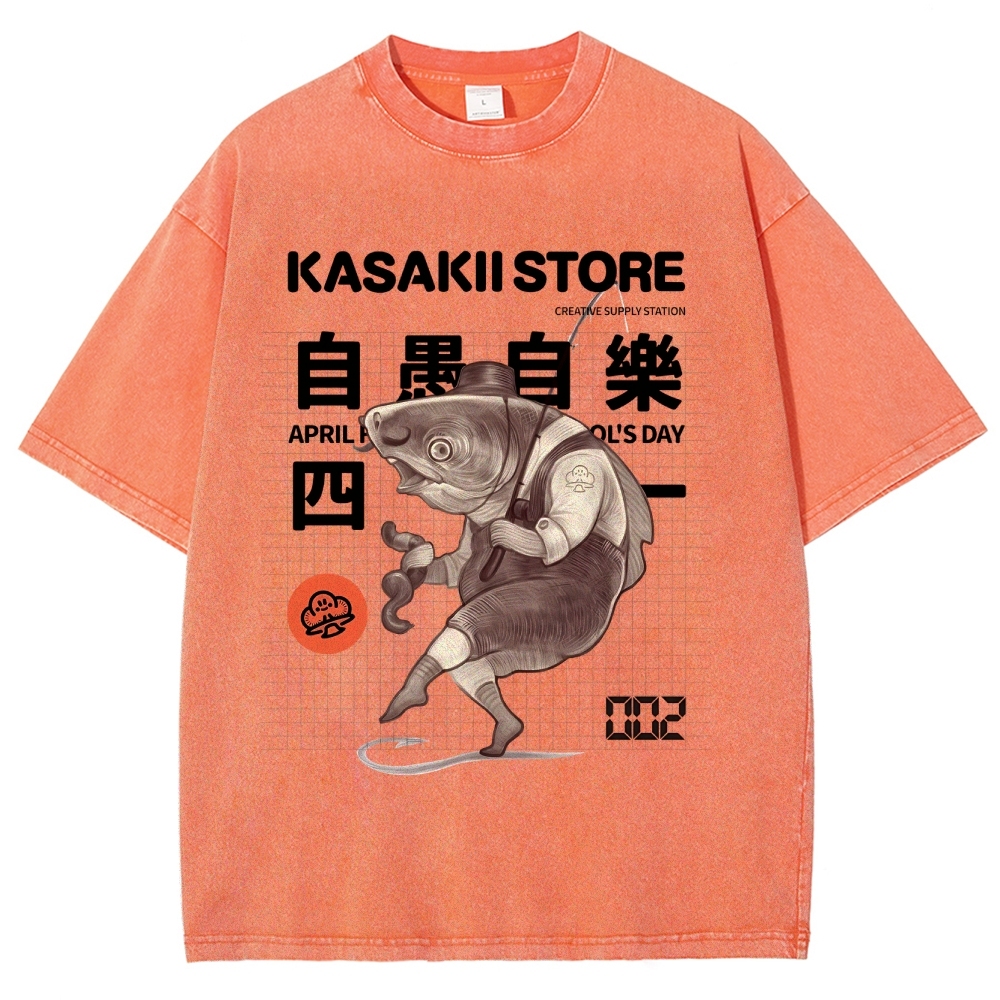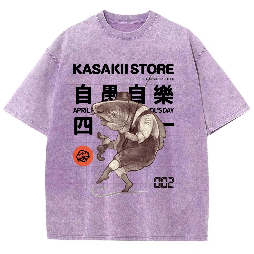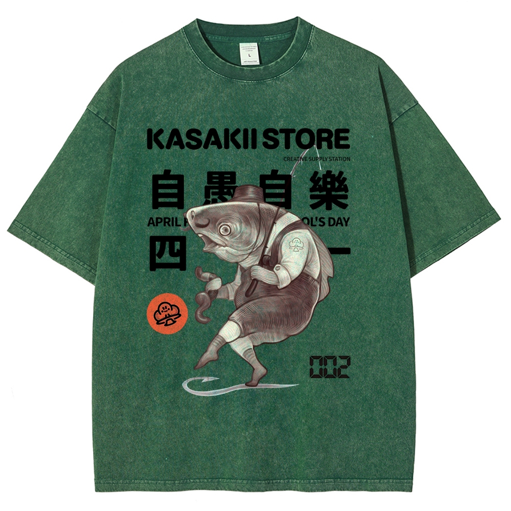 Fishing Shark Man Washed Vintage Short Sleeves T-Shirt