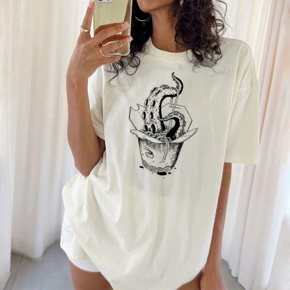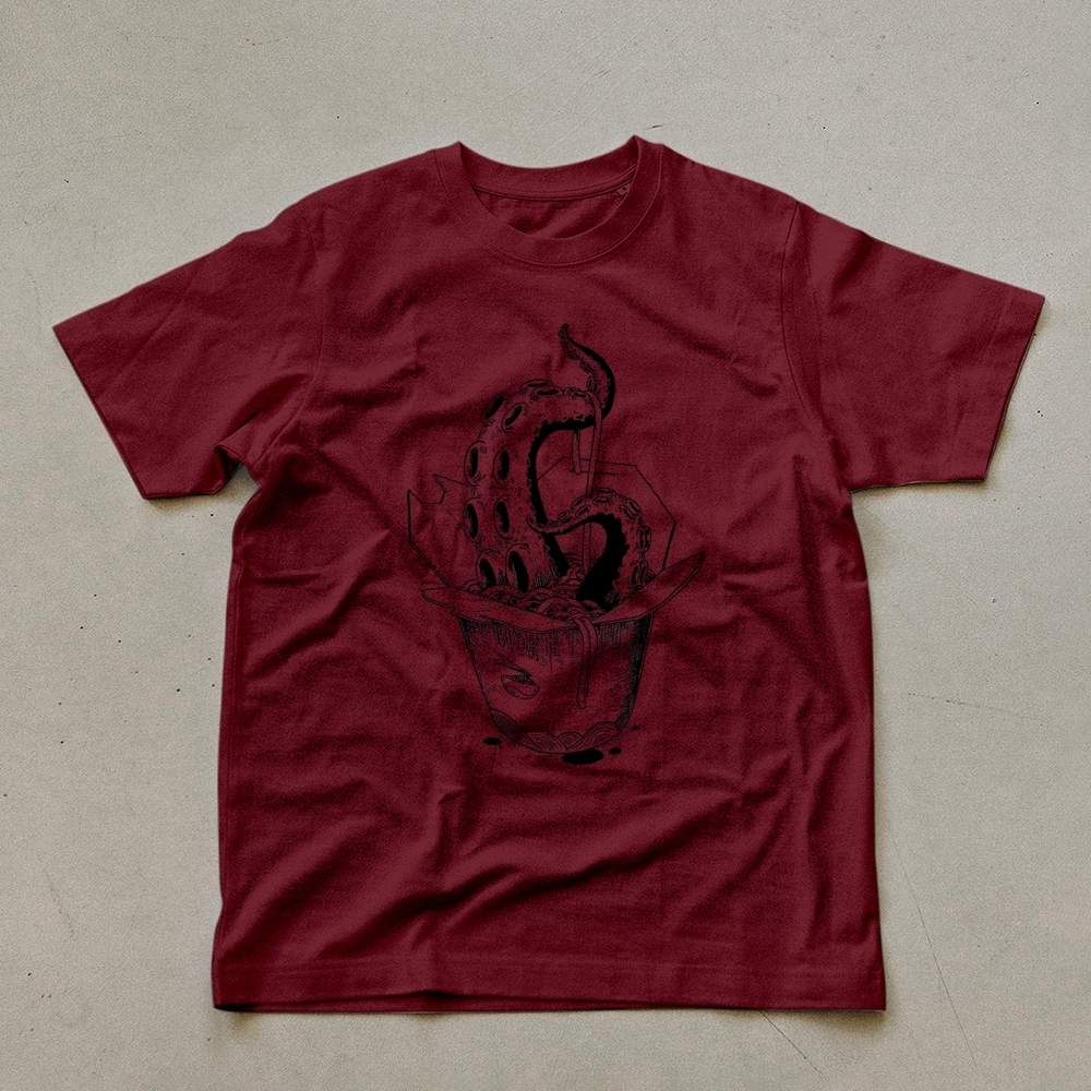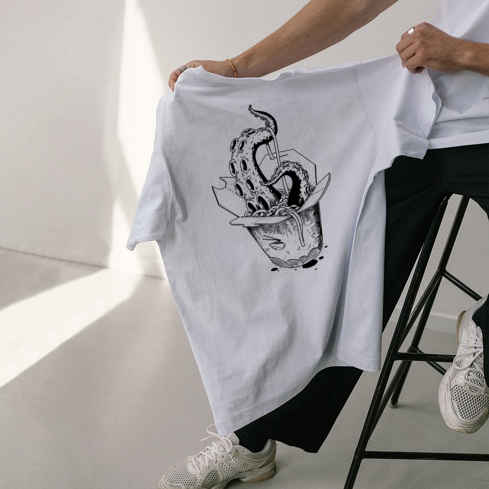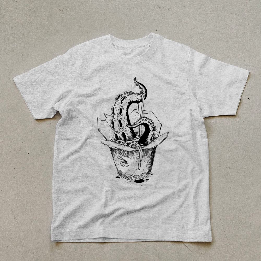 Fresh Octopus Ramen Pattern Unisex Prints T-Shirt