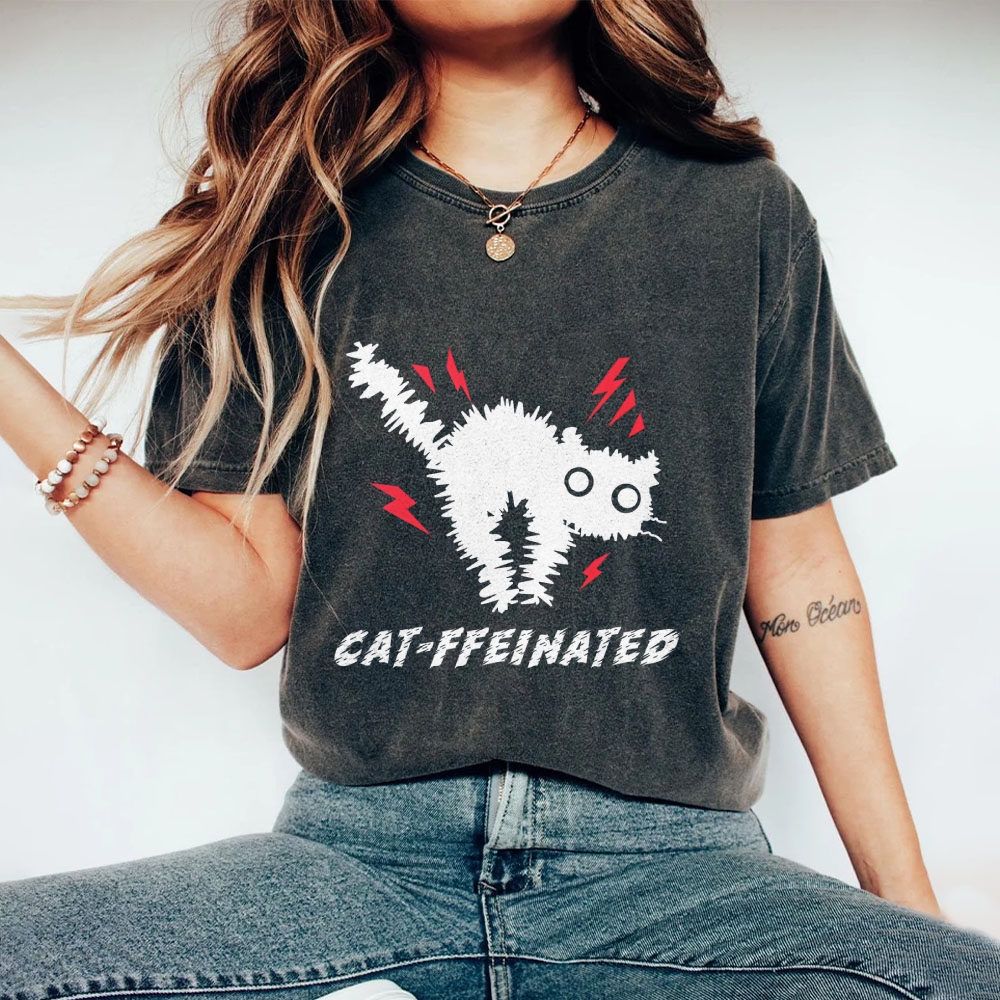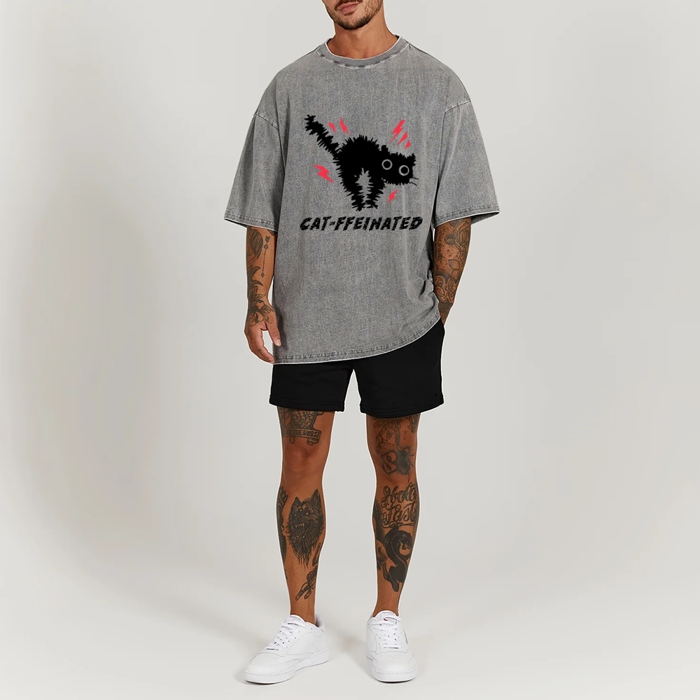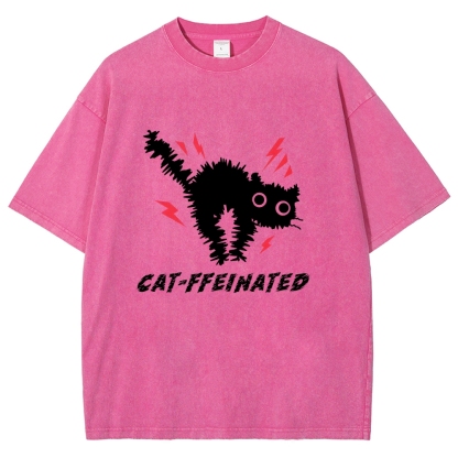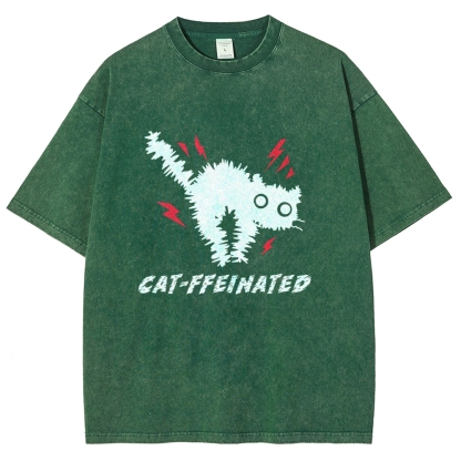 Frightened Cat Washed Vintage Short Sleeves T-Shirt