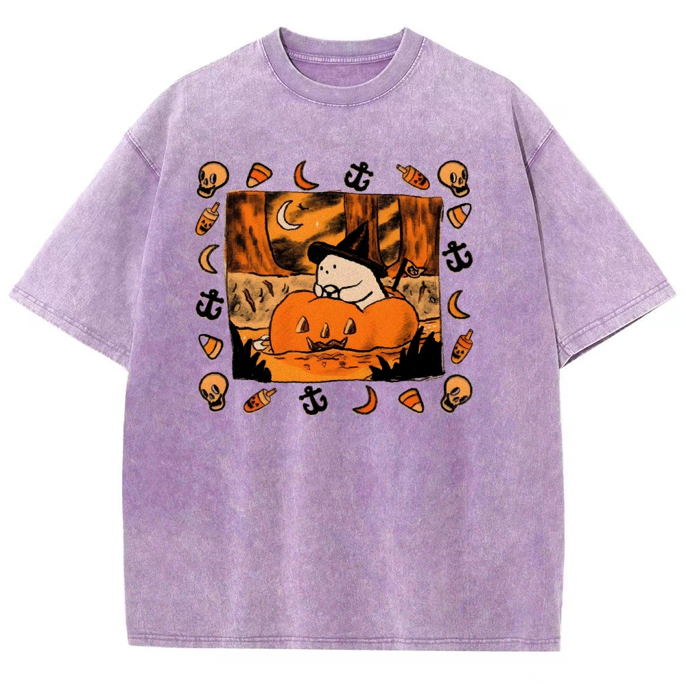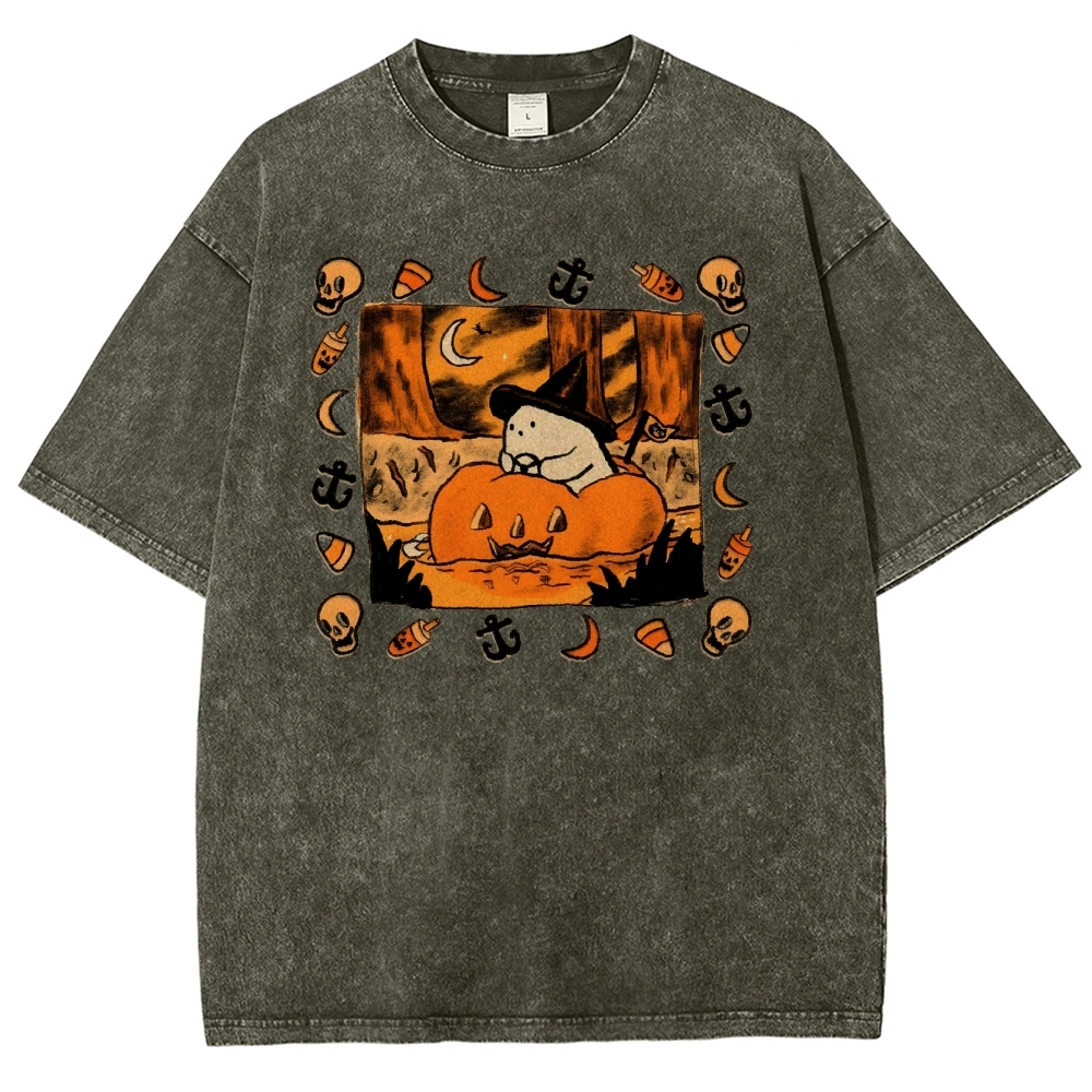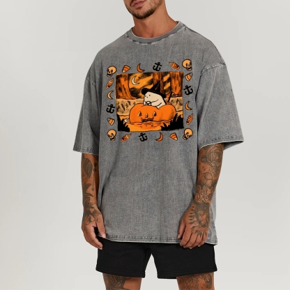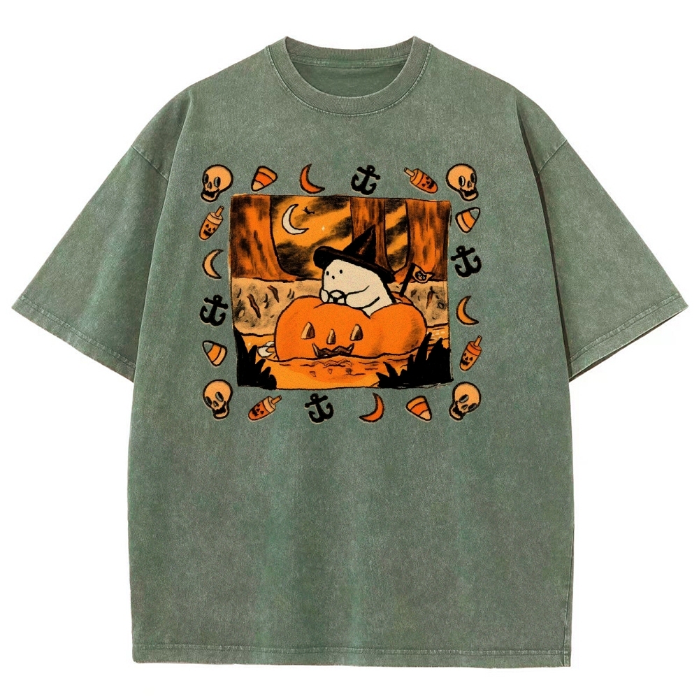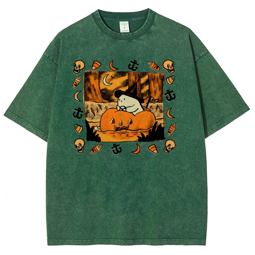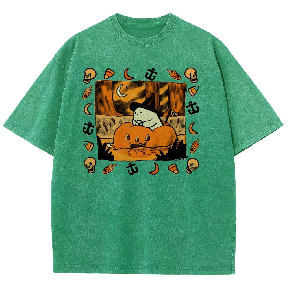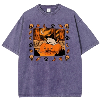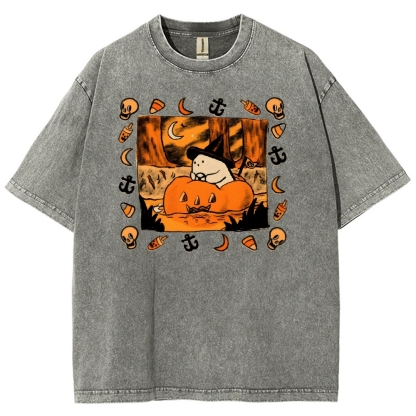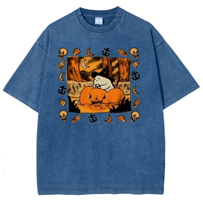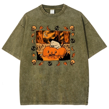 Ghost Pumpkin Ship Washed Vintage Short Sleeves T-Shirt