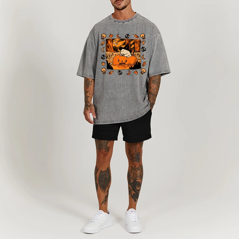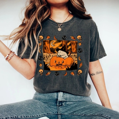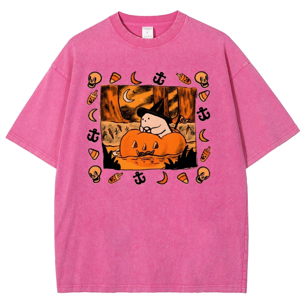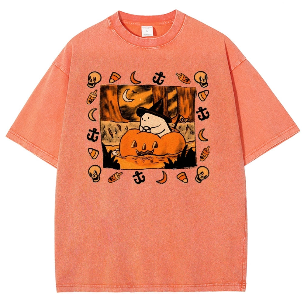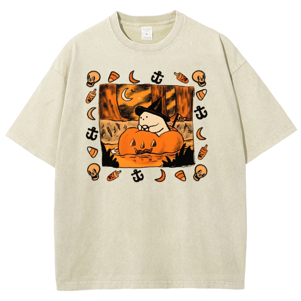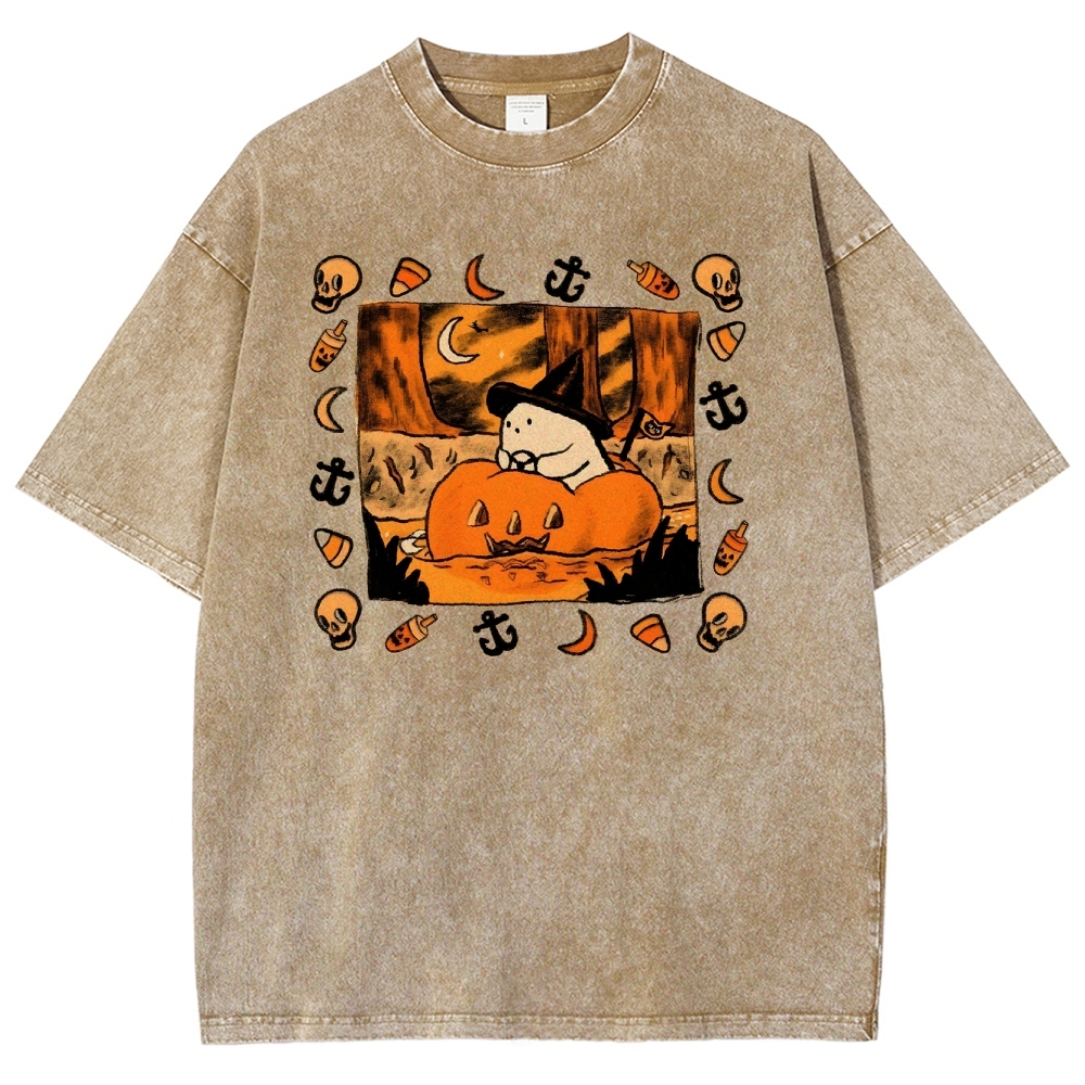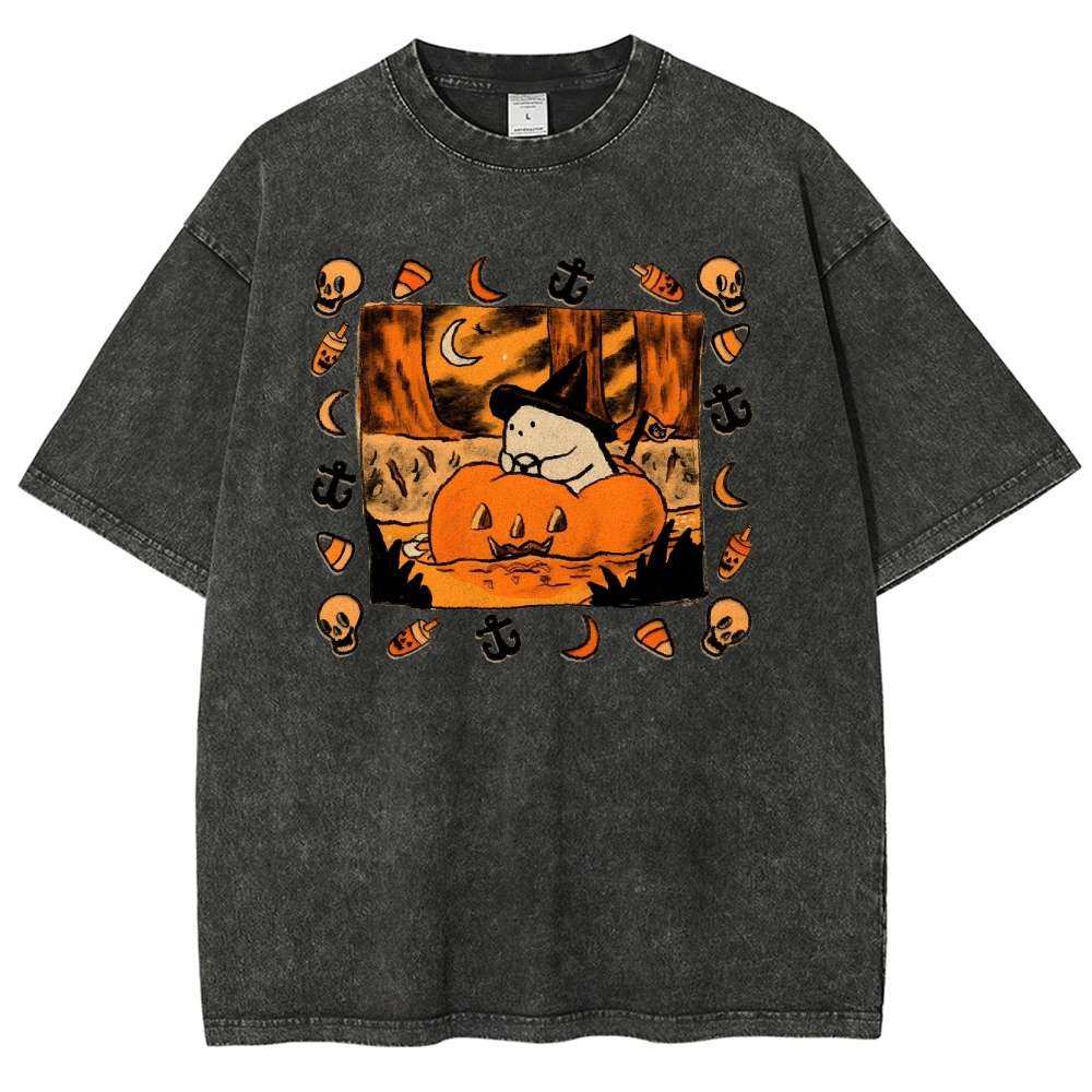 Ghost Pumpkin Ship Washed Vintage Short Sleeves T-Shirt