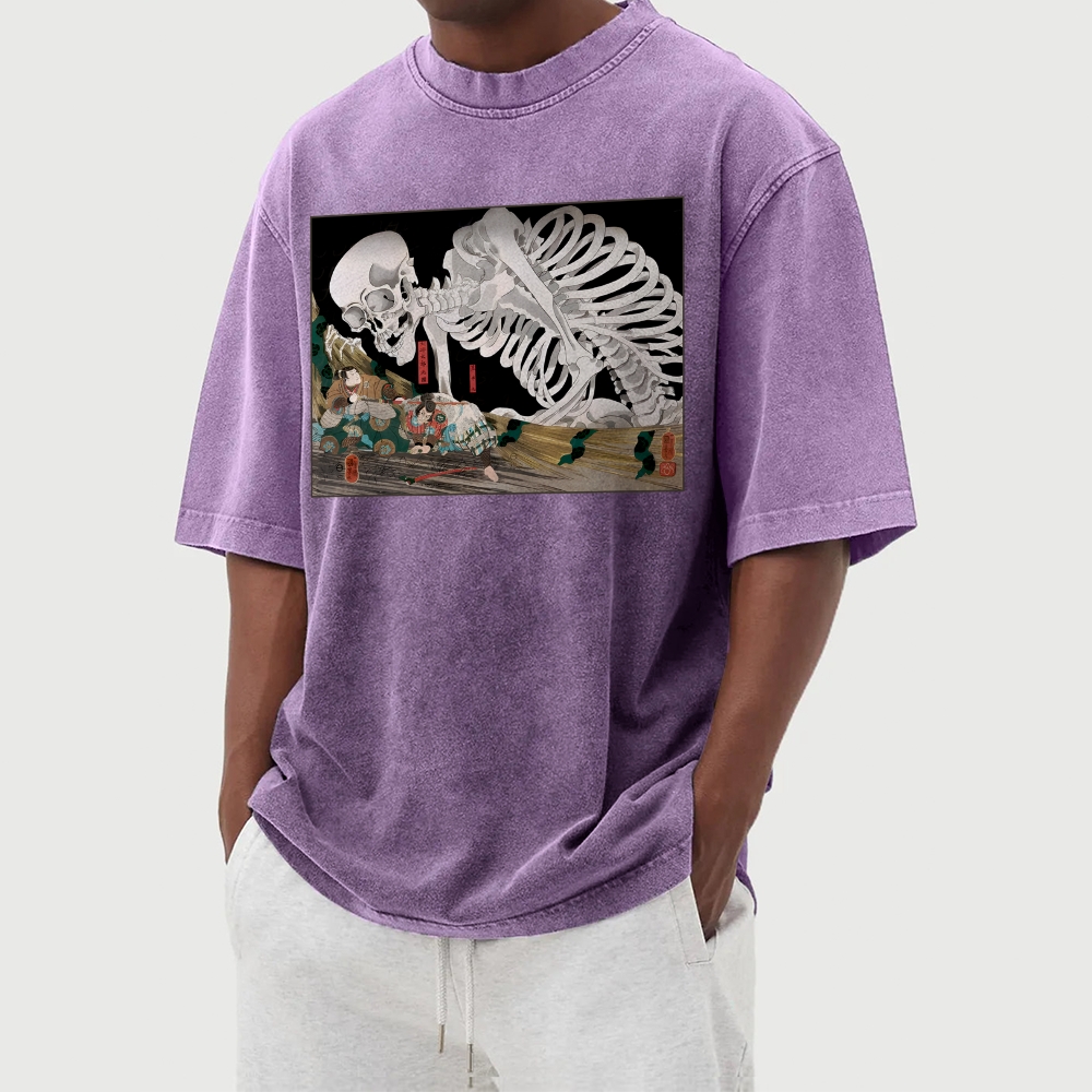 Giant Skull Ukiyo-e Washed Vintage Short Sleeves T-Shirt