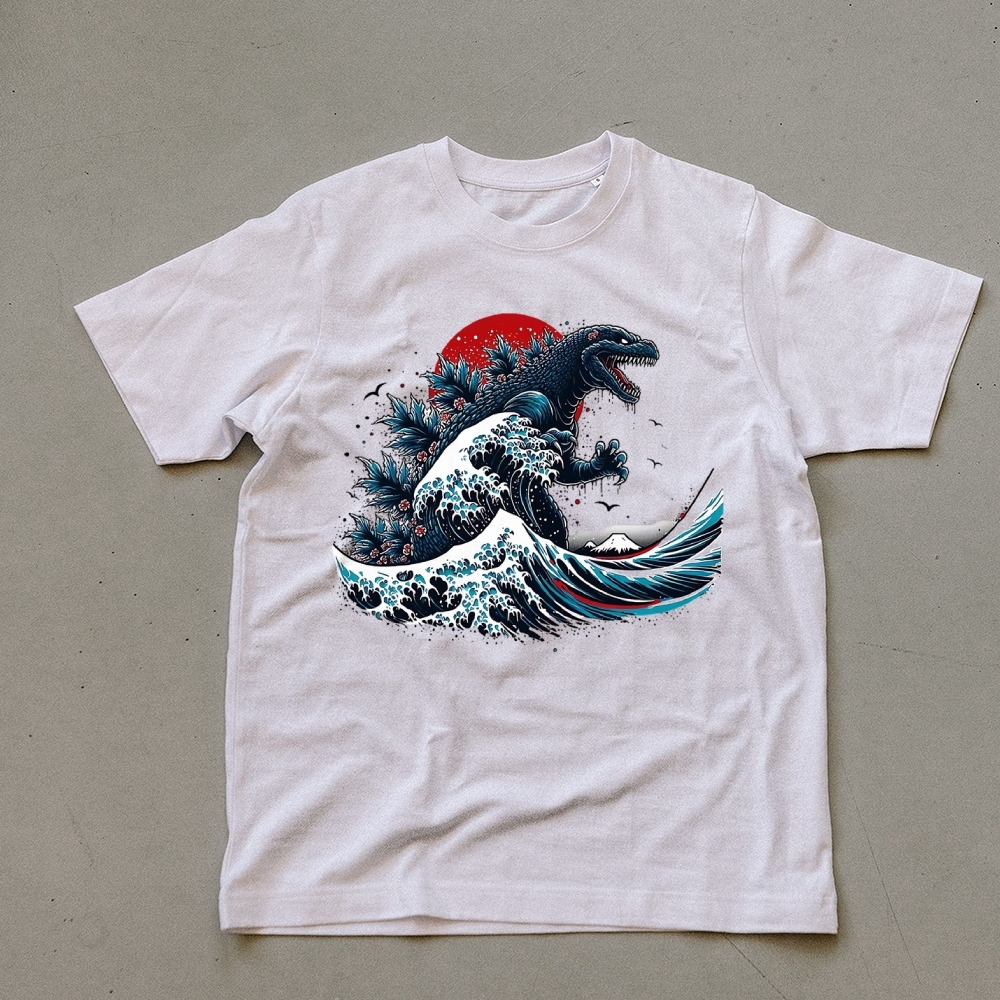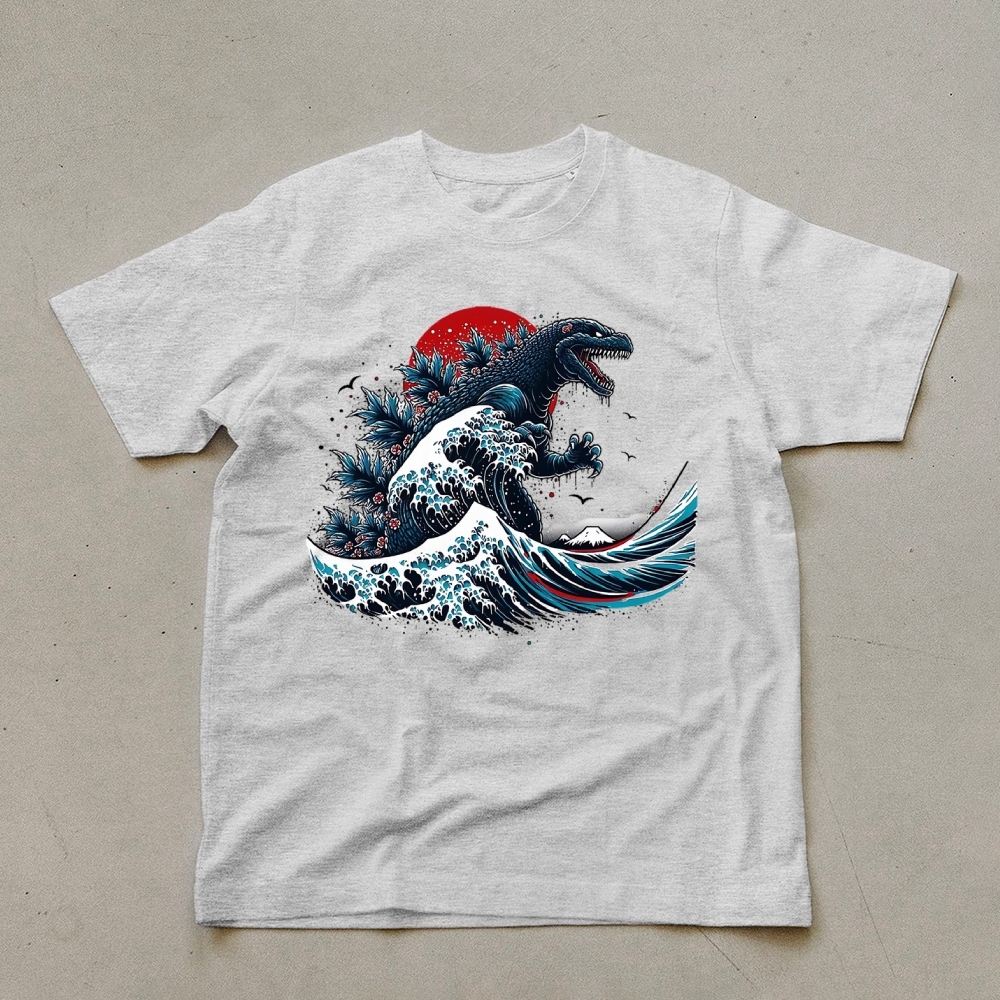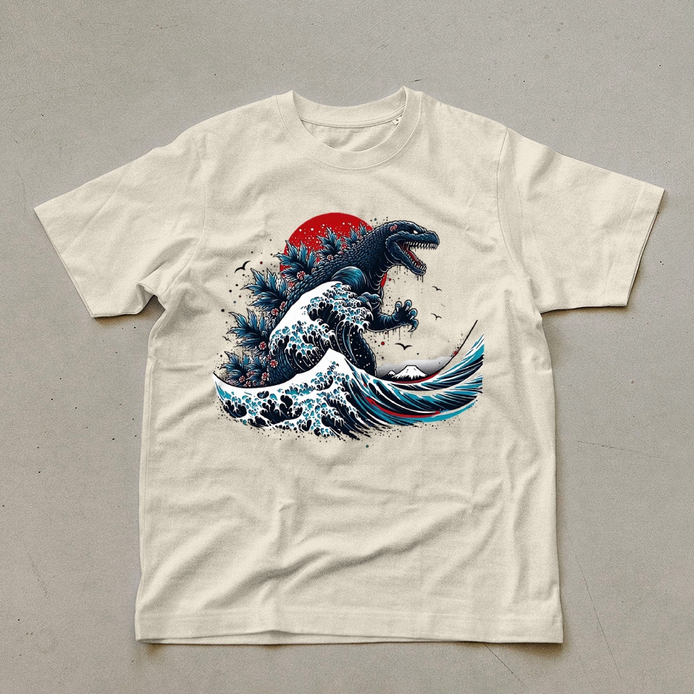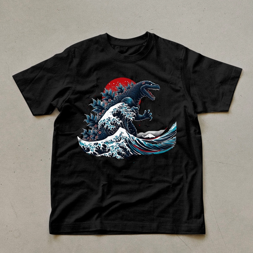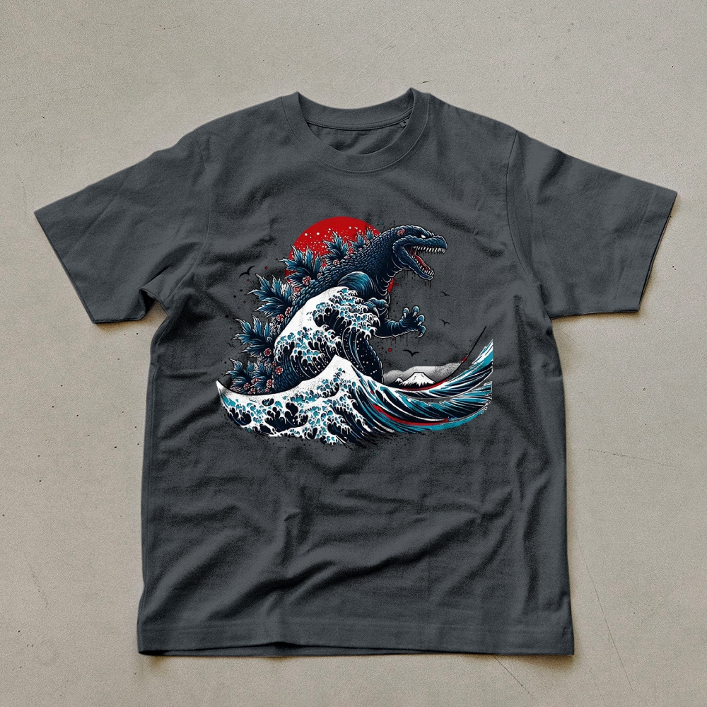 Godzilla Wave Ukiyoe Pattern Unisex Prints T-Shirt