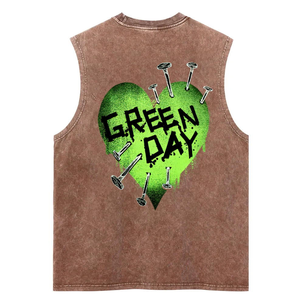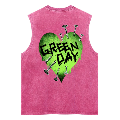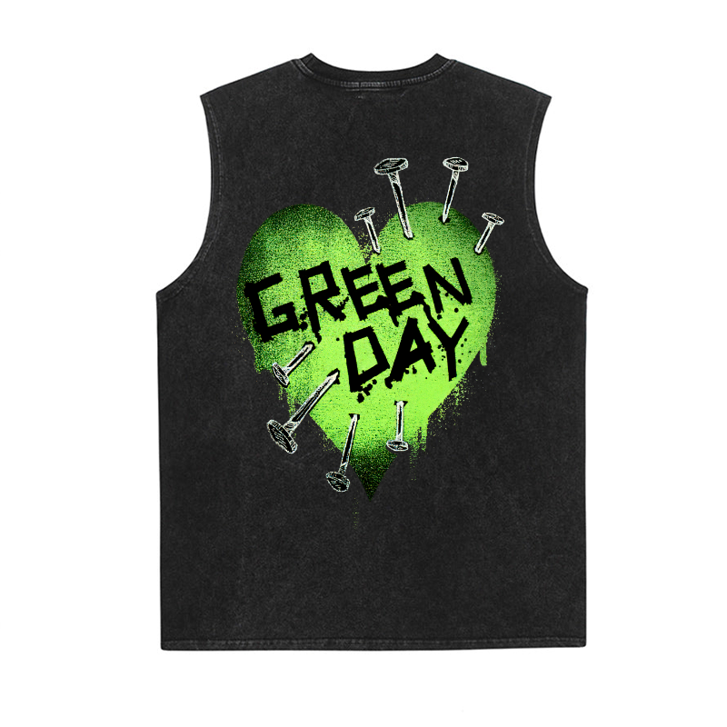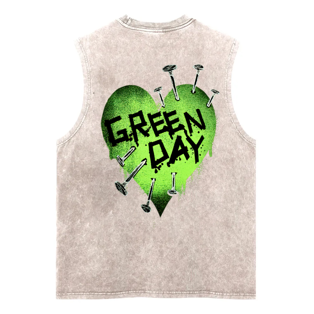 Green Day Nail Heart Washed Fitness Tank Top