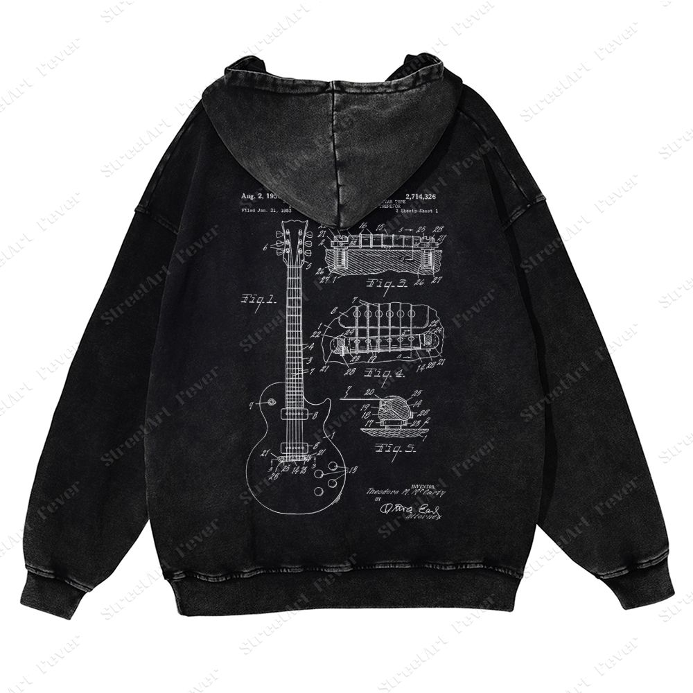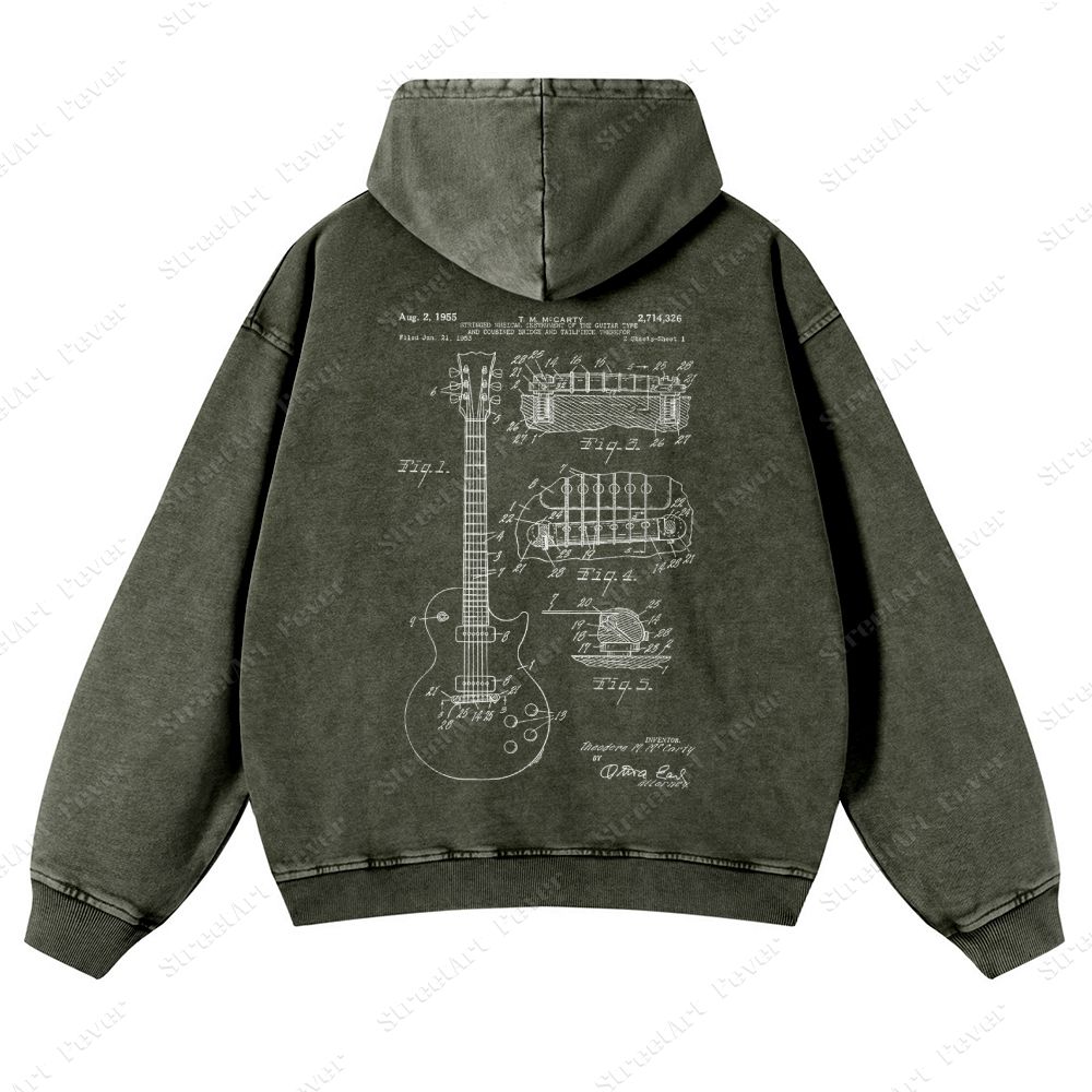 Guitar Patent Unisex Fit Vintage Washed Hoodie