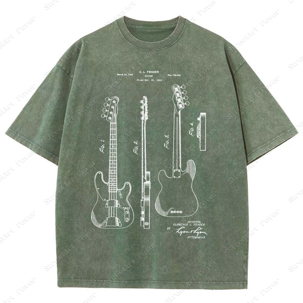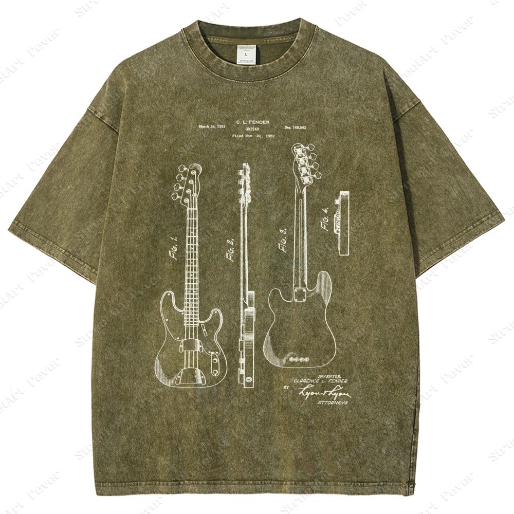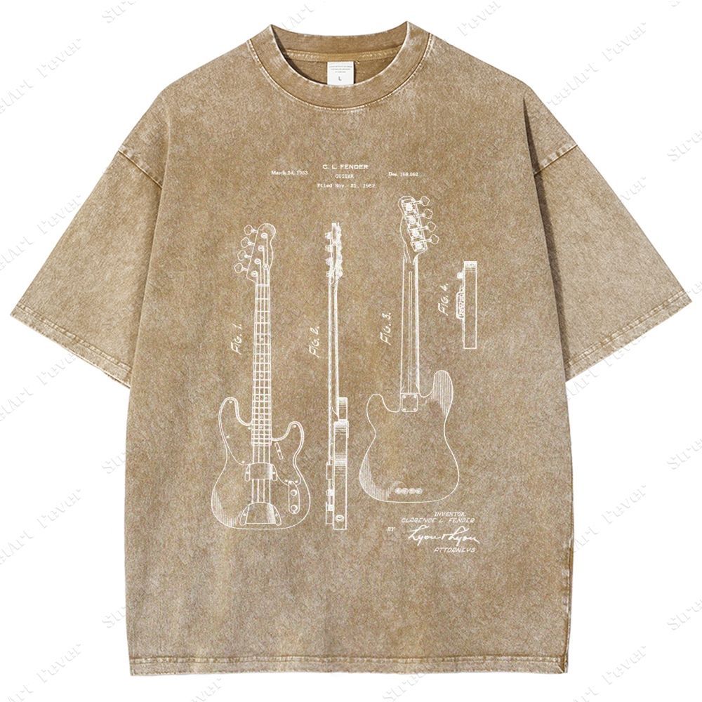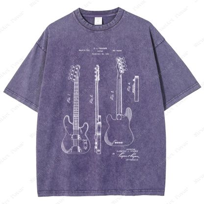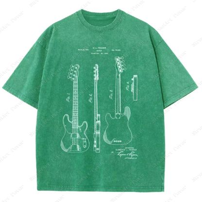 Guitar Patent Unisex Fit Washed T-Shirt
