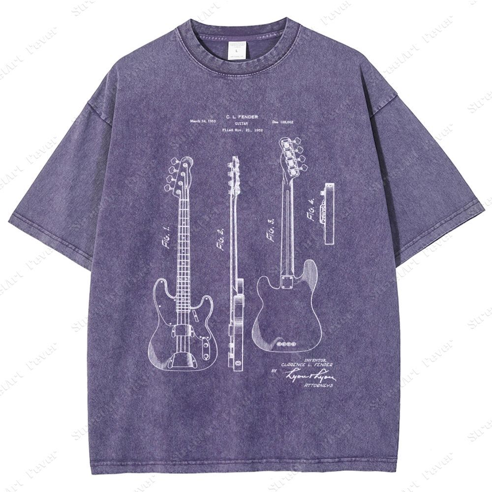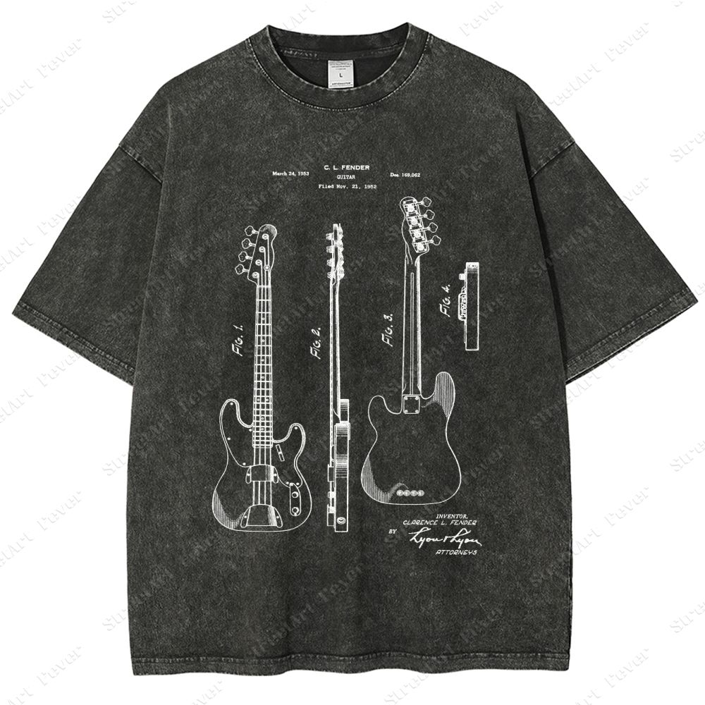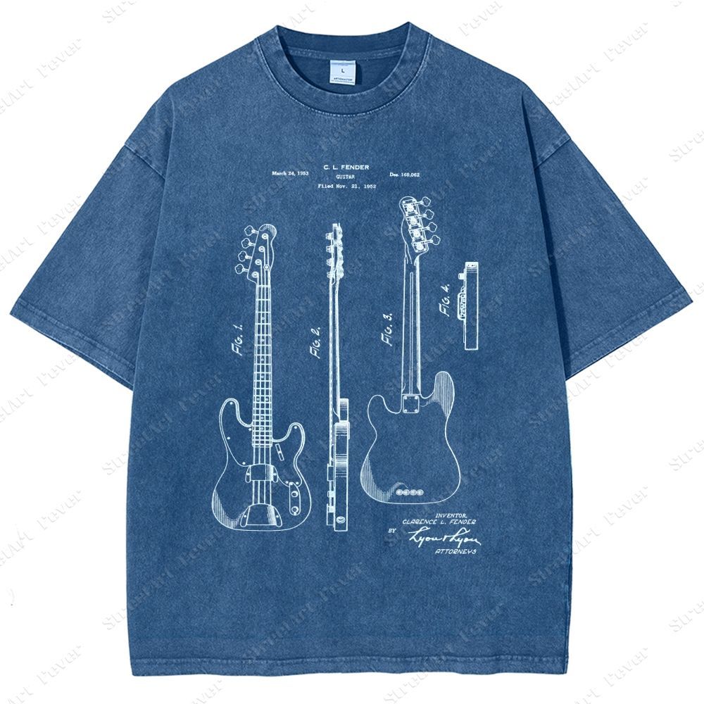 Guitar Patent Unisex Fit Washed T-Shirt