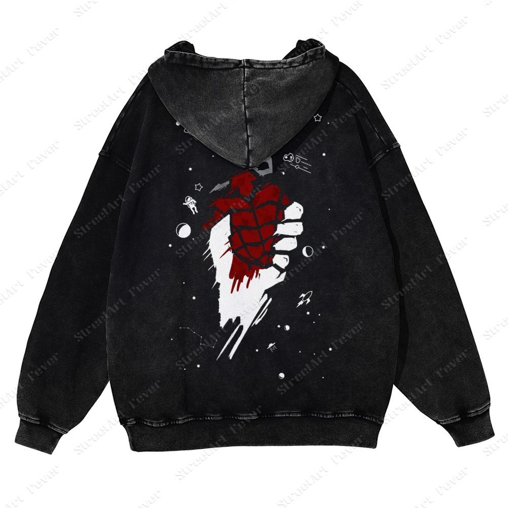 Hand Grenade Universe Unisex Fit Vintage Washed Hoodie