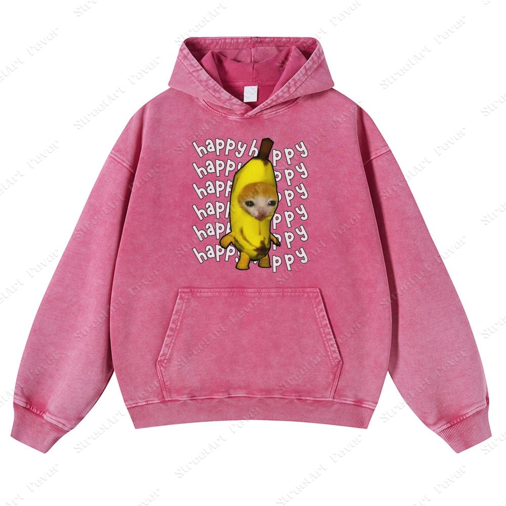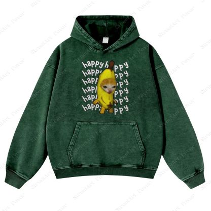 Happy Banana Cat Unisex Fit Vintage Washed Hoodie