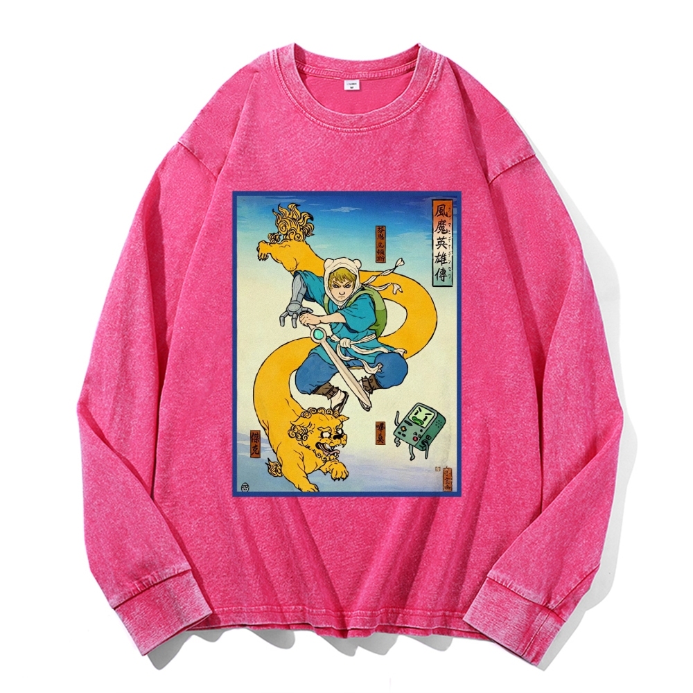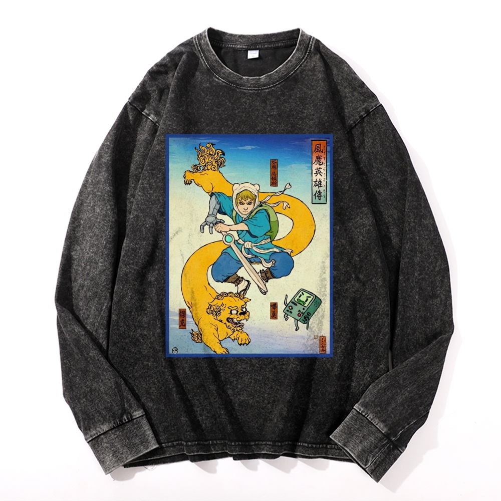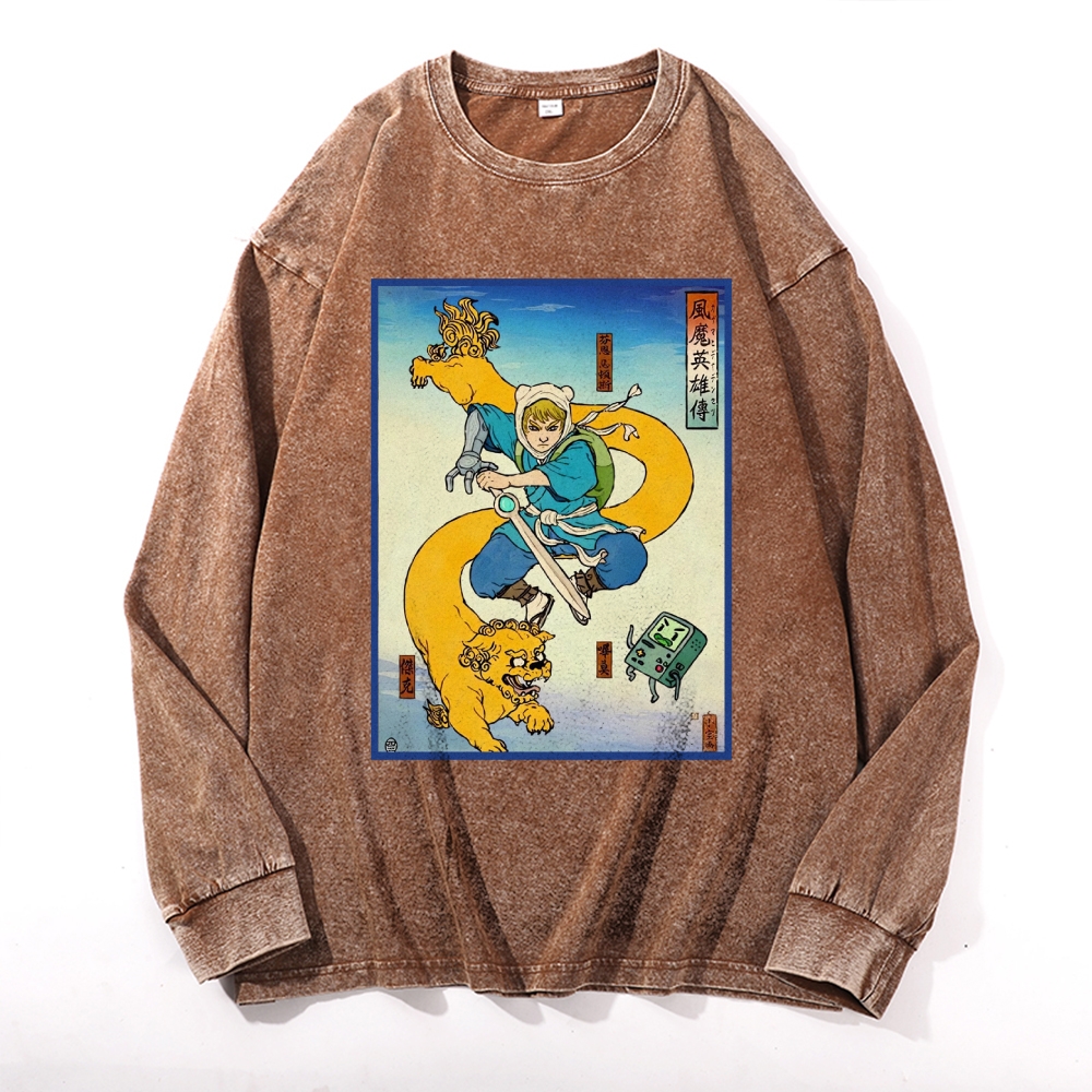 Hero Story Pattern Deep Washed Vintage Long Sleeves T-Shirt