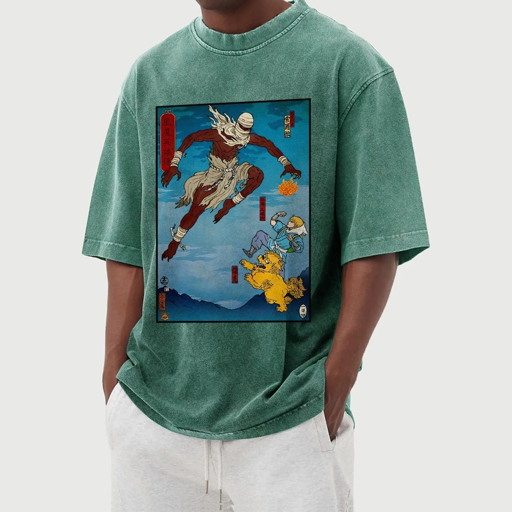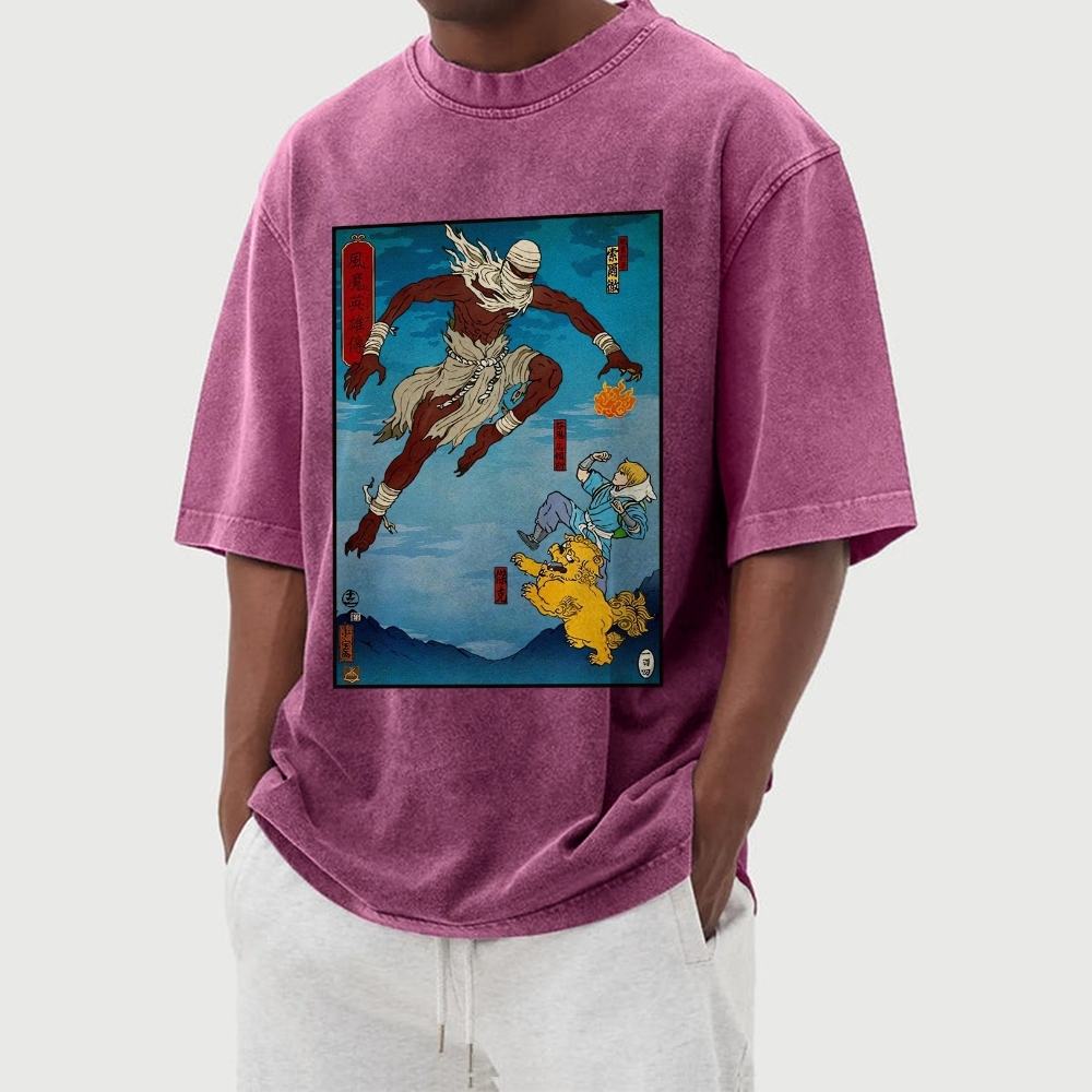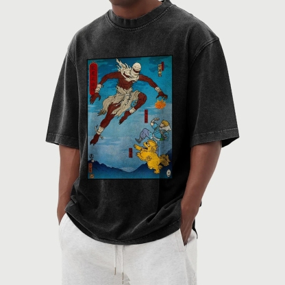 Hero Story Pattern Washed Vintage Short Sleeves T-Shirt