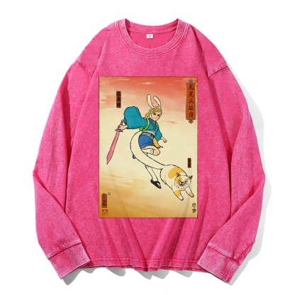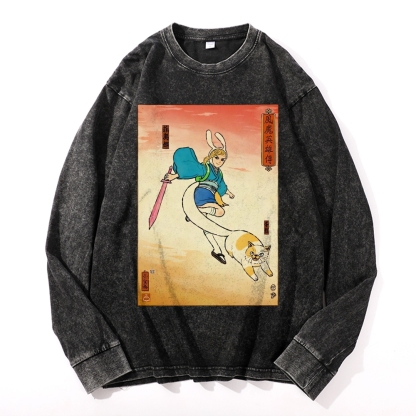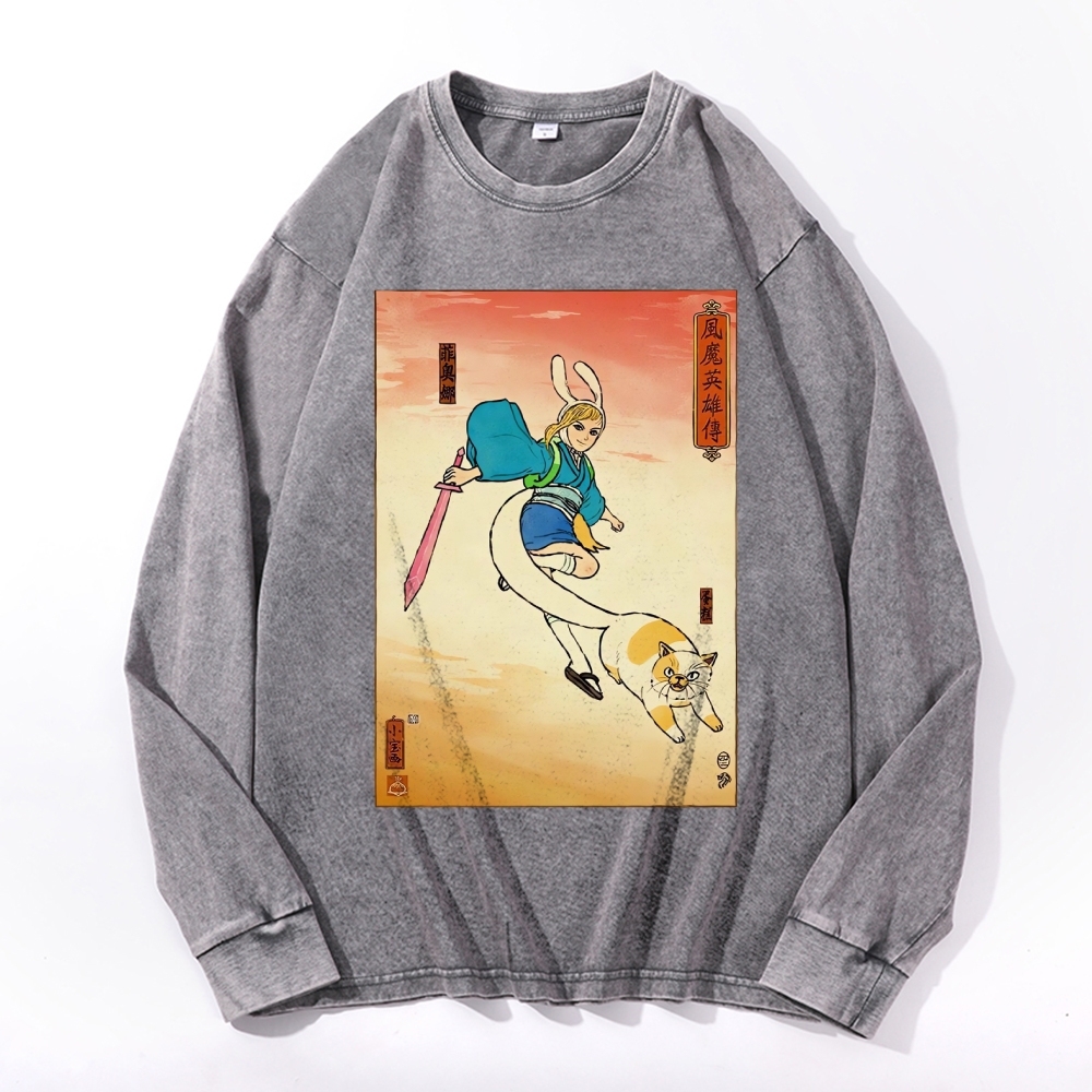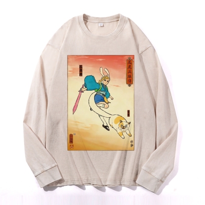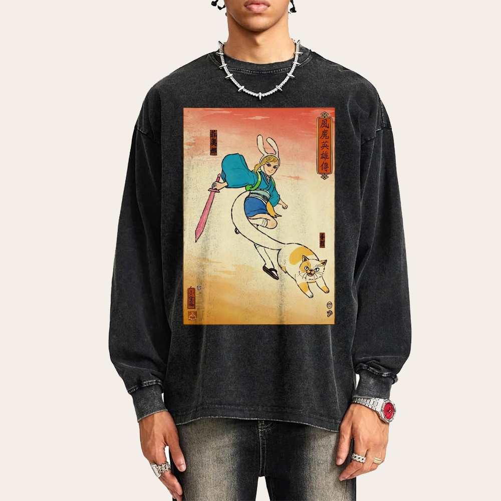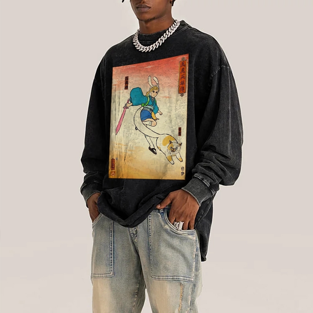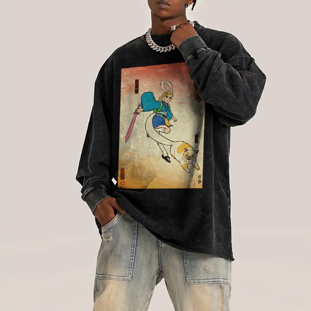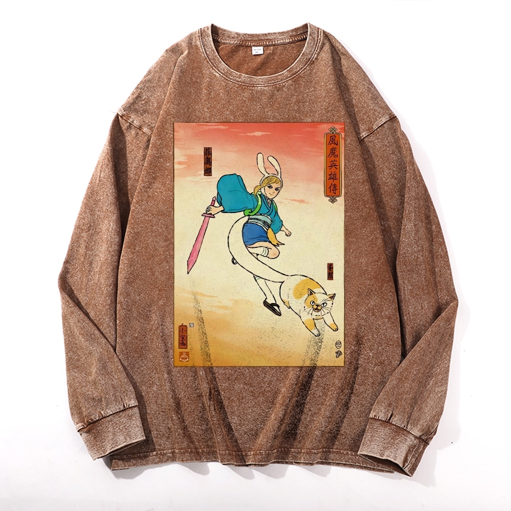 Hero Story Printed Deep Washed Vintage Long Sleeves T-Shirt