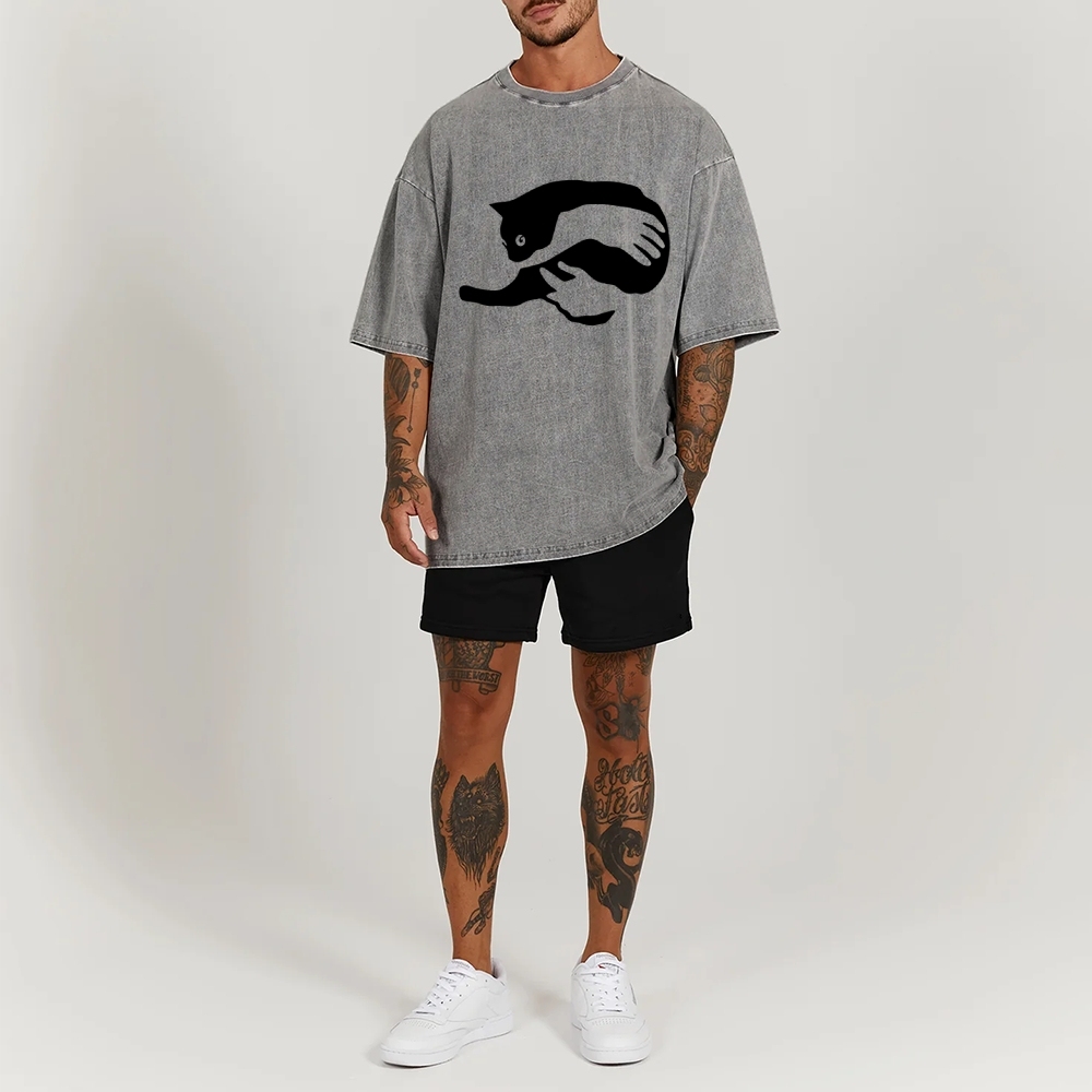 Hug Cat Washed Vintage Short Sleeves T-Shirt