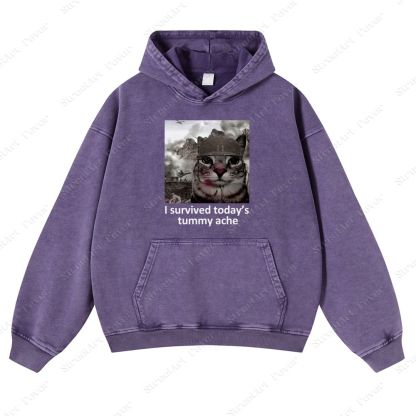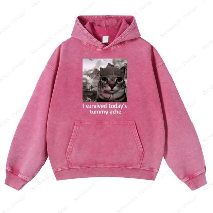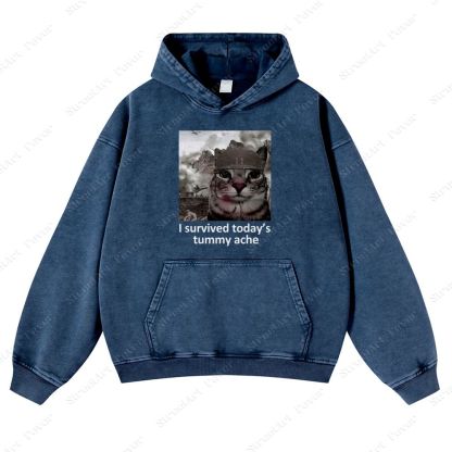 I survived today's tummy ache Unisex Fit Vintage Washed Hoodie
