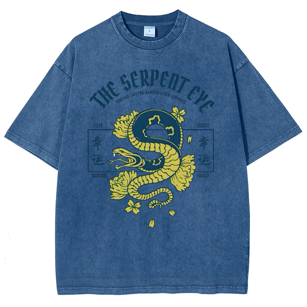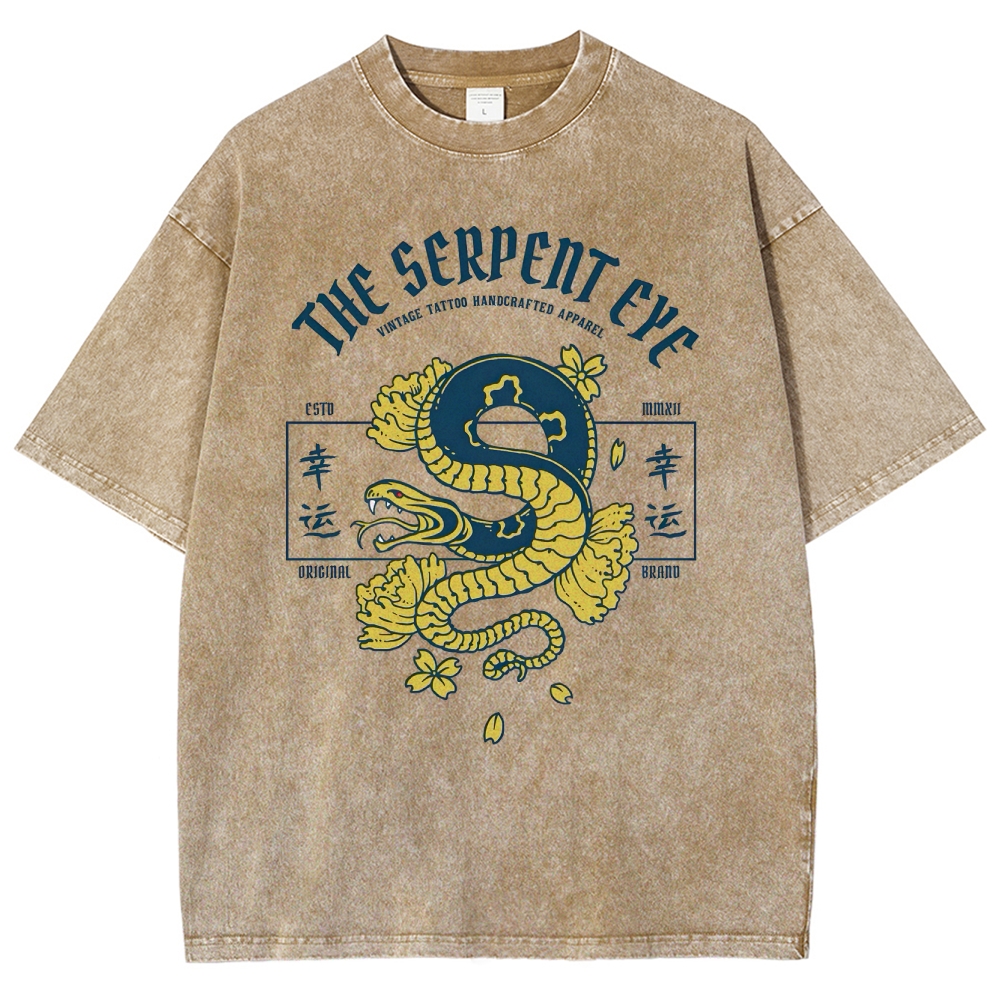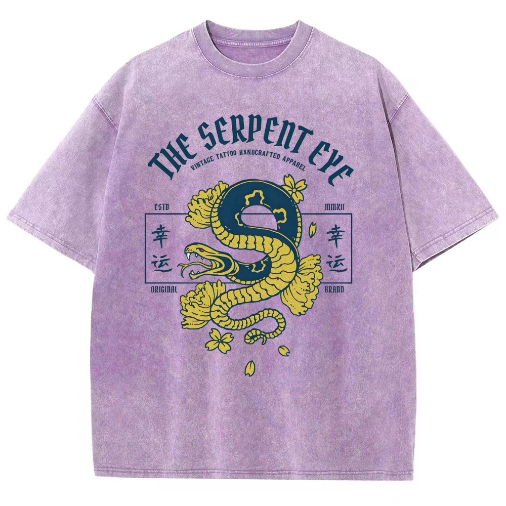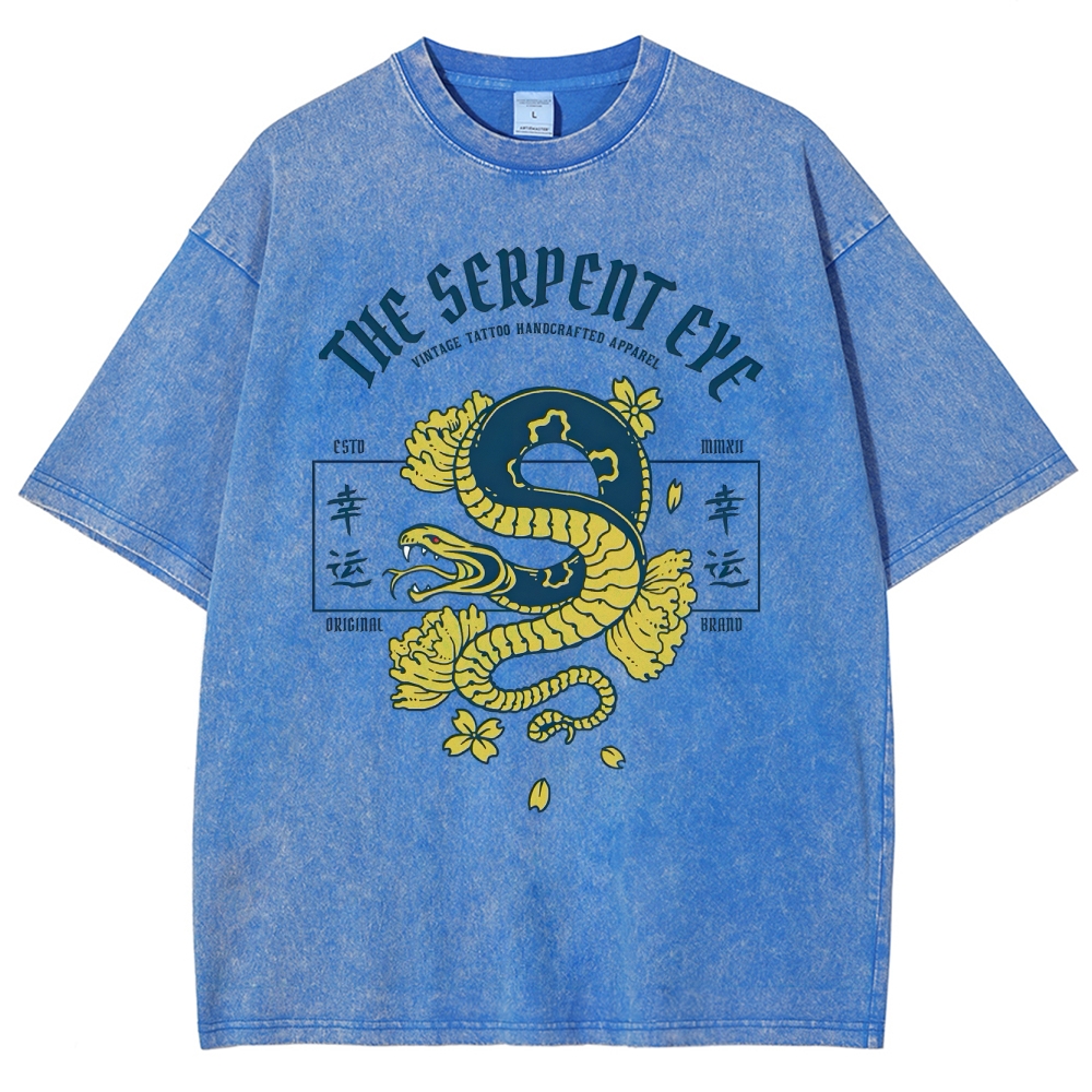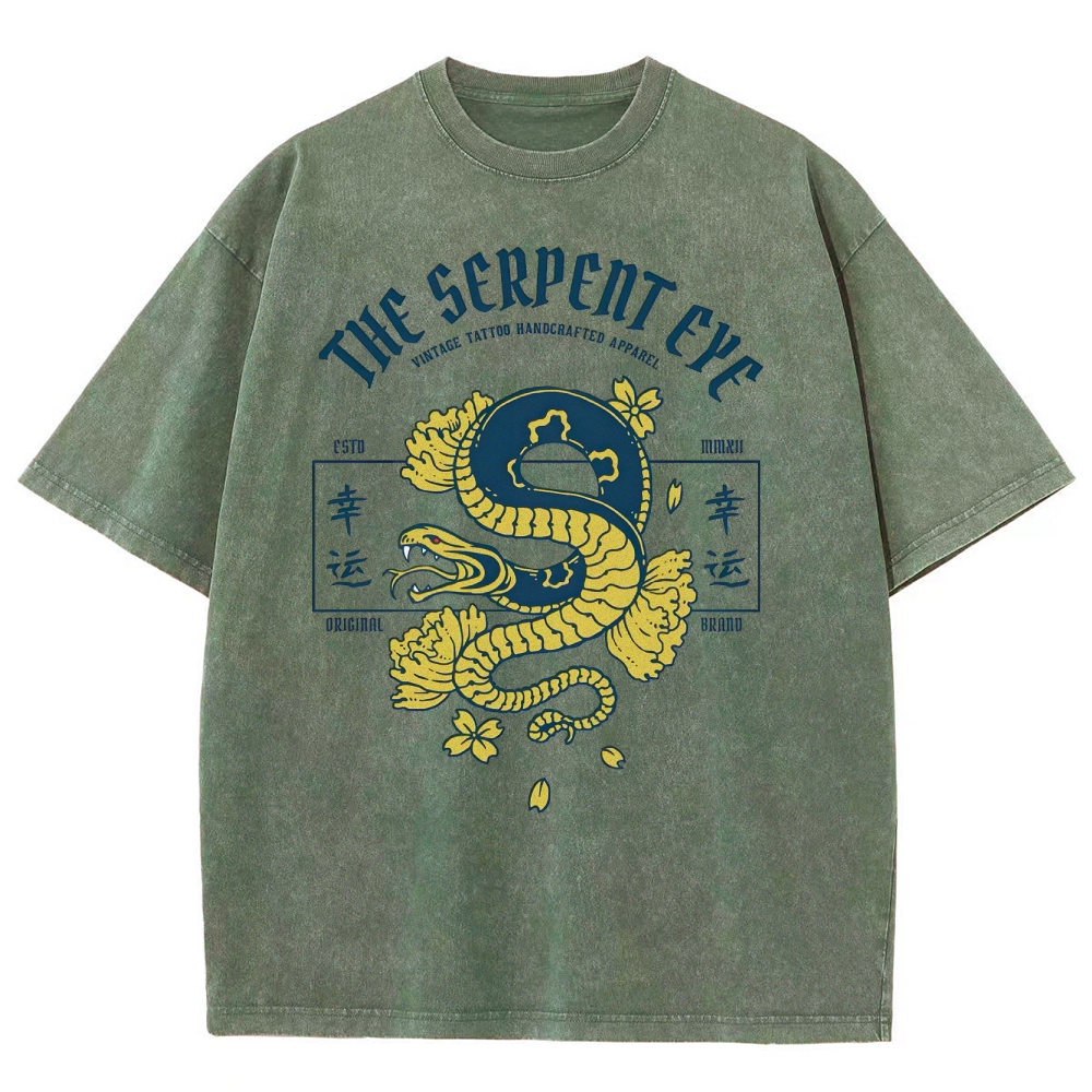 Japan Lucky Snake Sign Washed Vintage Short Sleeves T-Shirt