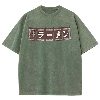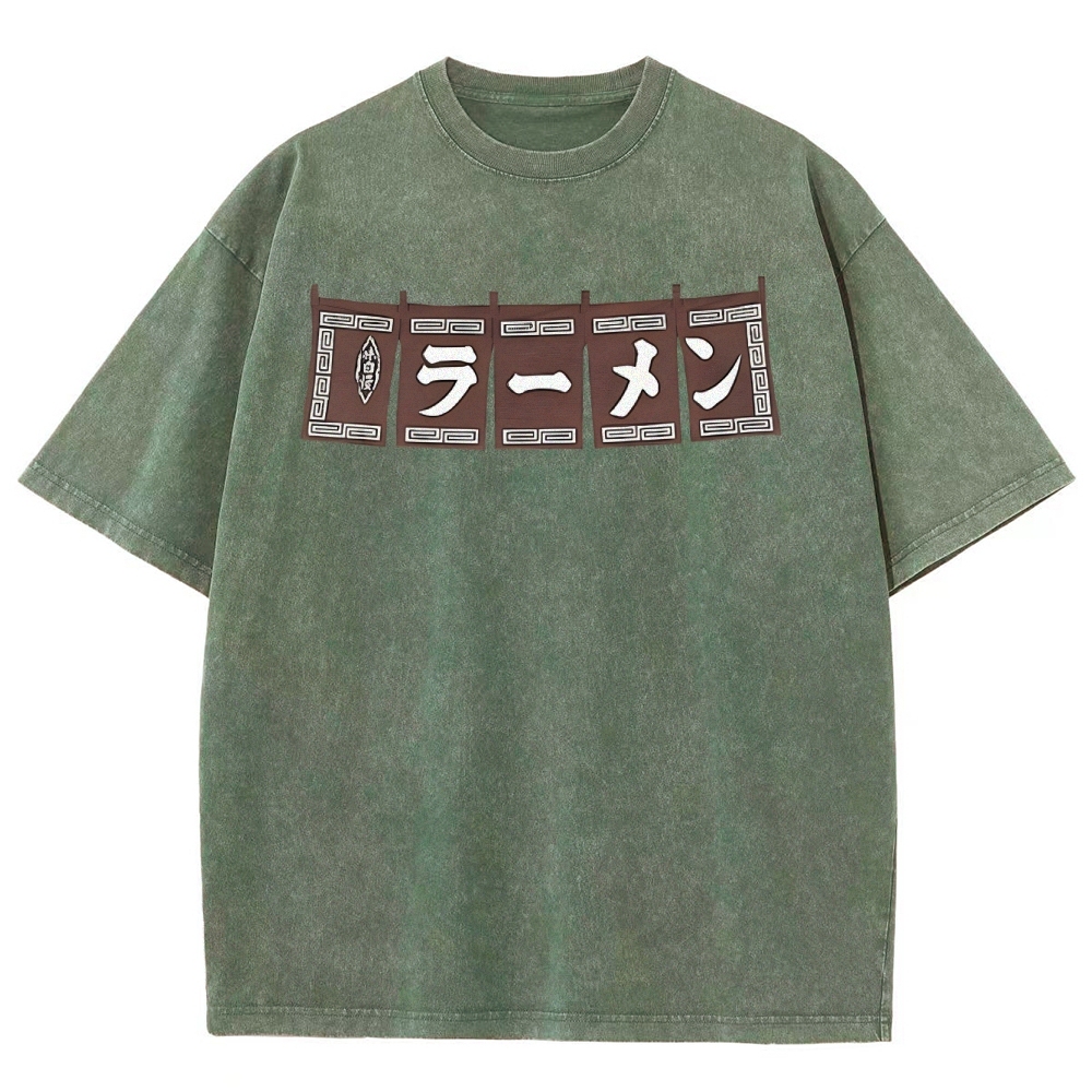 Japanese Door Curtain Washed Vintage Short Sleeves T-Shirt