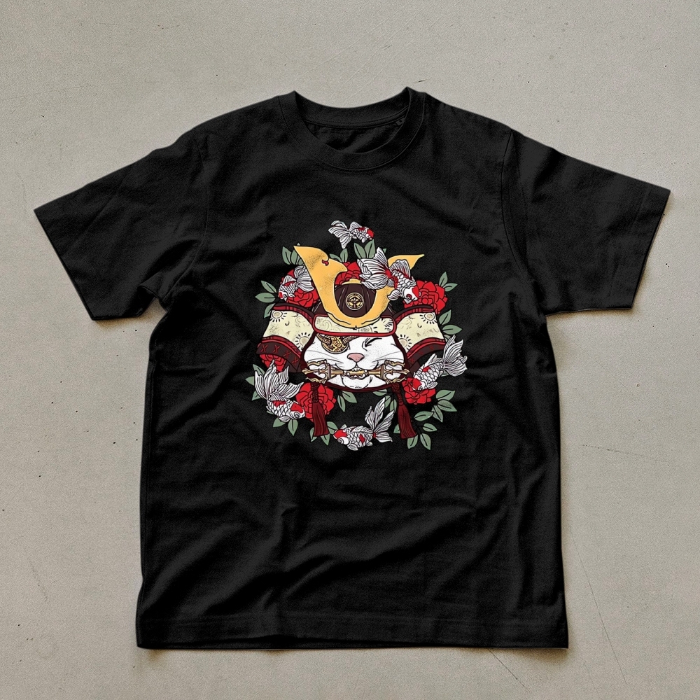 Japanese Goldfish Cat Casual Unisex Prints T-Shirt