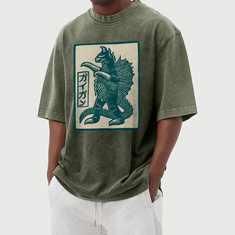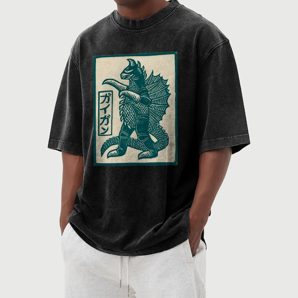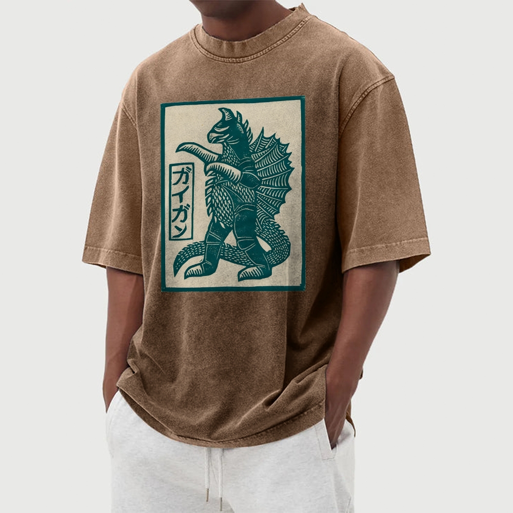 Japanese Monster Prints Washed Vintage Short Sleeves T-Shirt