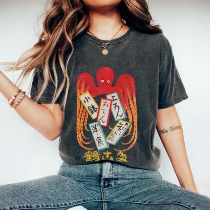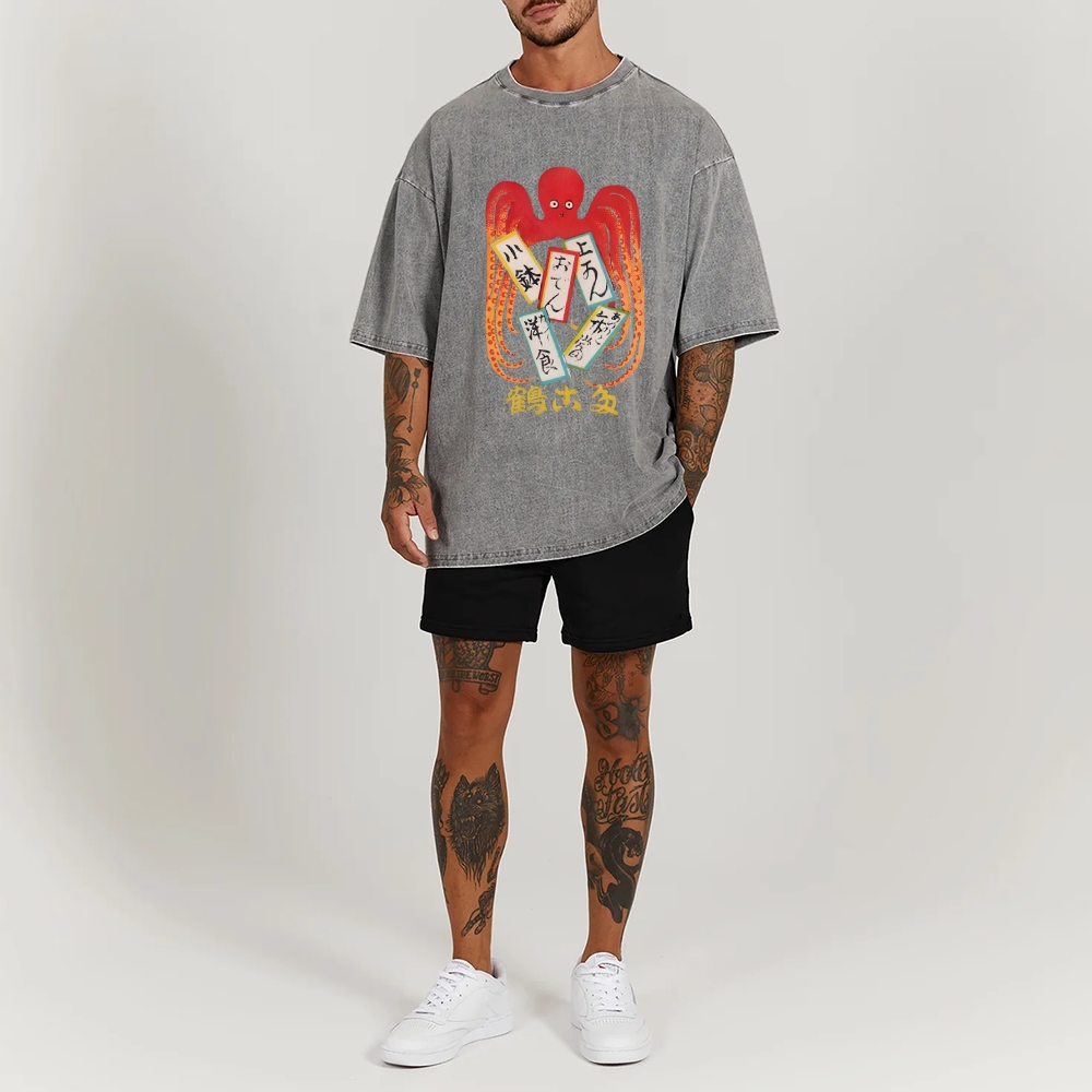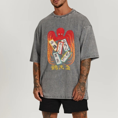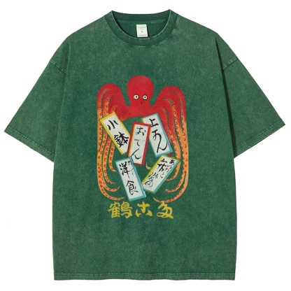 Japanese Octopus Washed Vintage Short Sleeves T-Shirt