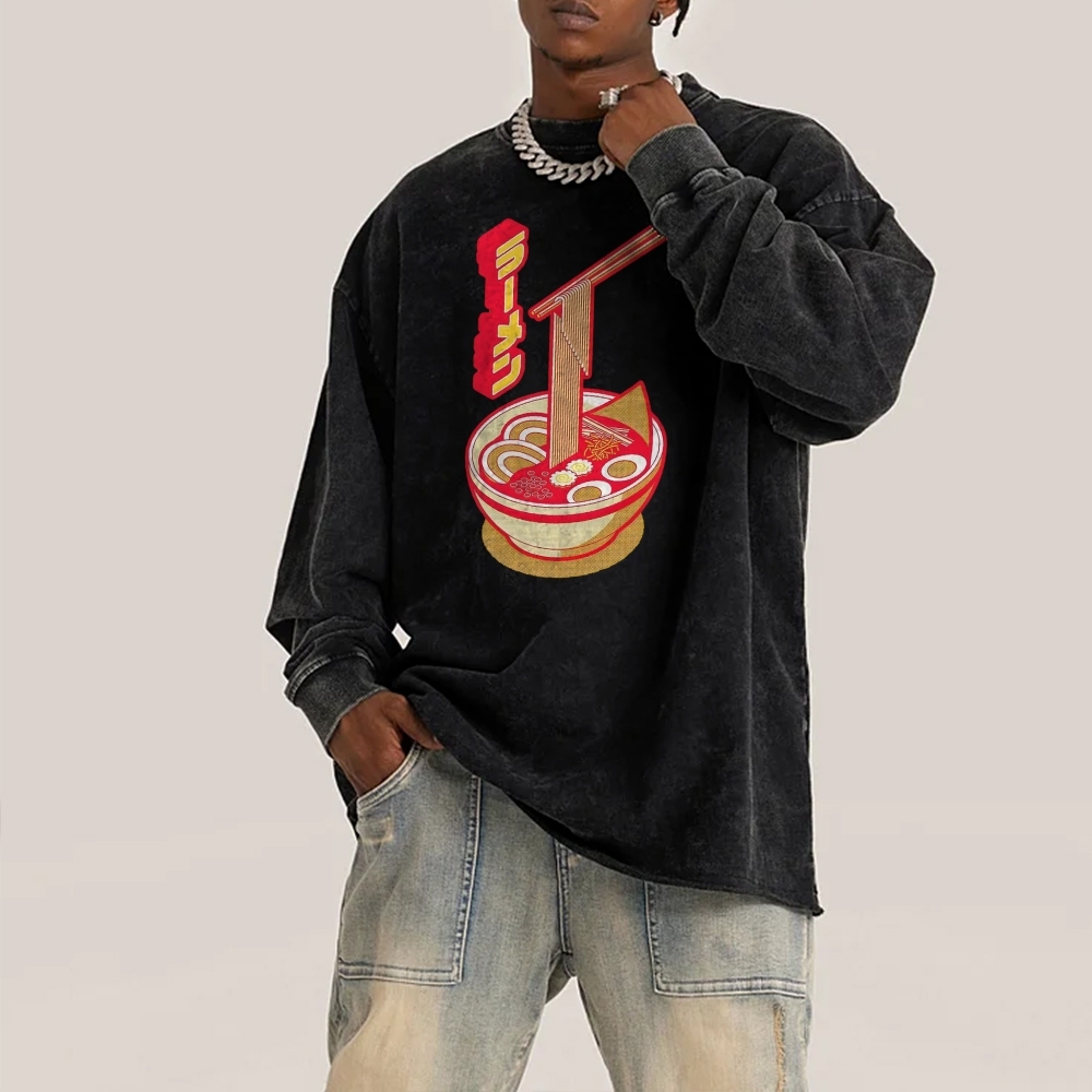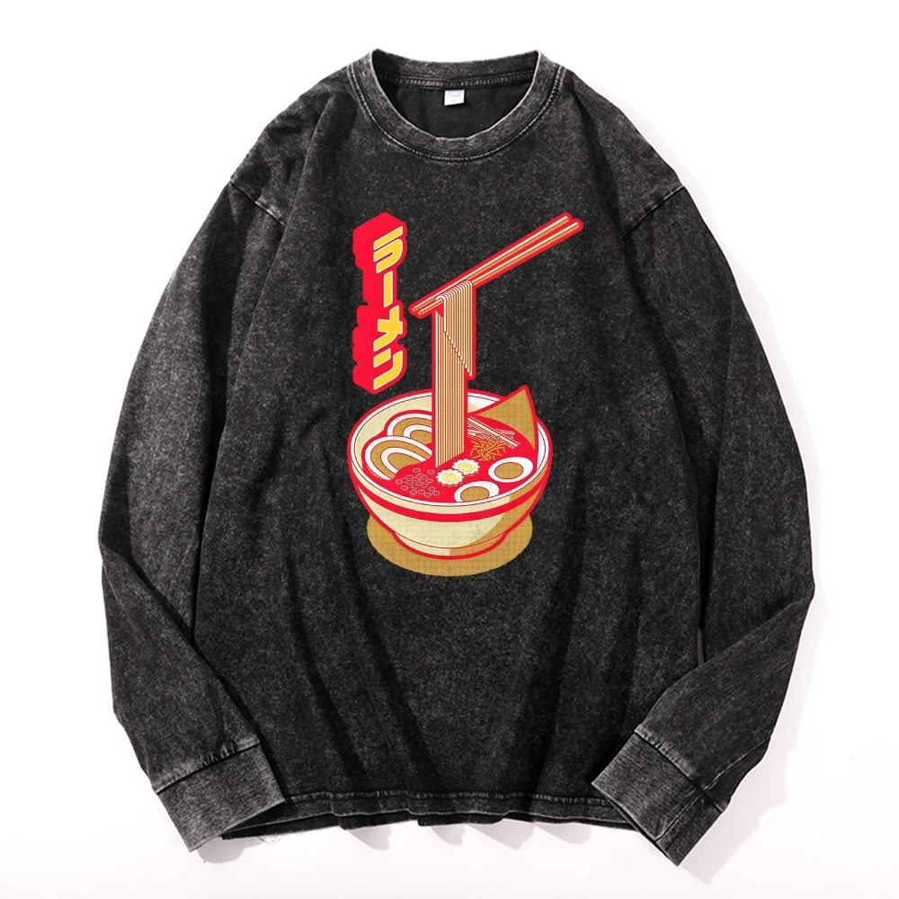 Japanese Ramen Deep Washed Vintage Long Sleeves T-Shirt