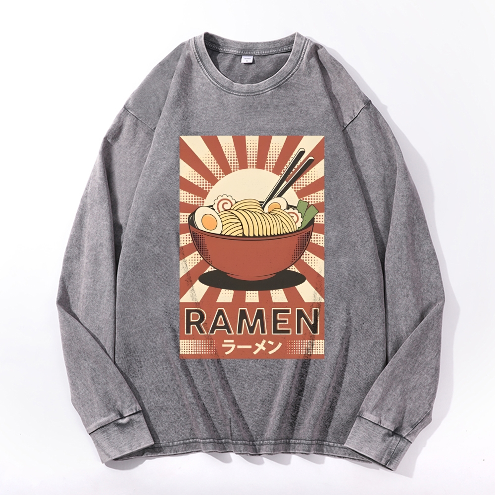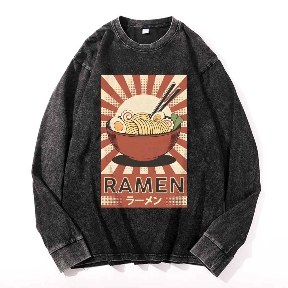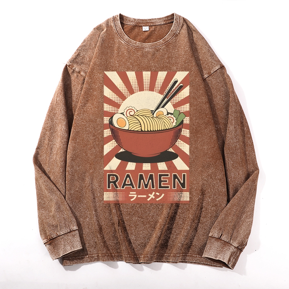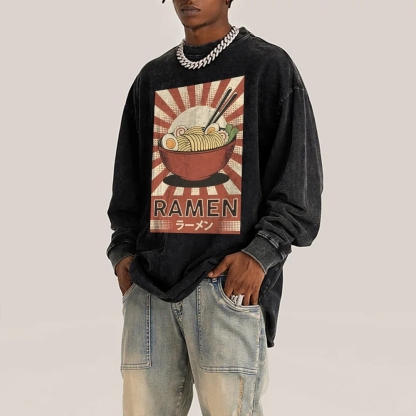Japanese Ramen Pattern Deep Washed Vintage Long Sleeves T-Shirt