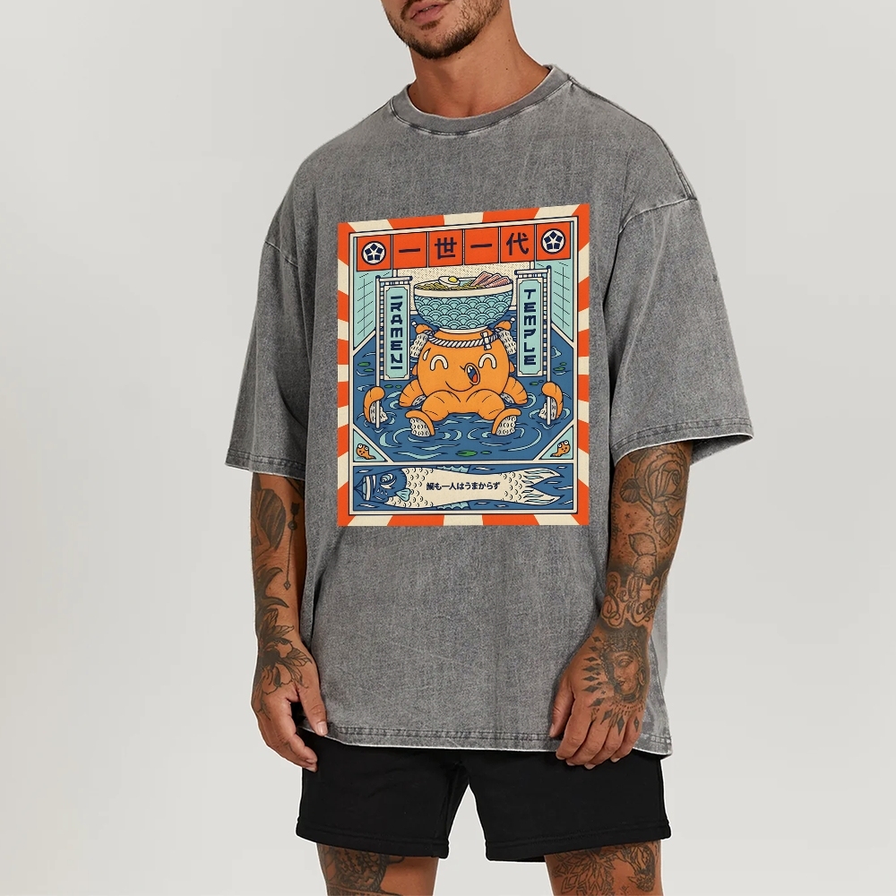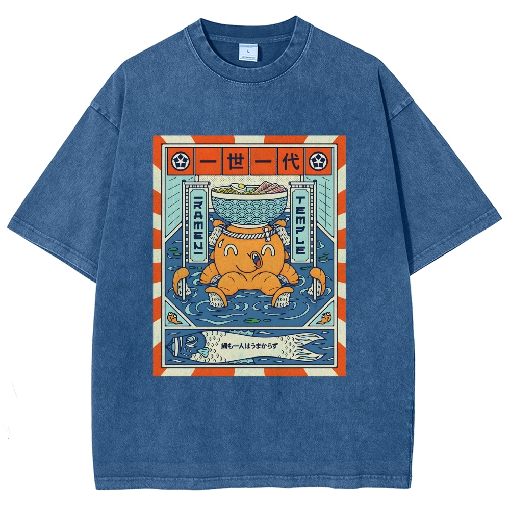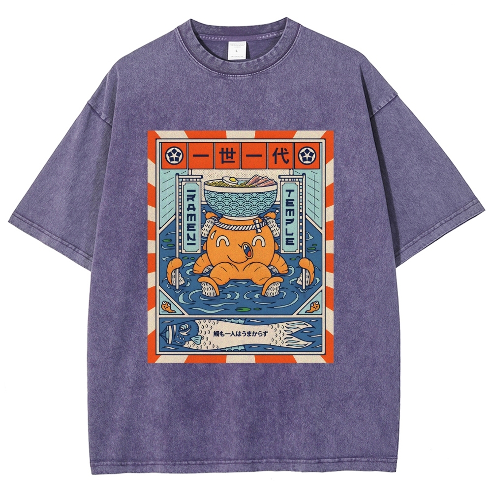 Japanese Ramen Pattern Washed Vintage Short Sleeves T-Shirt
