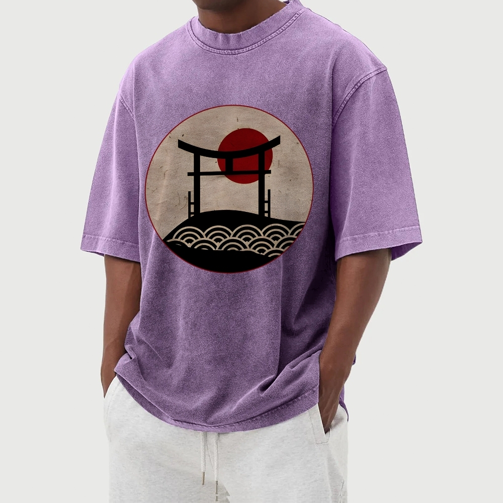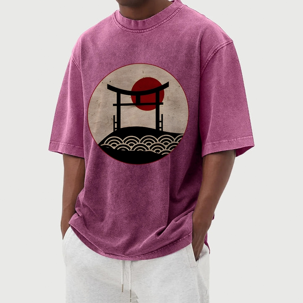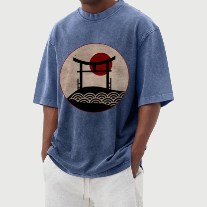 Japanese Shrine Washed Vintage Short Sleeves T-Shirt
