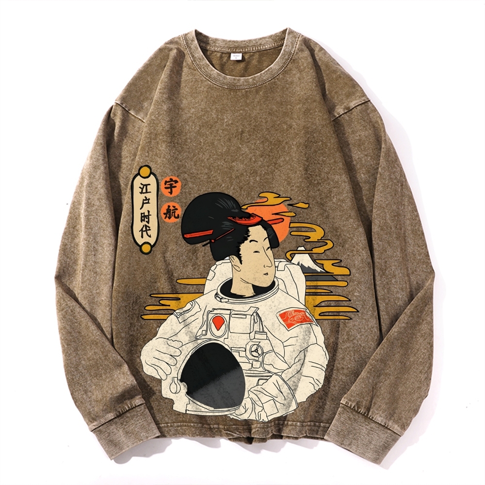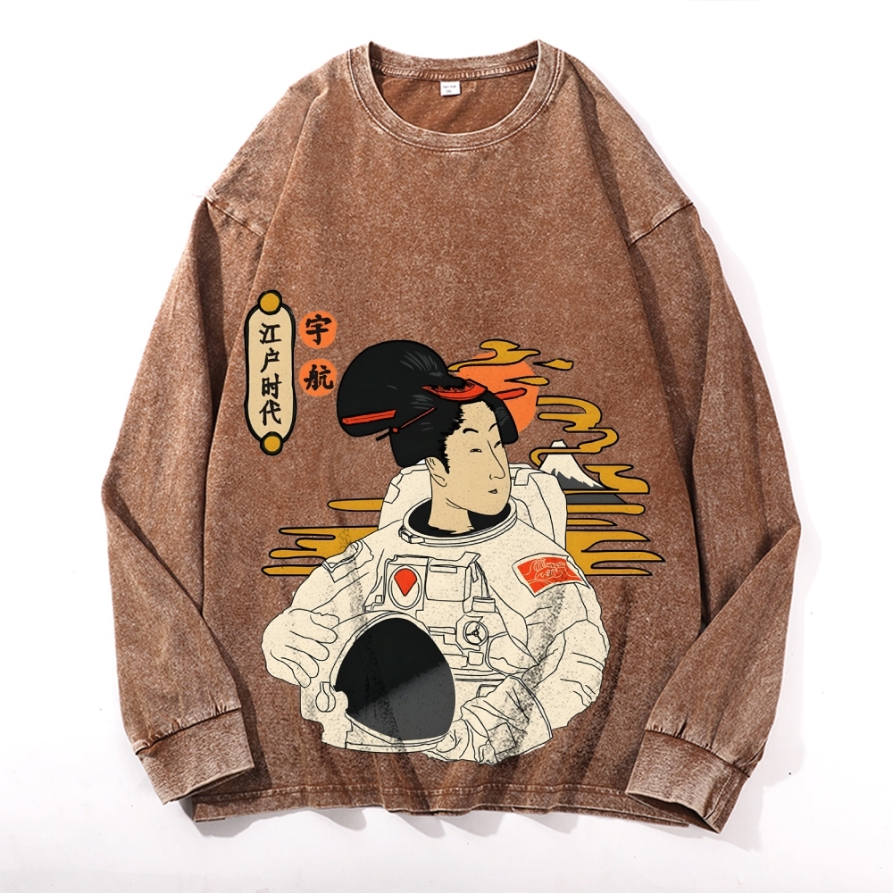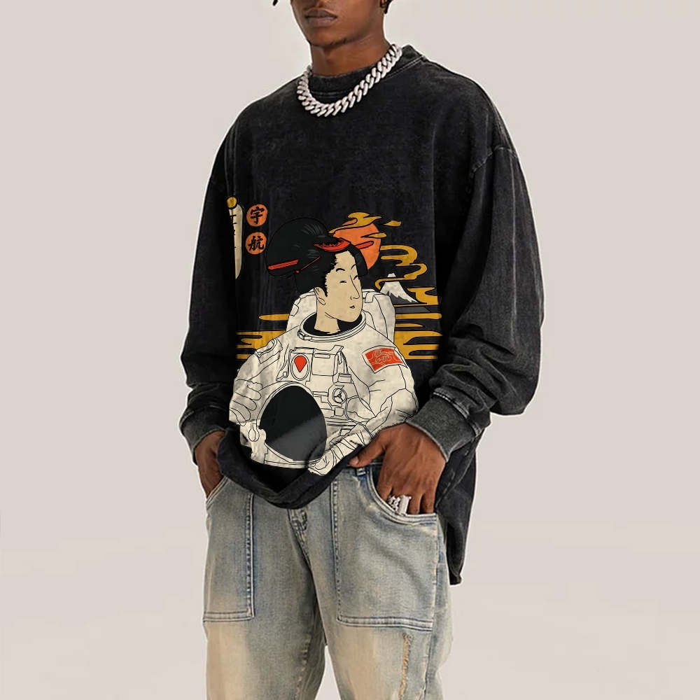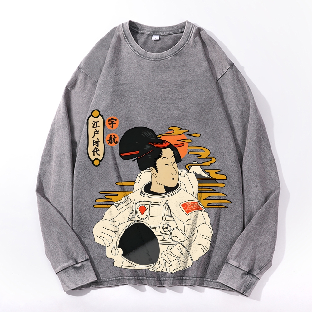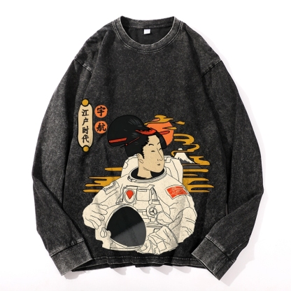 Japanese Spaceman Ukiyoe Deep Washed Vintage Long Sleeves T-Shirt