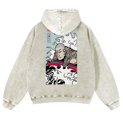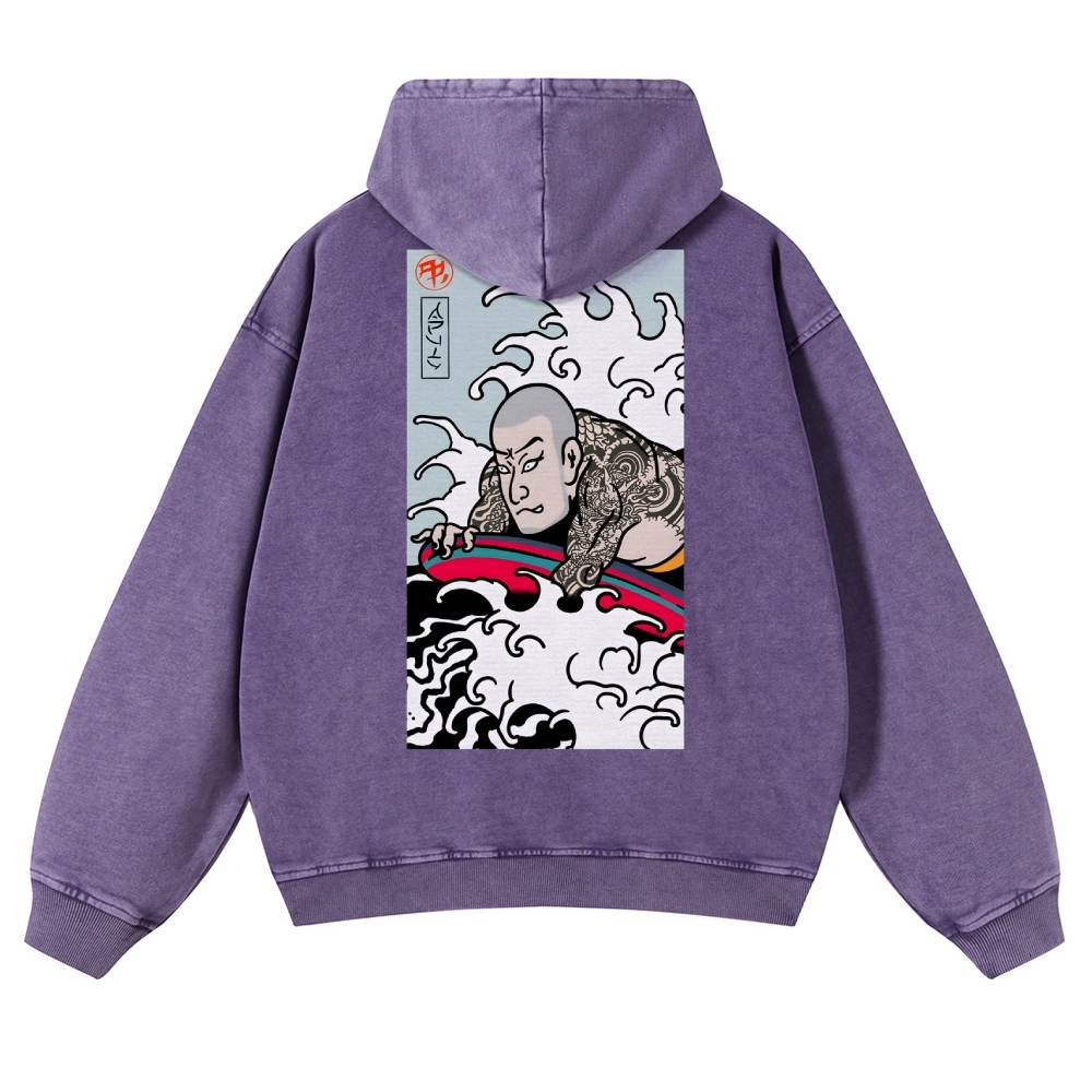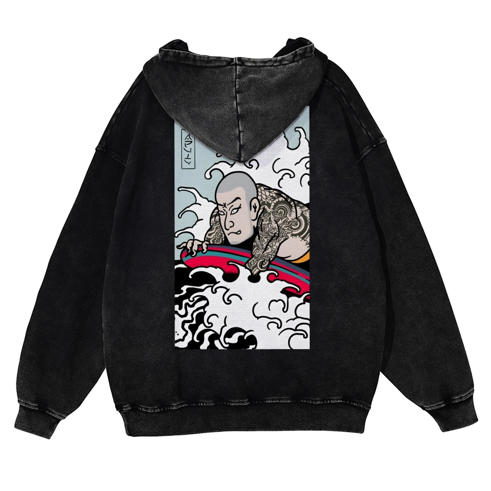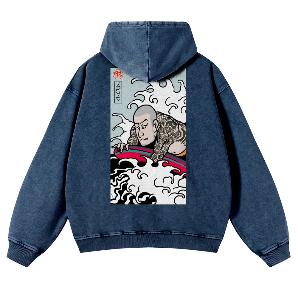 Japanese Surfing Ukiyoe Vintage Washed Hoodie