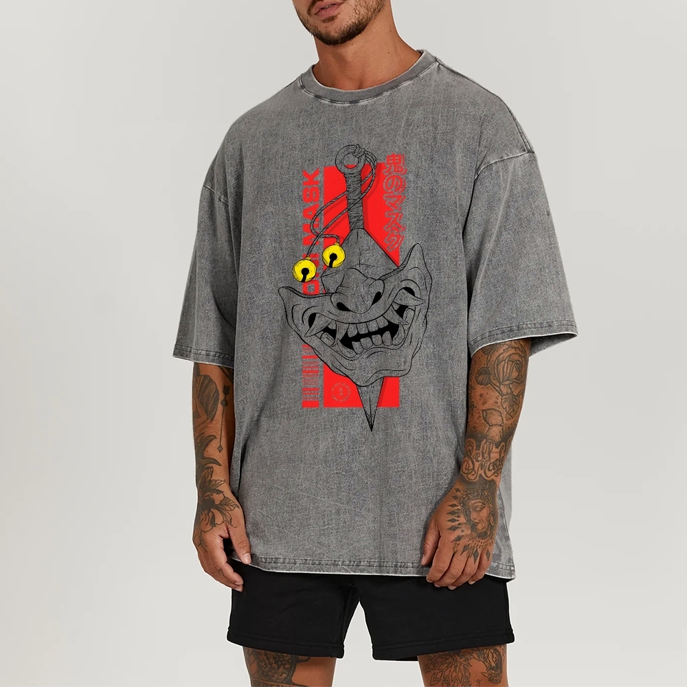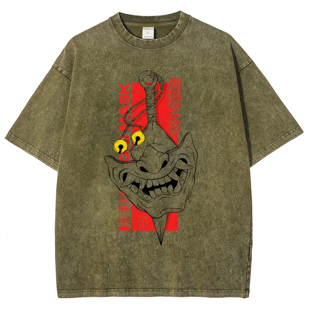 Japanese Traditional Mask Washed Vintage Short Sleeves T-Shirt