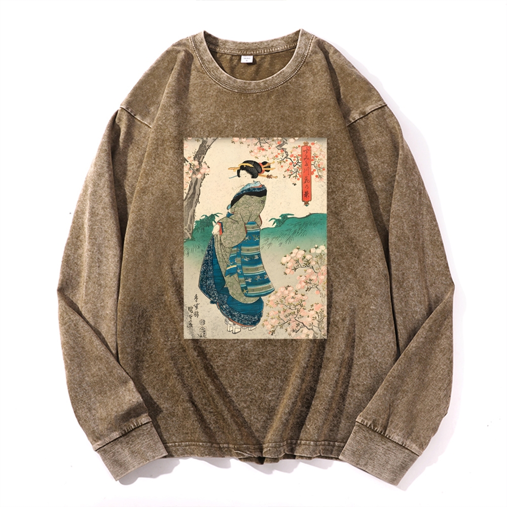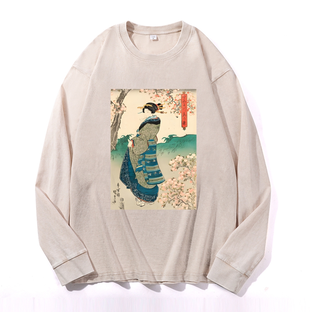 Japanese Ukiyoe Prints Deep Washed Vintage Long Sleeves T-Shirt