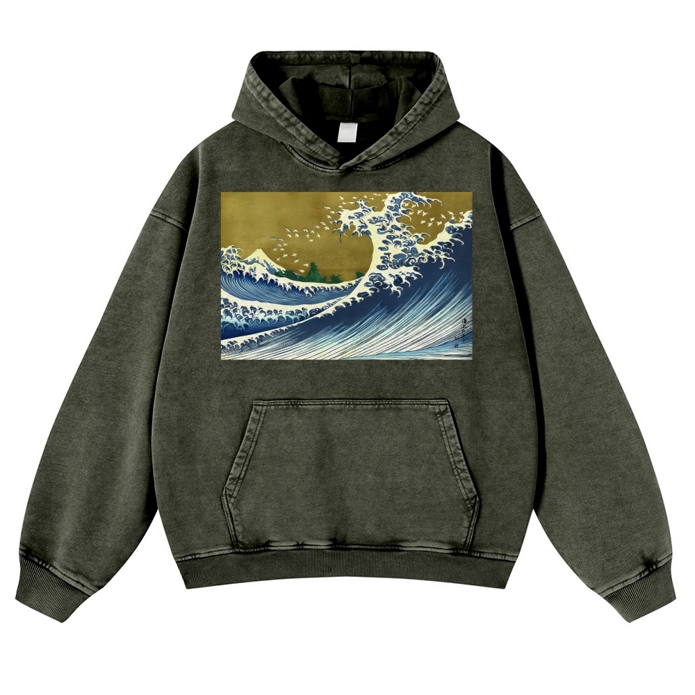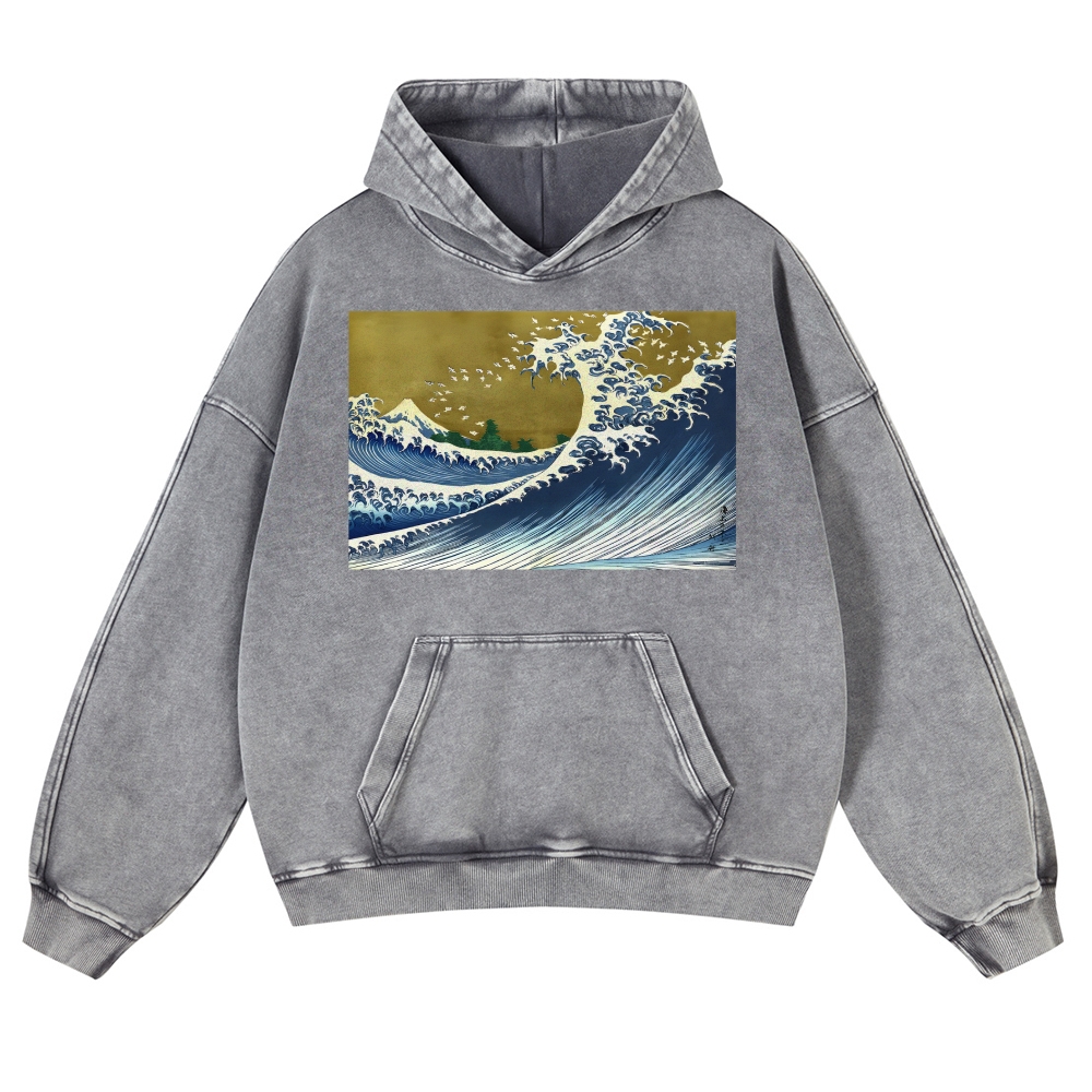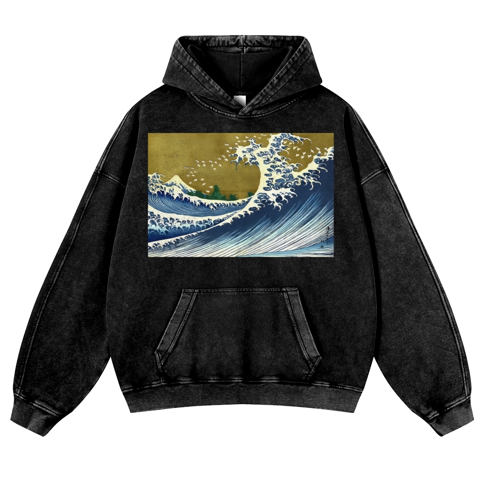 Japanese Wave Ukiyoe Casual Vintage Washed Hoodie