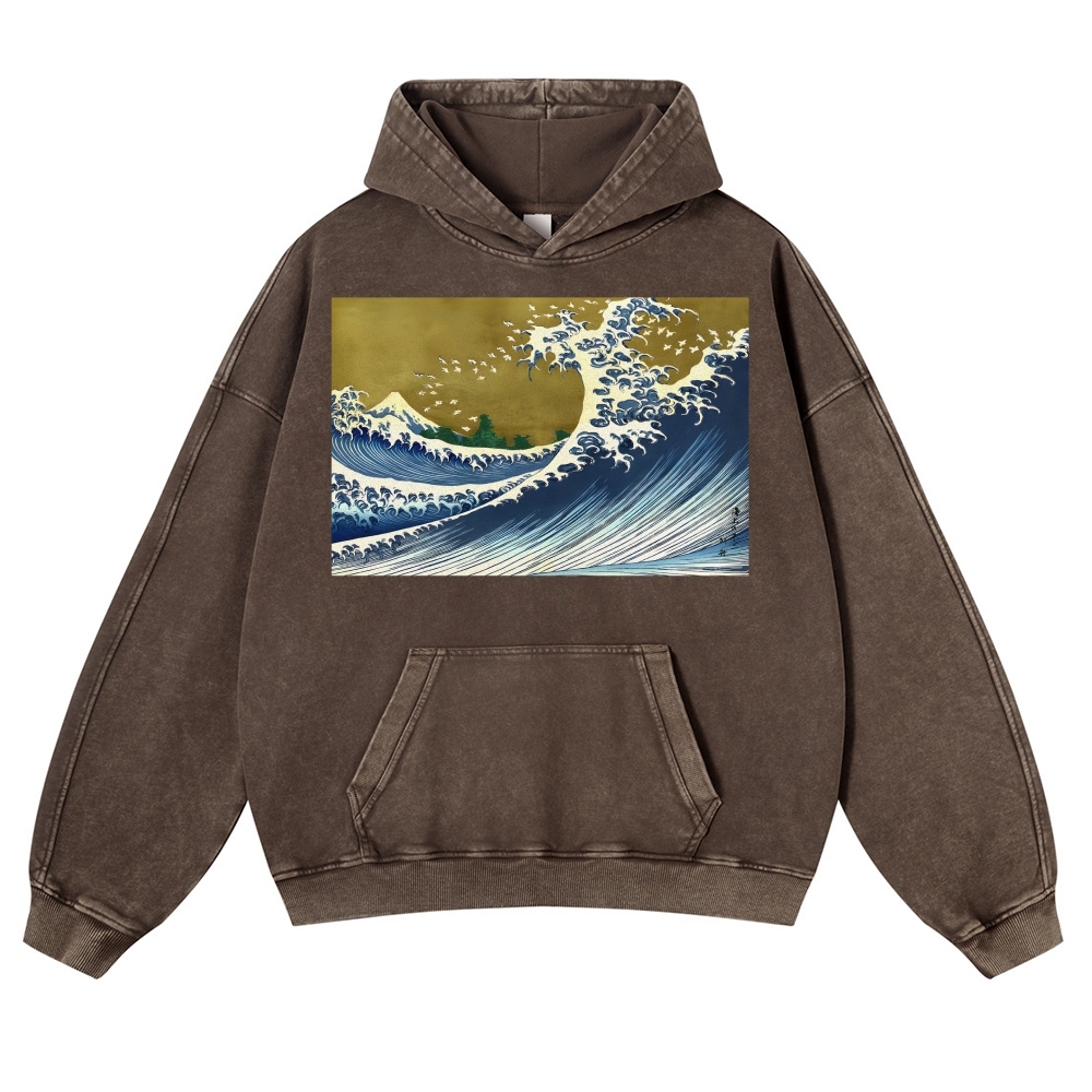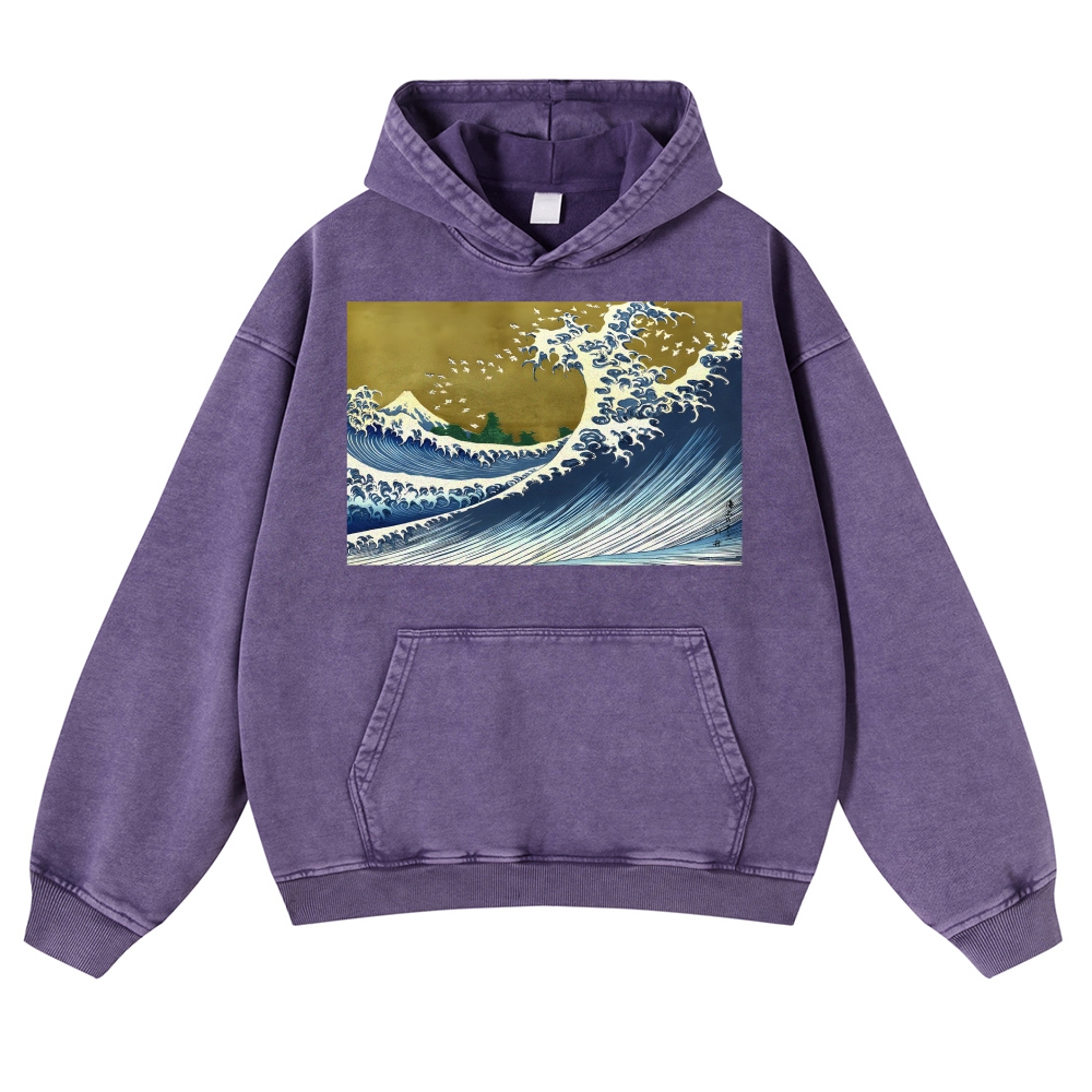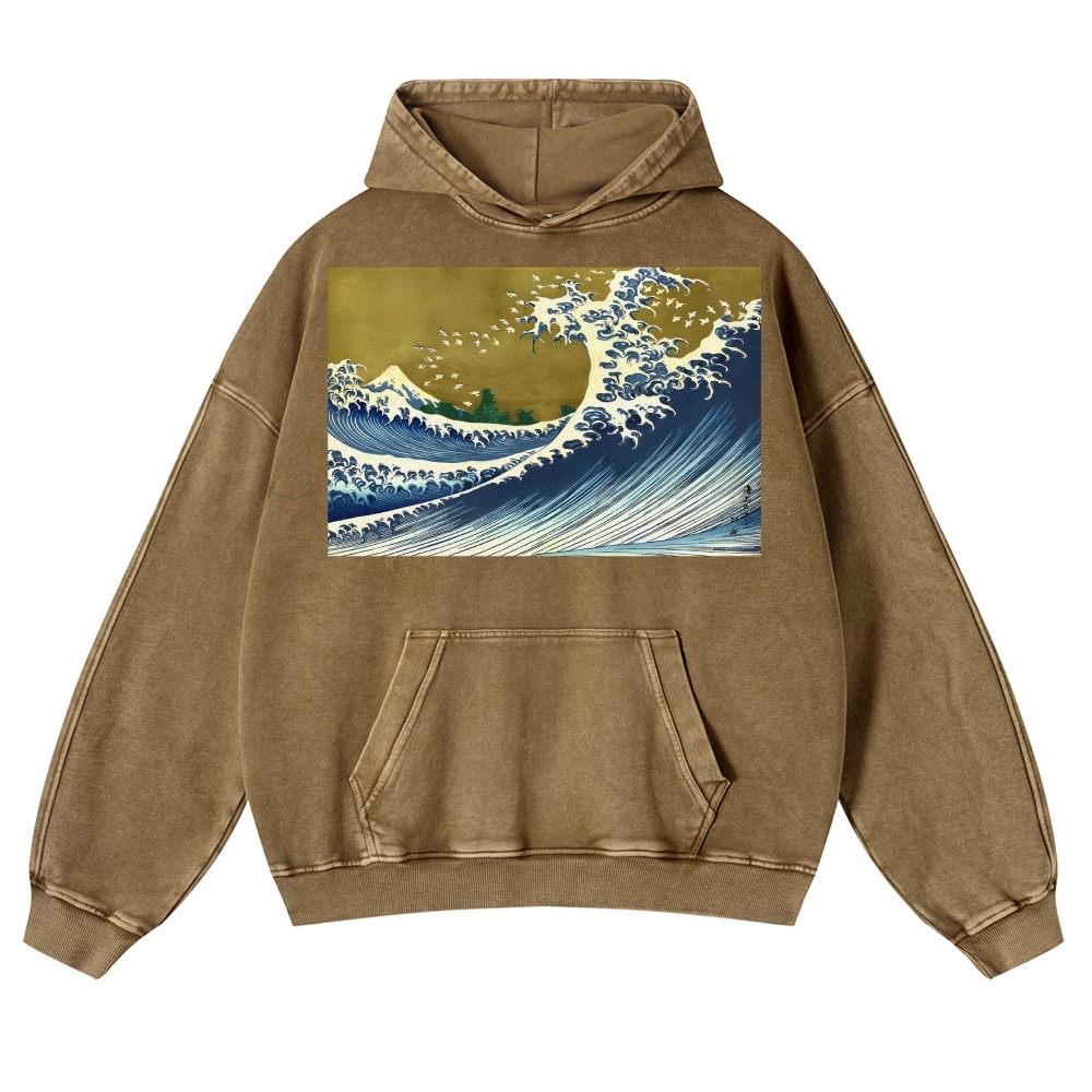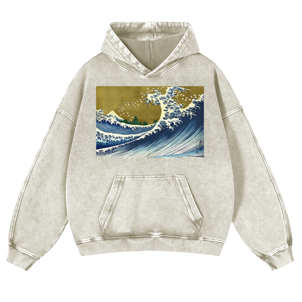 Japanese Wave Ukiyoe Casual Vintage Washed Hoodie