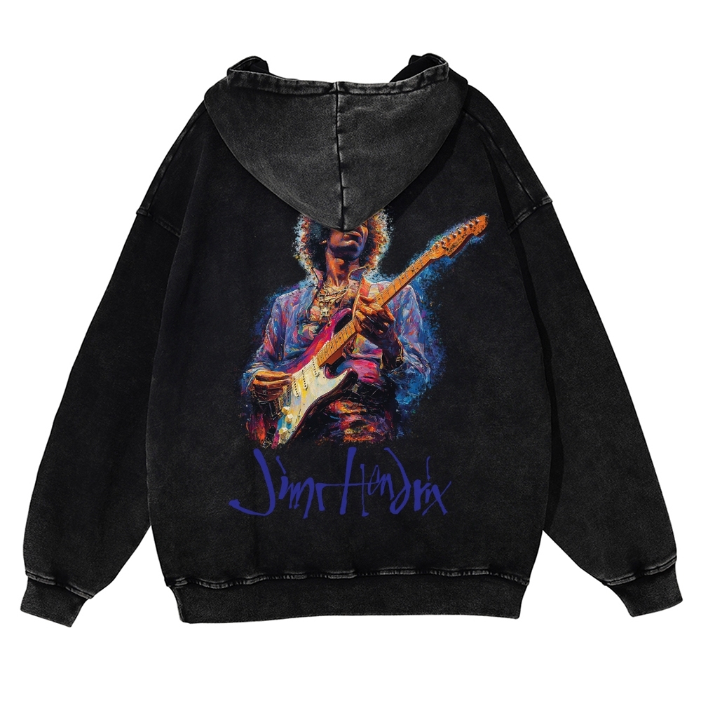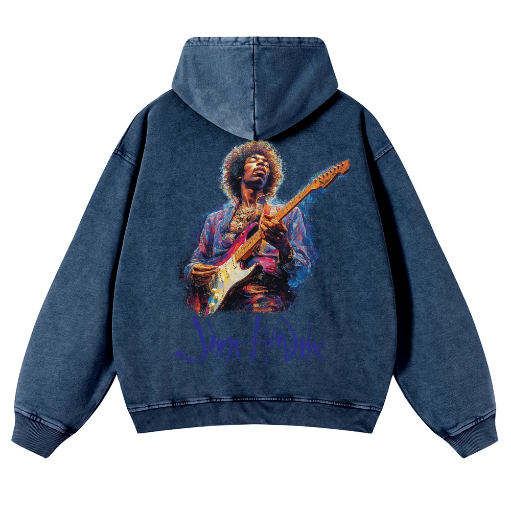Jimi Oil Painting Unisex Fit Vintage Washed Hoodie