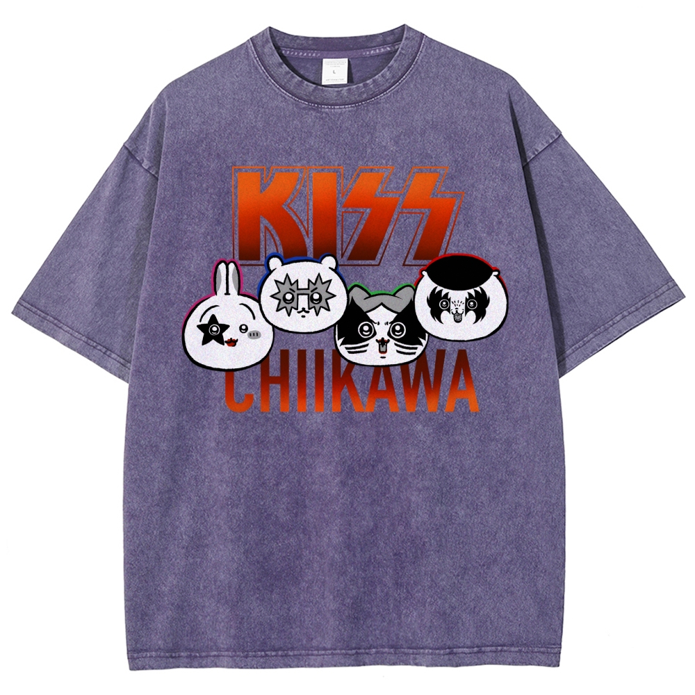 Kiss Chiikawa Rock Band Unisex Fit Washed T-Shirt
