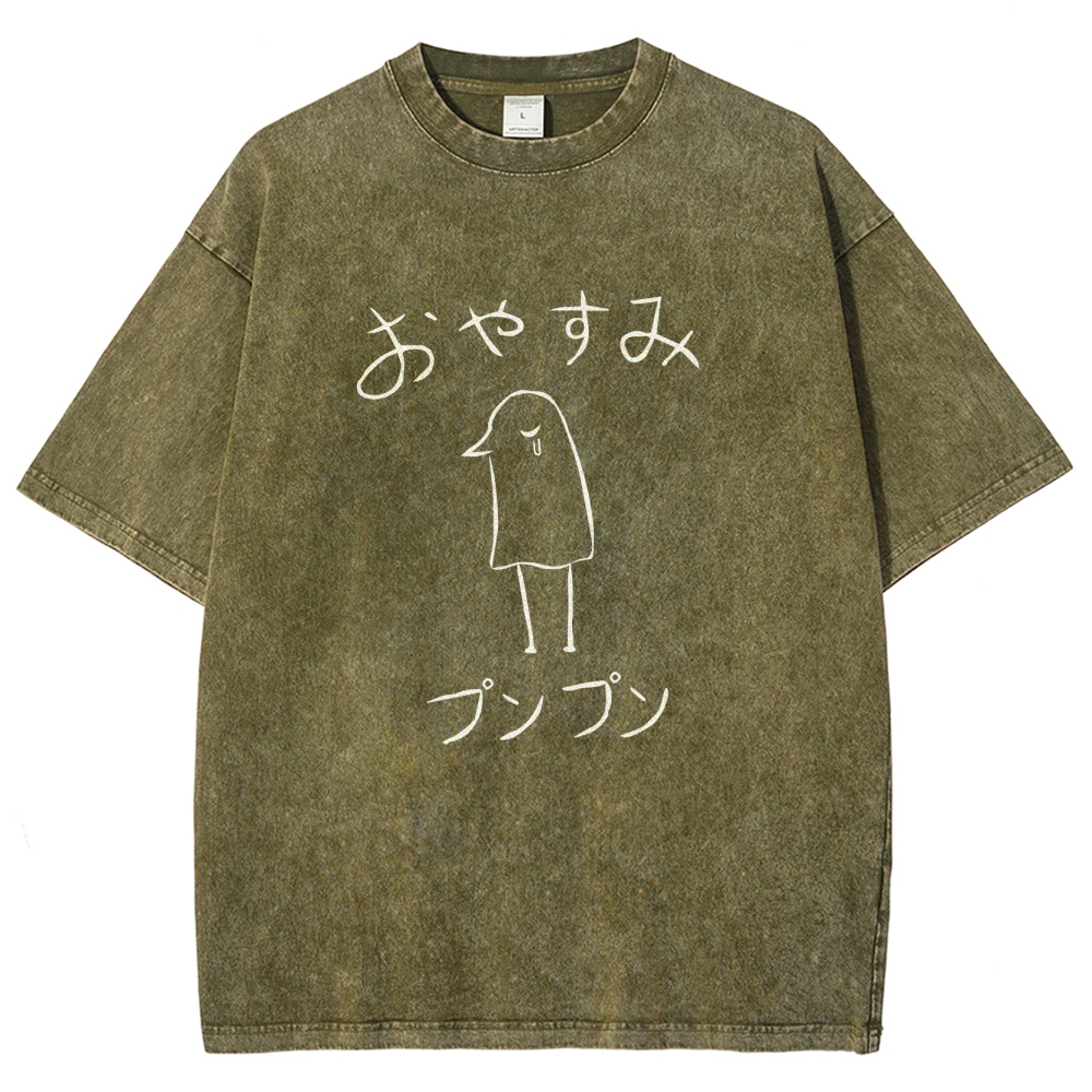 Kiwi Pattern Washed Vintage Short Sleeves T-Shirt