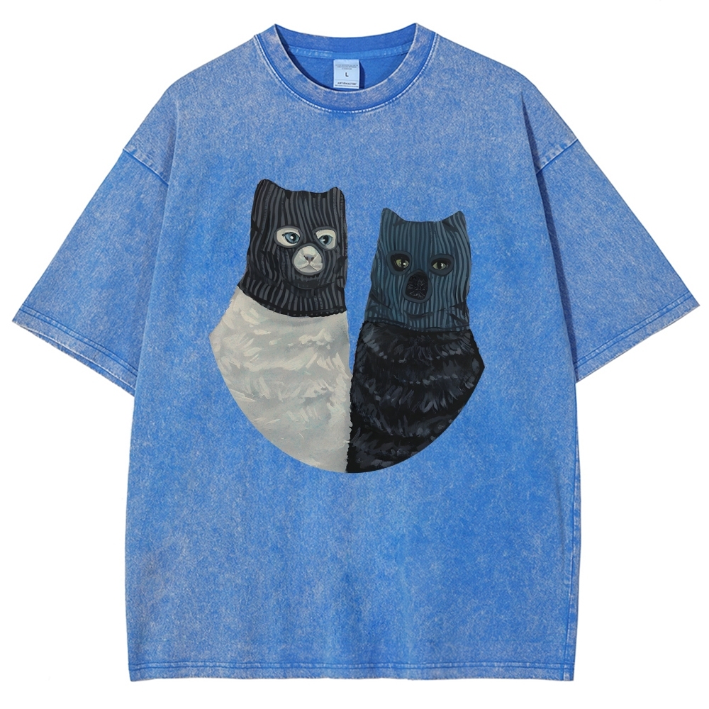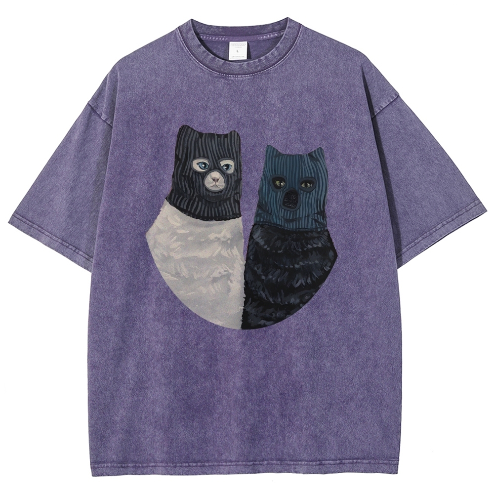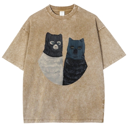 Masked Cat Washed Vintage Short Sleeves T-Shirt