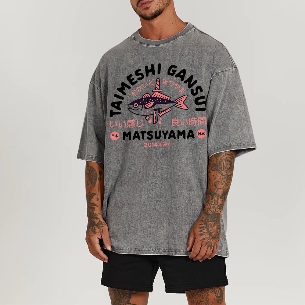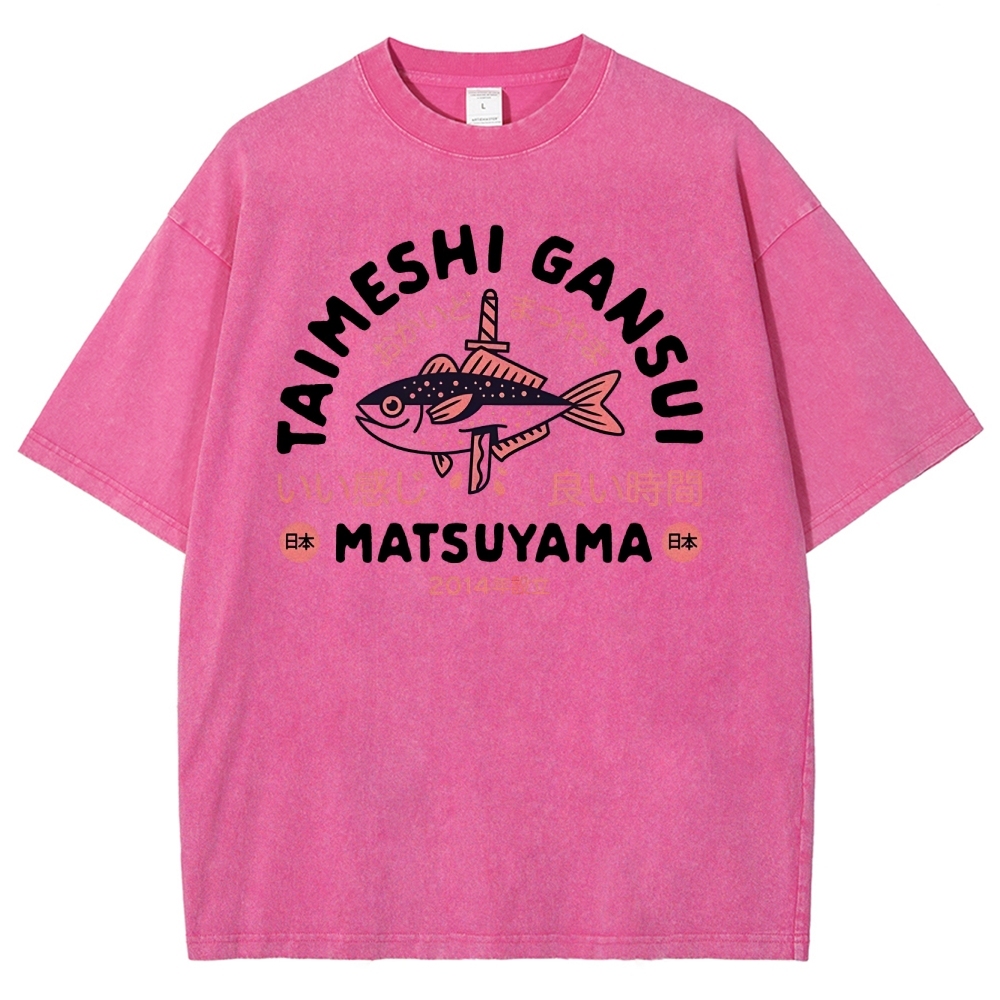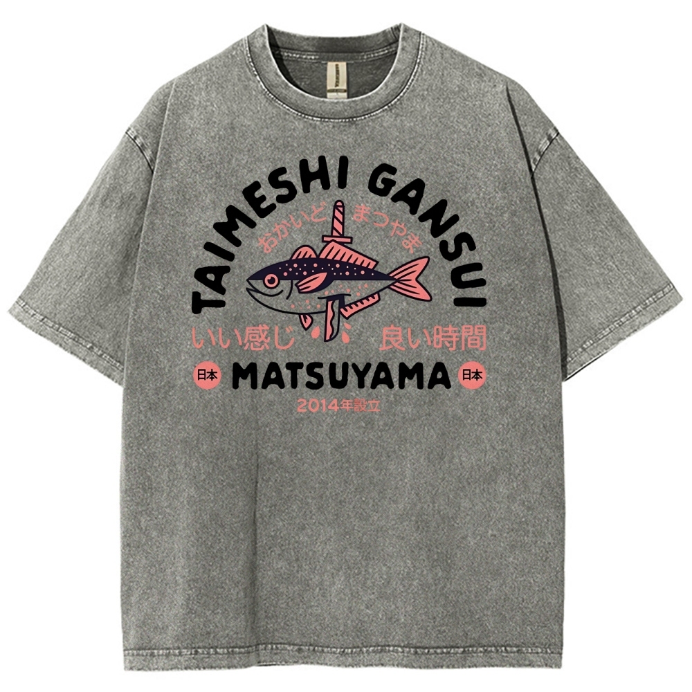 MATSUYAMA Fish Pattern Washed Vintage Short Sleeves T-Shirt