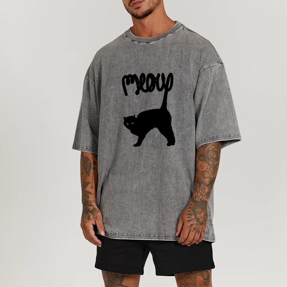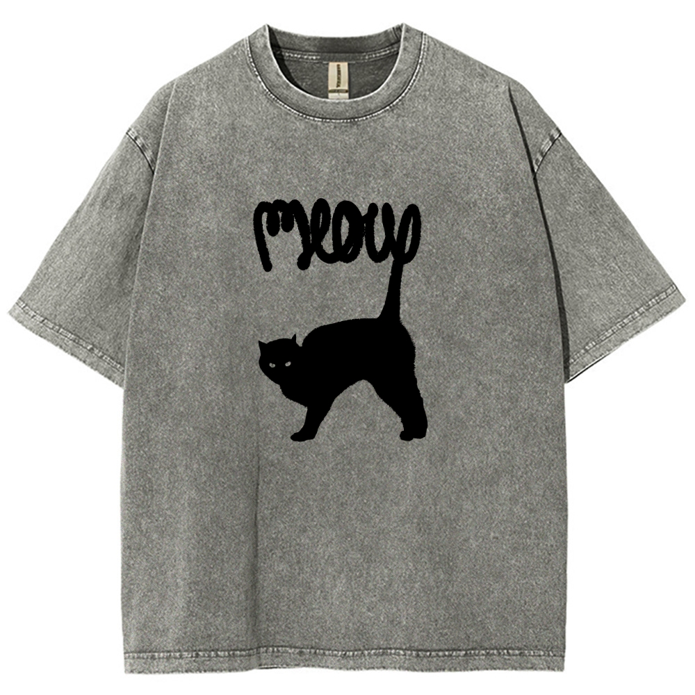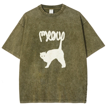 Meow Washed Vintage Short Sleeves T-Shirt