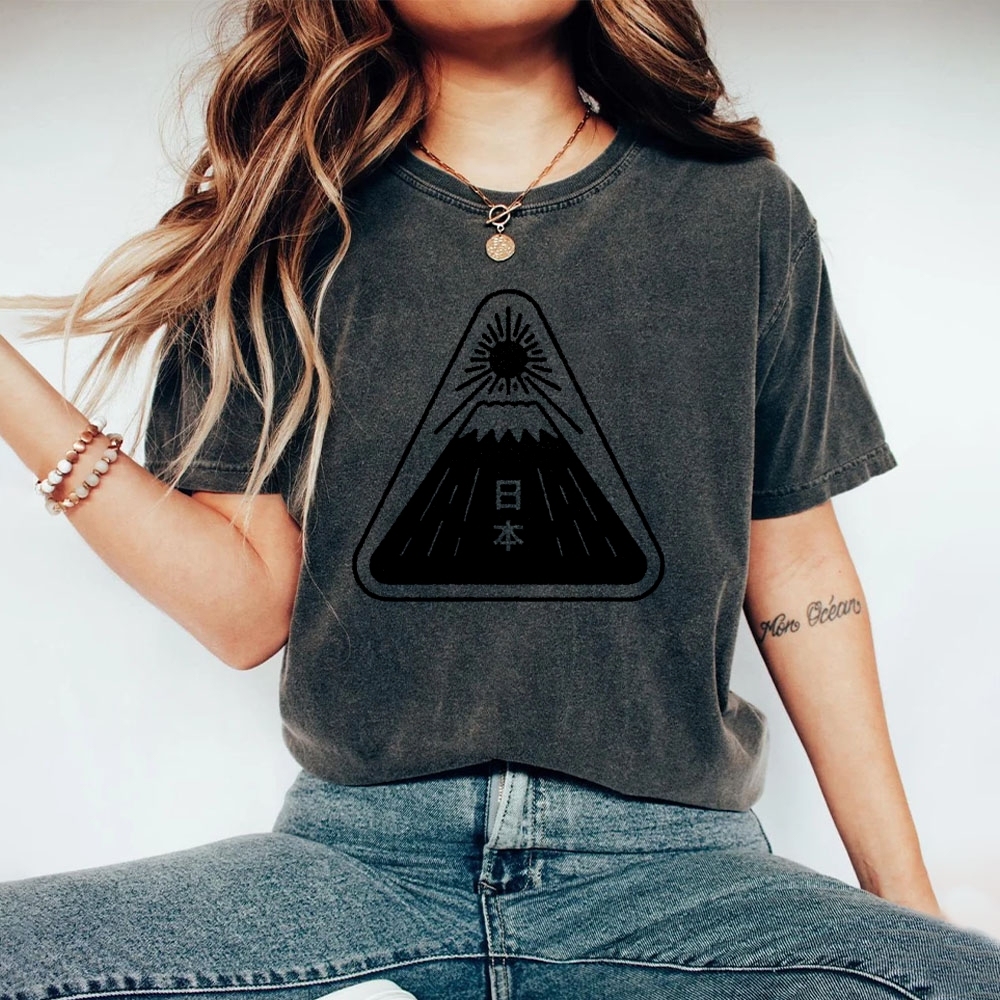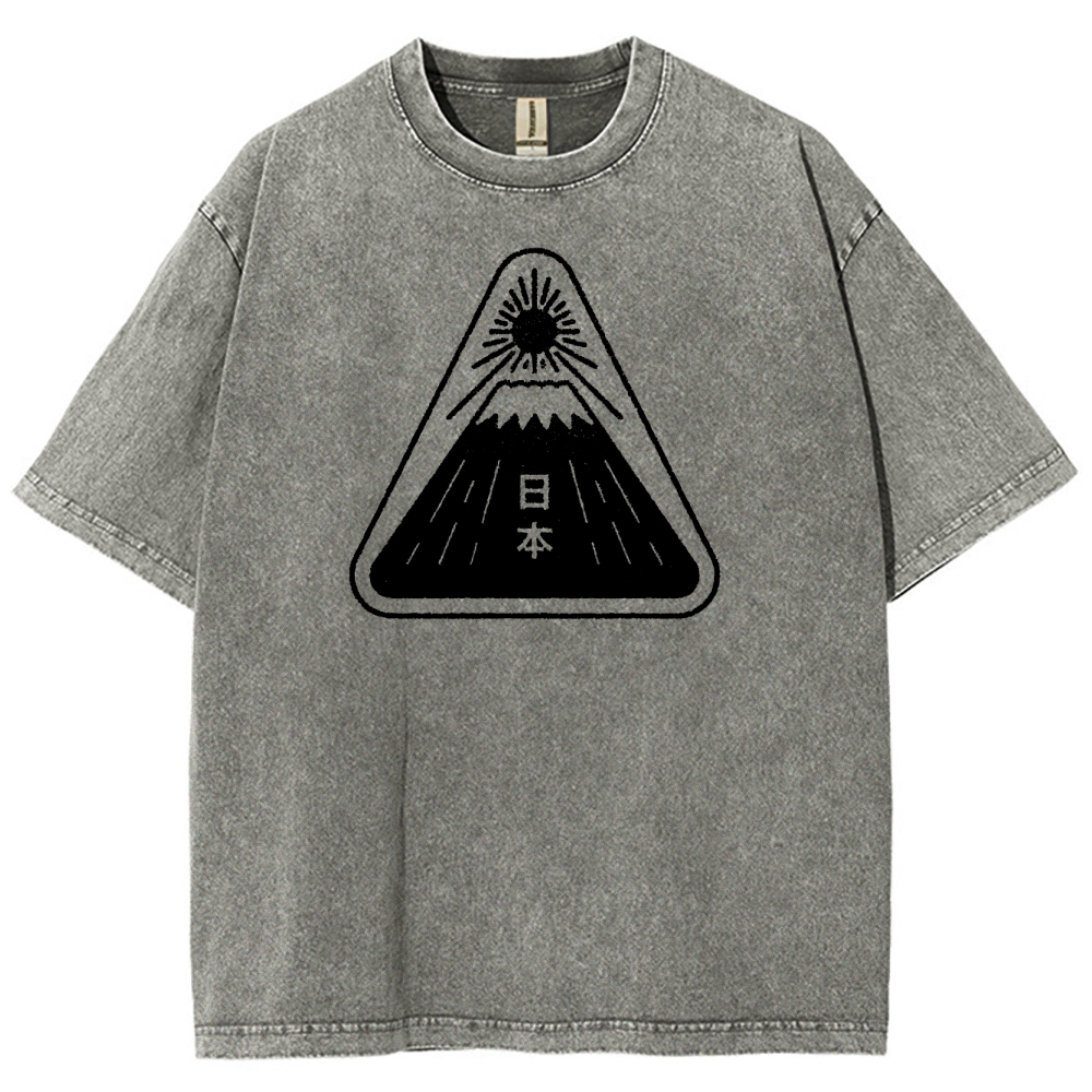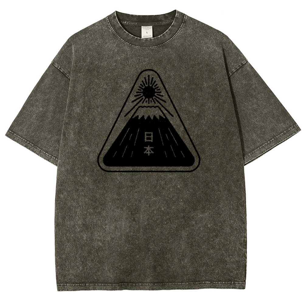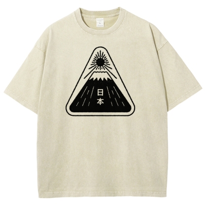 Mount Fuji Pattern Washed Vintage Short Sleeves T-Shirt