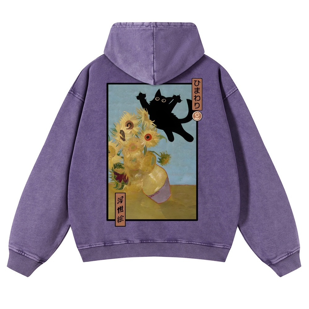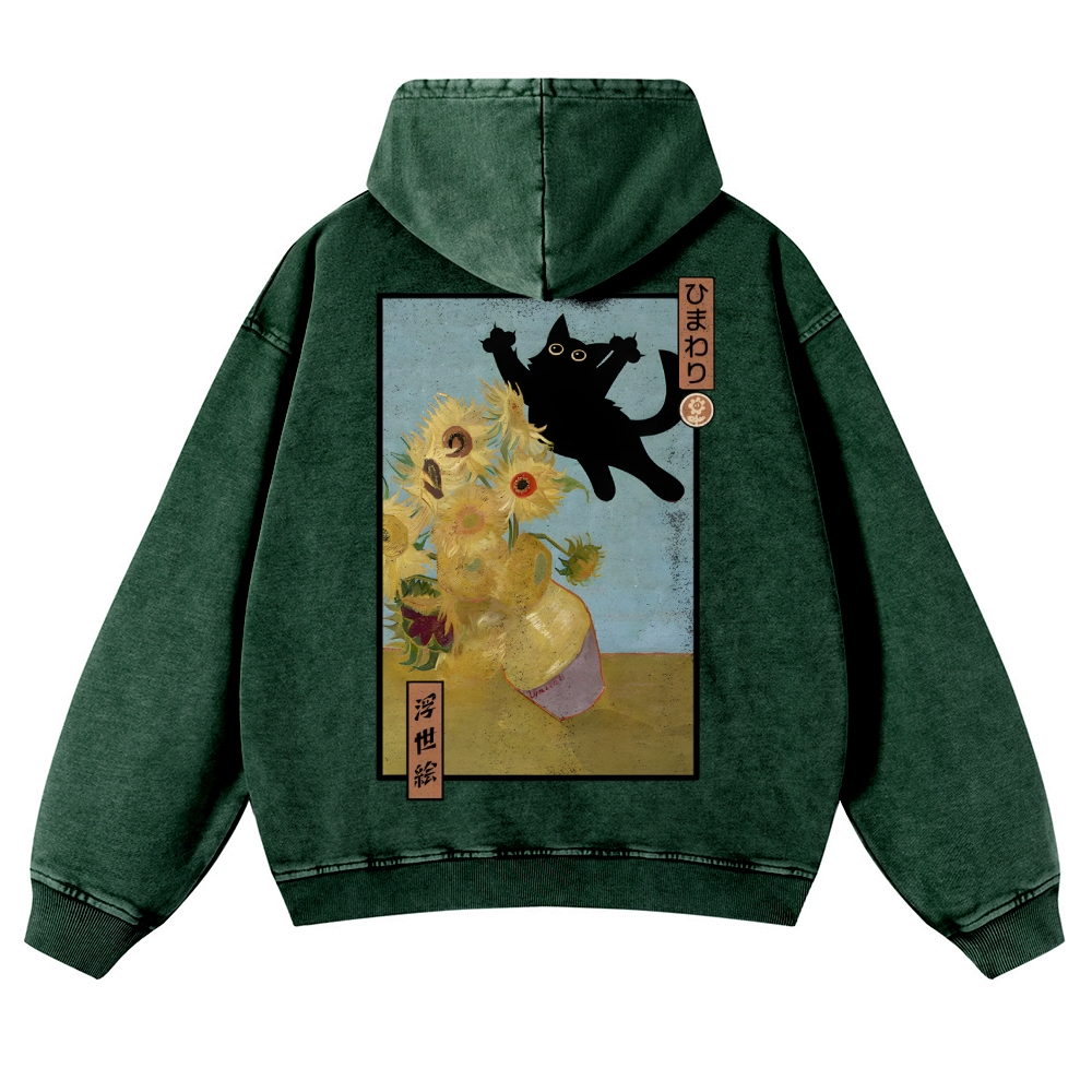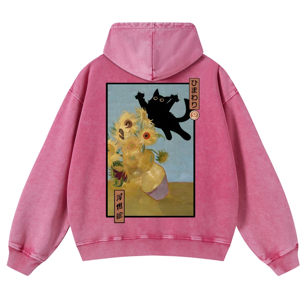Naughty Black Cat Unisex Fit Vintage Washed Hoodie